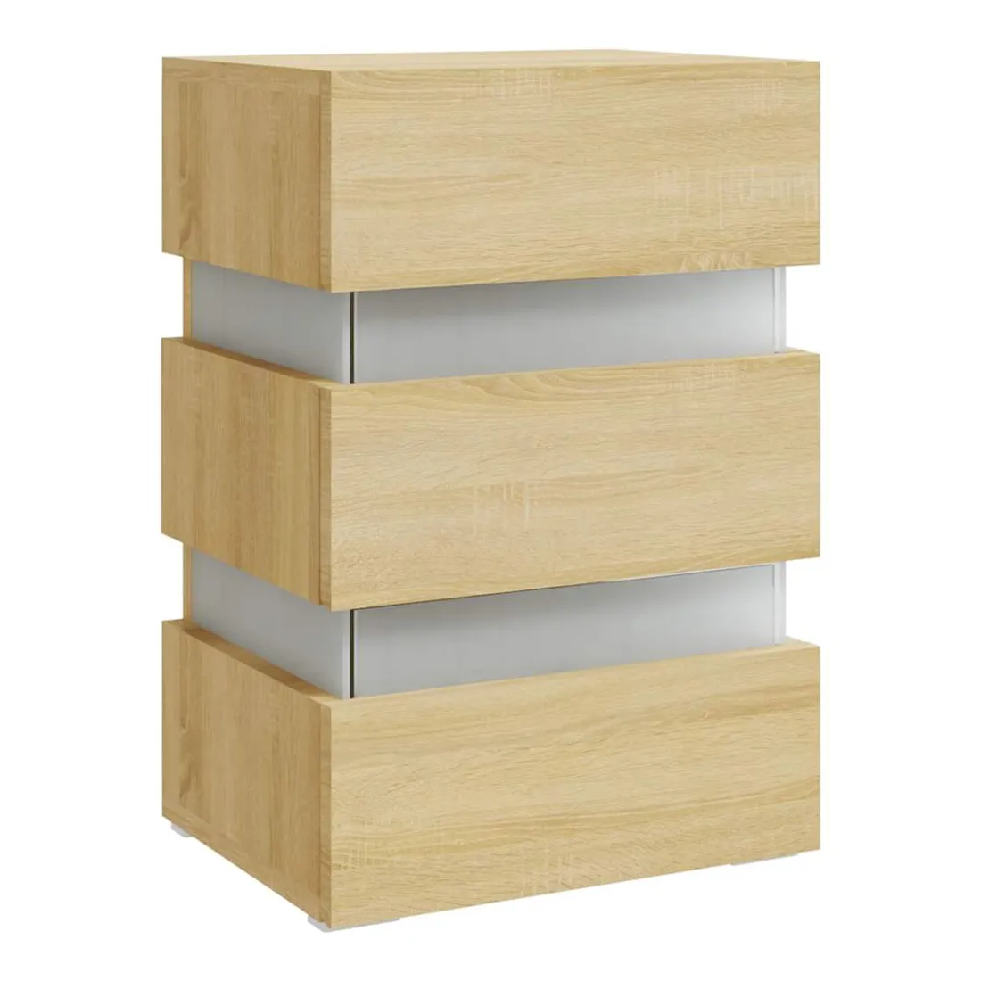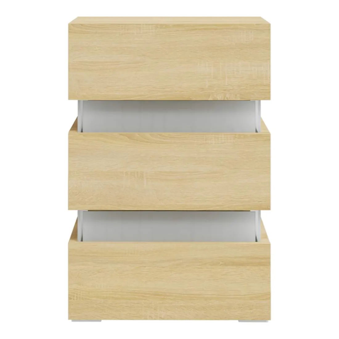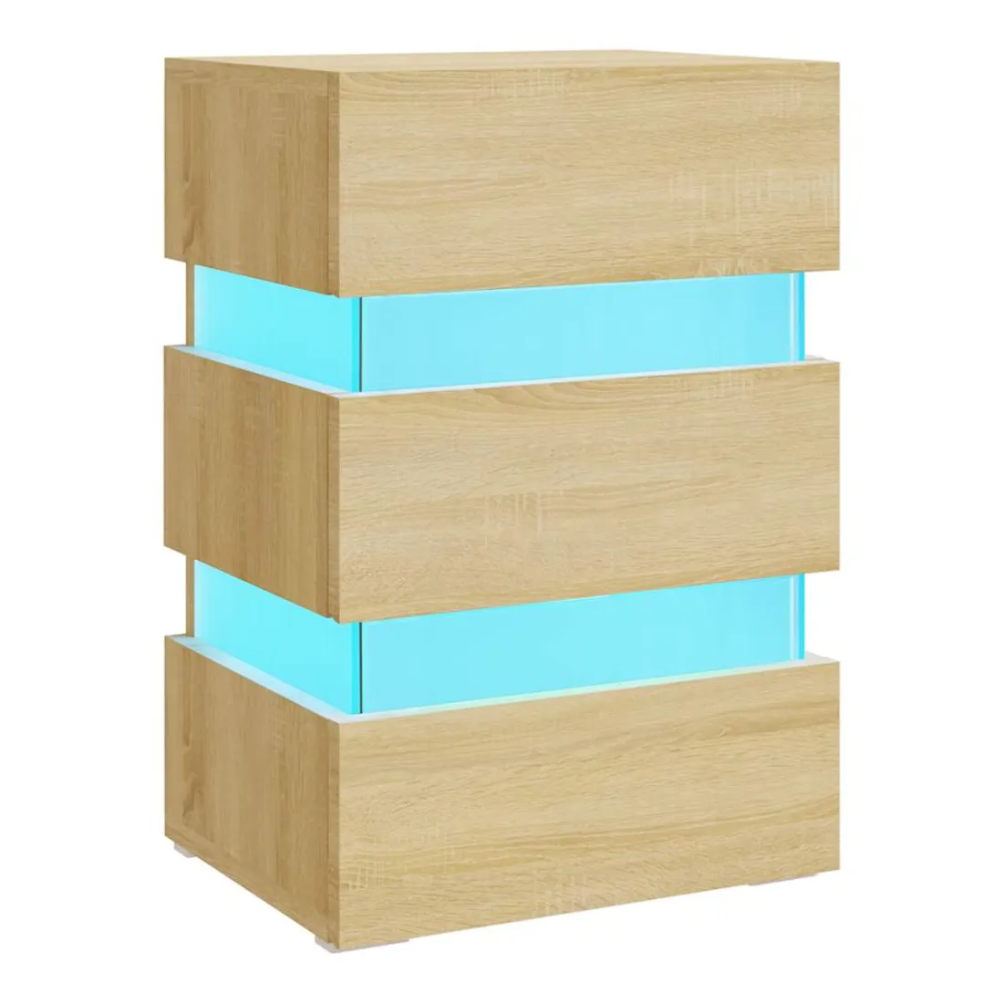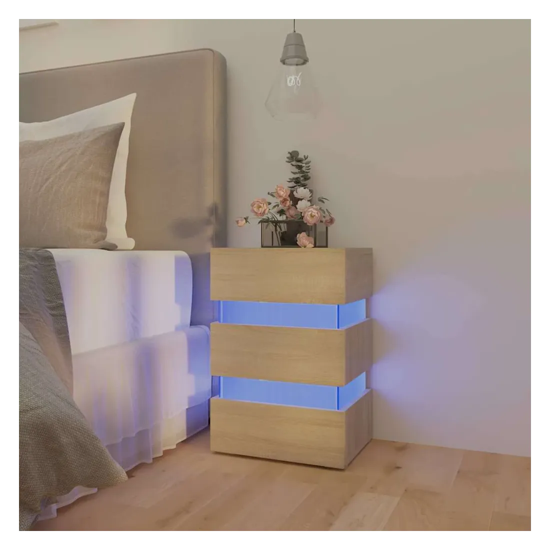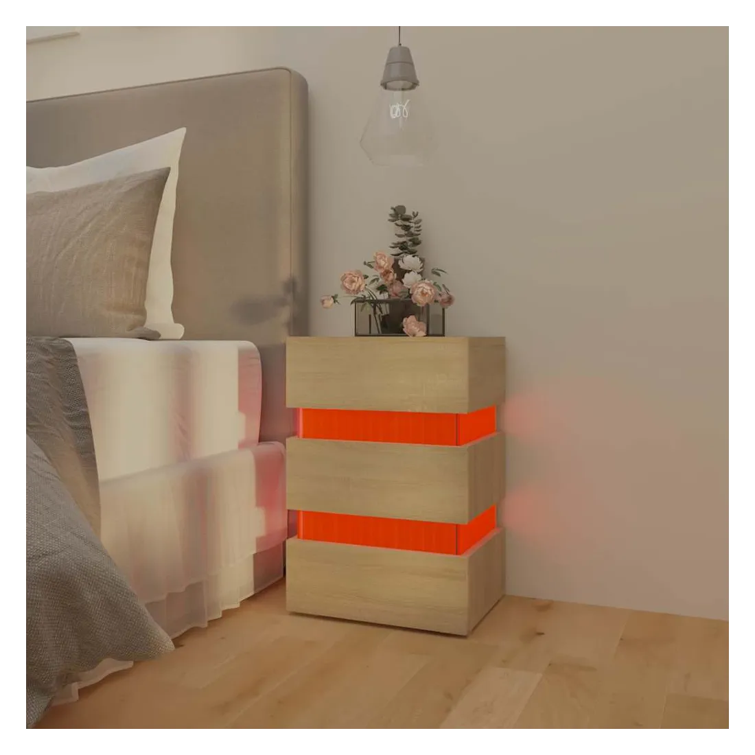 Vous en avez assez de tâtonner dans le noir à la recherche d'un interrupteur au milieu de la nuit ? Avec cette table de chevet à LED, votre problème est résolu ! Fabriquée en bois d'ingénierie de qualité, la table de chevet est stable et facile à nettoyer avec un chiffon humide. Cette armoire de lit offre un grand espace de rangement pour garder vos magazines, livres, télécommandes et autres petits objets bien organisés et à portée de main. De plus, vous pouvez ajouter une touche de modernité supplémentaire grâce à la lumière LED qui est également incluse. Cette table de chevet a tout ce que vous recherchez ! Remarque : ce produit est doté d'un connecteur USB, mais la source d'alimentation certifiée de USB 5V n'est pas incluse.