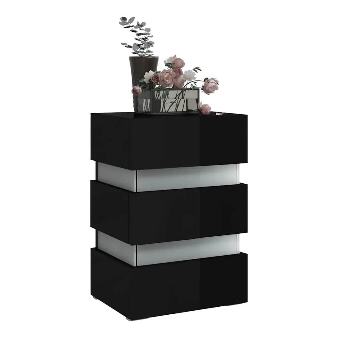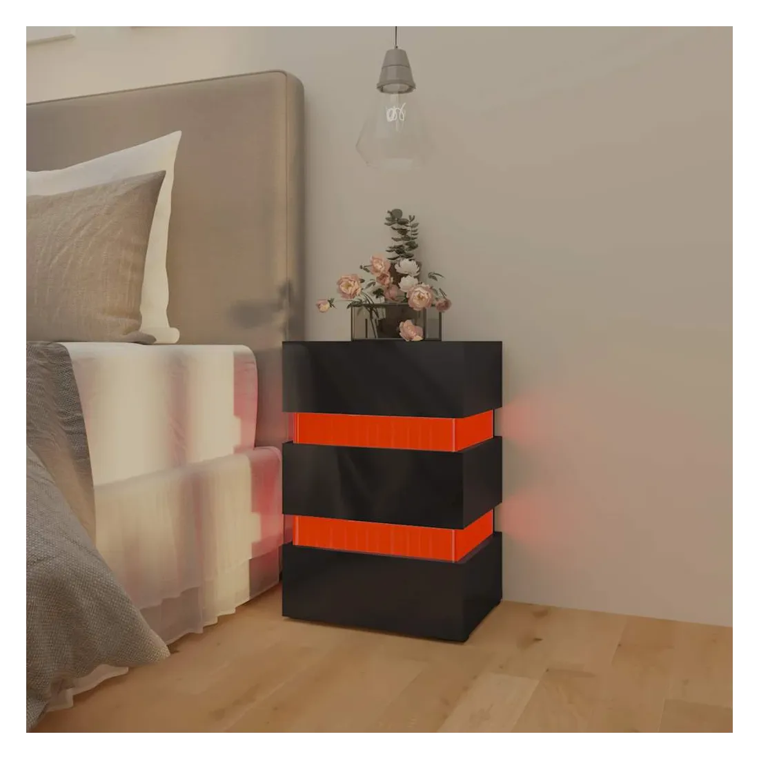 Vous en avez assez de tâtonner dans le noir à la recherche d'un interrupteur au milieu de la nuit ? Avec cette table de chevet à LED, votre problème est résolu ! Fabriquée en bois d'ingénierie de qualité, la table de chevet est stable et facile à nettoyer avec un chiffon humide. Cette armoire de lit offre un grand espace de rangement pour garder vos magazines, livres, télécommandes et autres petits objets bien organisés et à portée de main. De plus, vous pouvez ajouter une touche de modernité supplémentaire grâce à la lumière LED qui est également incluse. Cette table de chevet a tout ce que vous recherchez ! Remarque : ce produit est doté d'un connecteur USB, mais la source d'alimentation certifiée de USB 5V n'est pas incluse.