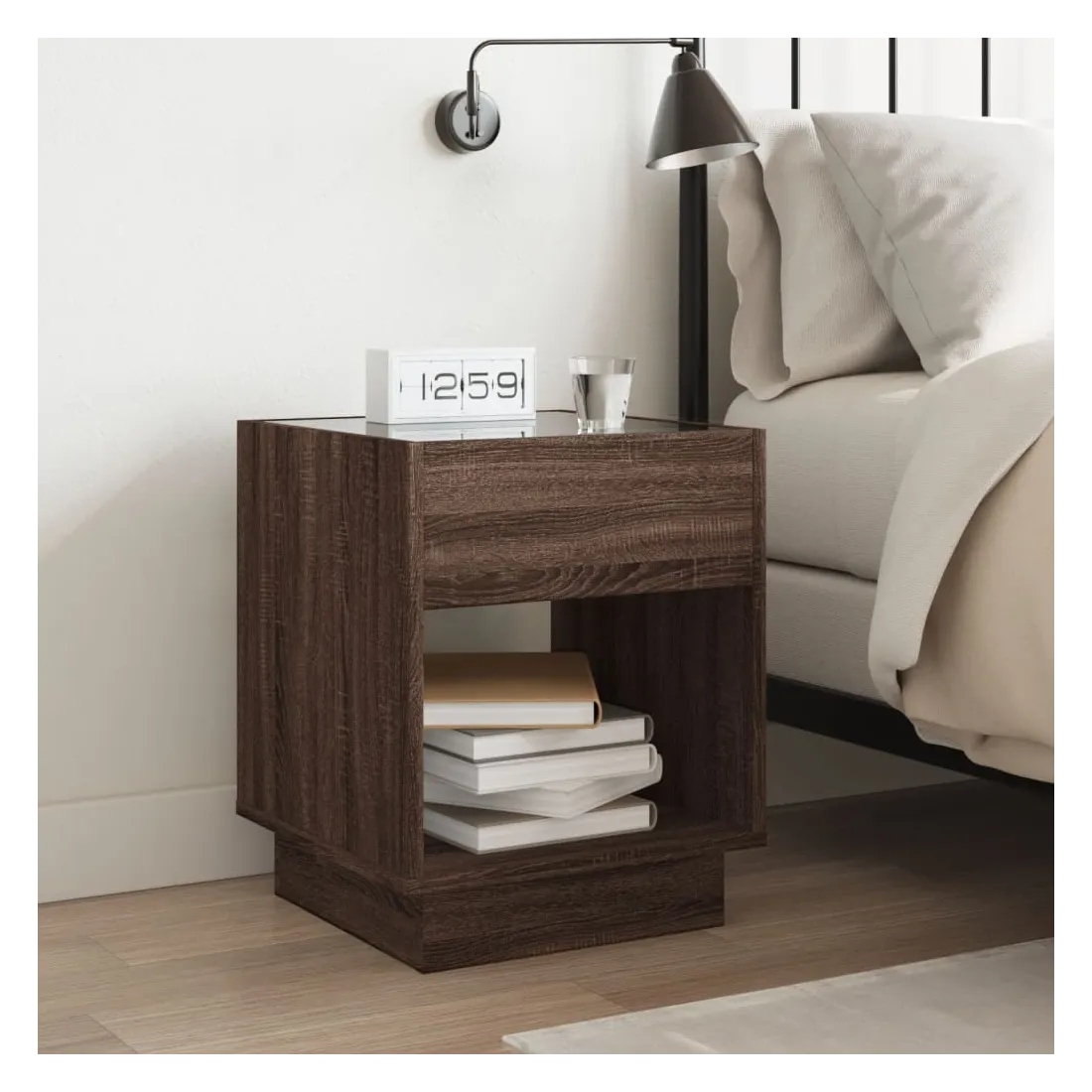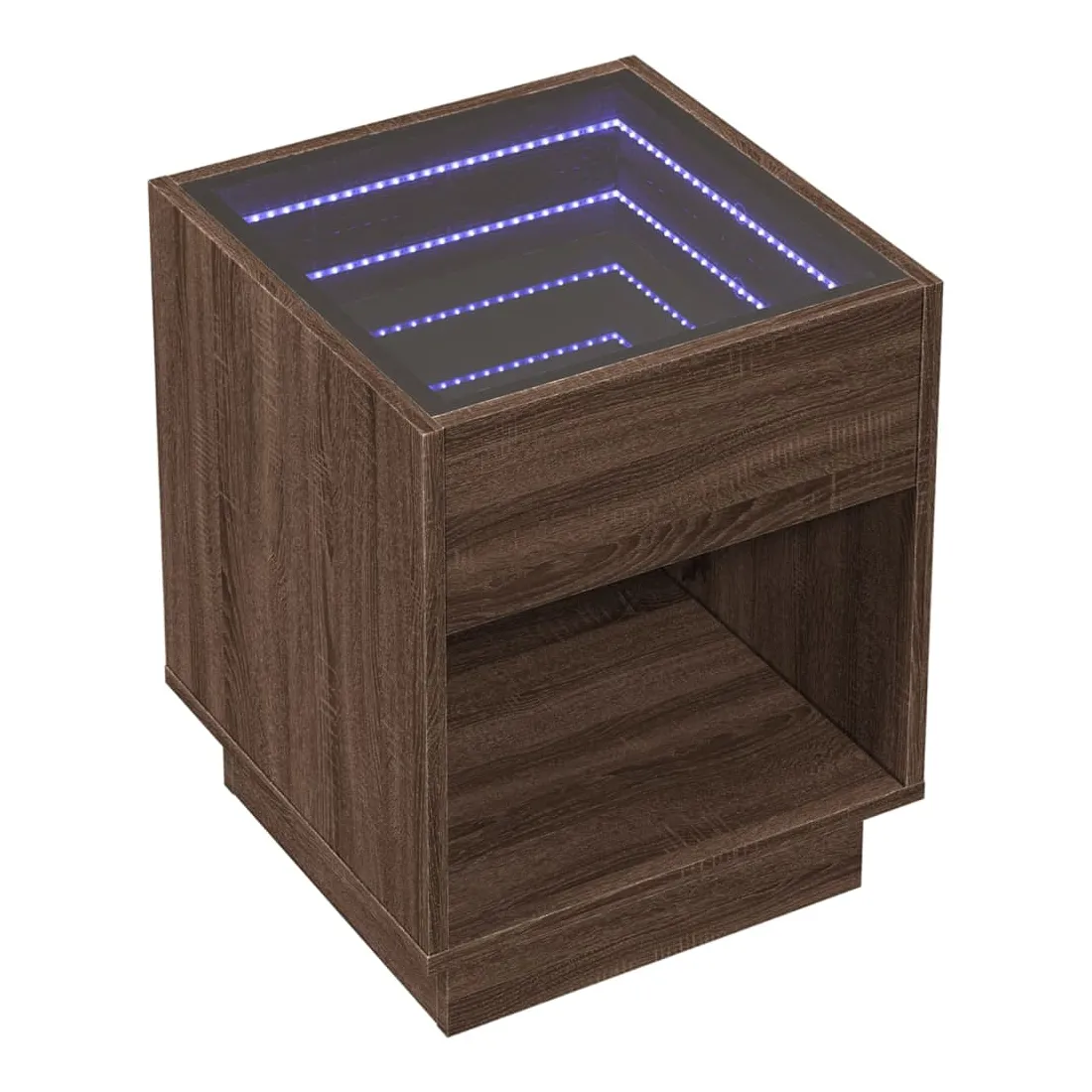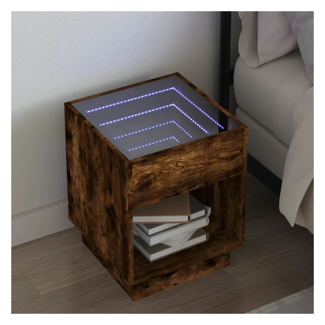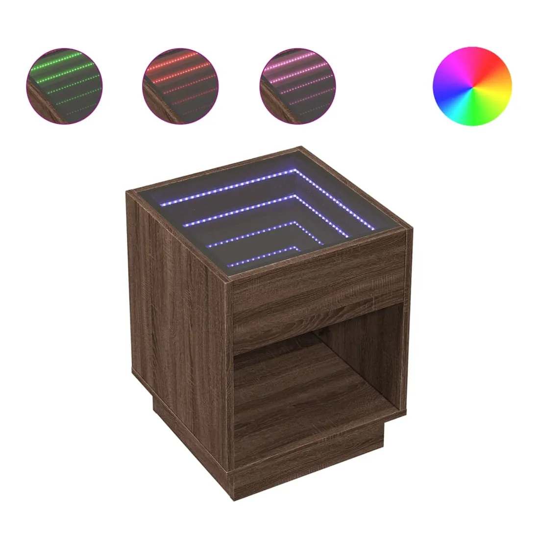 Cette table de chevet avec un miroir à LED infini constitue un ajout intemporel à votre décoration intérieure. Matériau stable et durable : le bois d'ingénierie est un matériau durable et stable dont la surface lisse résiste à l'humidité, à la déformation et au fendillement, ce qui en fait un choix fiable pour une grande variété de projets.Lampes LED RVB pour une ambiance agréable : cette table est dotée de lampes LED qui peuvent être facilement réglées pour créer un spectacle lumineux personnalisé. Vous pouvez personnaliser les modes, les couleurs et la luminosité pour améliorer l'ambiance de votre espace intérieur.Dessus de table stable et robuste : le dessus de table robuste est idéal pour placer vos objets décoratifs ou tout autre objet nécessaire à portée de main. Bon à savoir : Ce produit est doté d'un connecteur USB qui nécessite une source d'alimentation USB de 5V certifiée (non incluse).