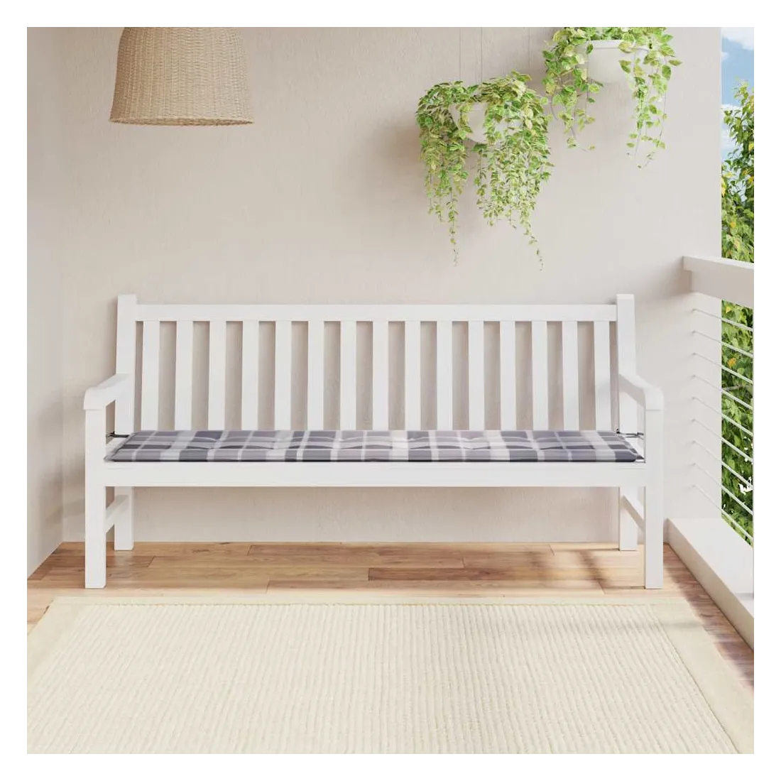 Coussin de banc de jardin motif à carreaux gris 180x50x4 cm