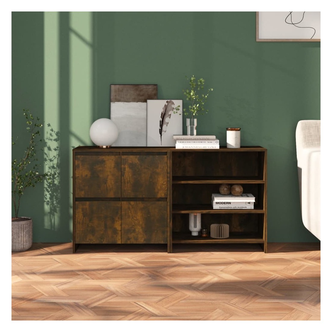 Ces buffets constituent un supplément décoratif et pratique parfait à votre décoration existante. Ces armoires latérales offrent un grand espace de rangement pour garder vos objets quotidiens organisés et à portée de main. Le dessus robuste est parfait pour exposer des objets décoratifs, des cadres photo et des plantes en pot. De plus, ces armoires de rangement sont faciles à nettoyer avec un chiffon humide.