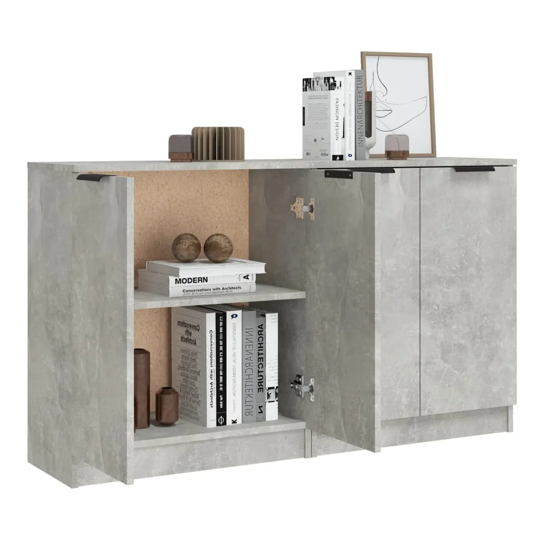 Dotés d'un charme minimaliste, ces buffets sont destinés à satisfaire vos différentes exigences et à compléter idéalement votre pièce. Matériau facile à nettoyer : fabriquées en bois d'ingénierie, les armoires latérales sont faciles à nettoyer. Le bois d'ingénierie est d'une qualité exceptionnelle avec une surface lisse et présente également résistance, stabilité et résistance à l'humidité.Grand espace de rangement : l'espace de rangement rend ces buffets faciles à organiser.Armoire multifonctionnelle : le dessus robuste est idéal pour afficher des objets décoratifs, des cadres photo ou des plantes en pot. Elles peuvent également être utilisées comme armoires de console, armoires latérales, etc. ATTENTION :Afin d'éviter le basculement, ces produits doivent être utilisés avec le dispositif de fixation murale fourni.