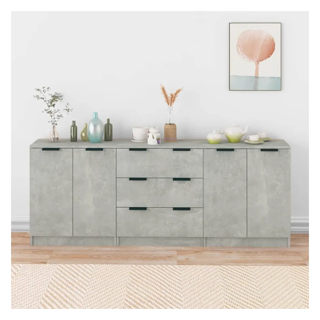 Dotés d'un charme minimaliste, ces buffets sont destinés à satisfaire vos différentes exigences et à compléter idéalement votre pièce. Matériau facile à nettoyer : fabriquées en bois d'ingénierie, les armoires latérales sont faciles à nettoyer. Le bois d'ingénierie est d'une qualité exceptionnelle avec une surface lisse et présente également résistance, stabilité et résistance à l'humidité.Grand espace de rangement : l'espace de rangement rend ces buffets faciles à organiser.Armoire multifonctionnelle : le dessus robuste est idéal pour afficher des objets décoratifs, des cadres photo ou des plantes en pot. Elles peuvent également être utilisées comme armoires de console, armoires latérales, etc. ATTENTION :Afin d'éviter le basculement, ces produits doivent être utilisés avec le dispositif de fixation murale fourni.
