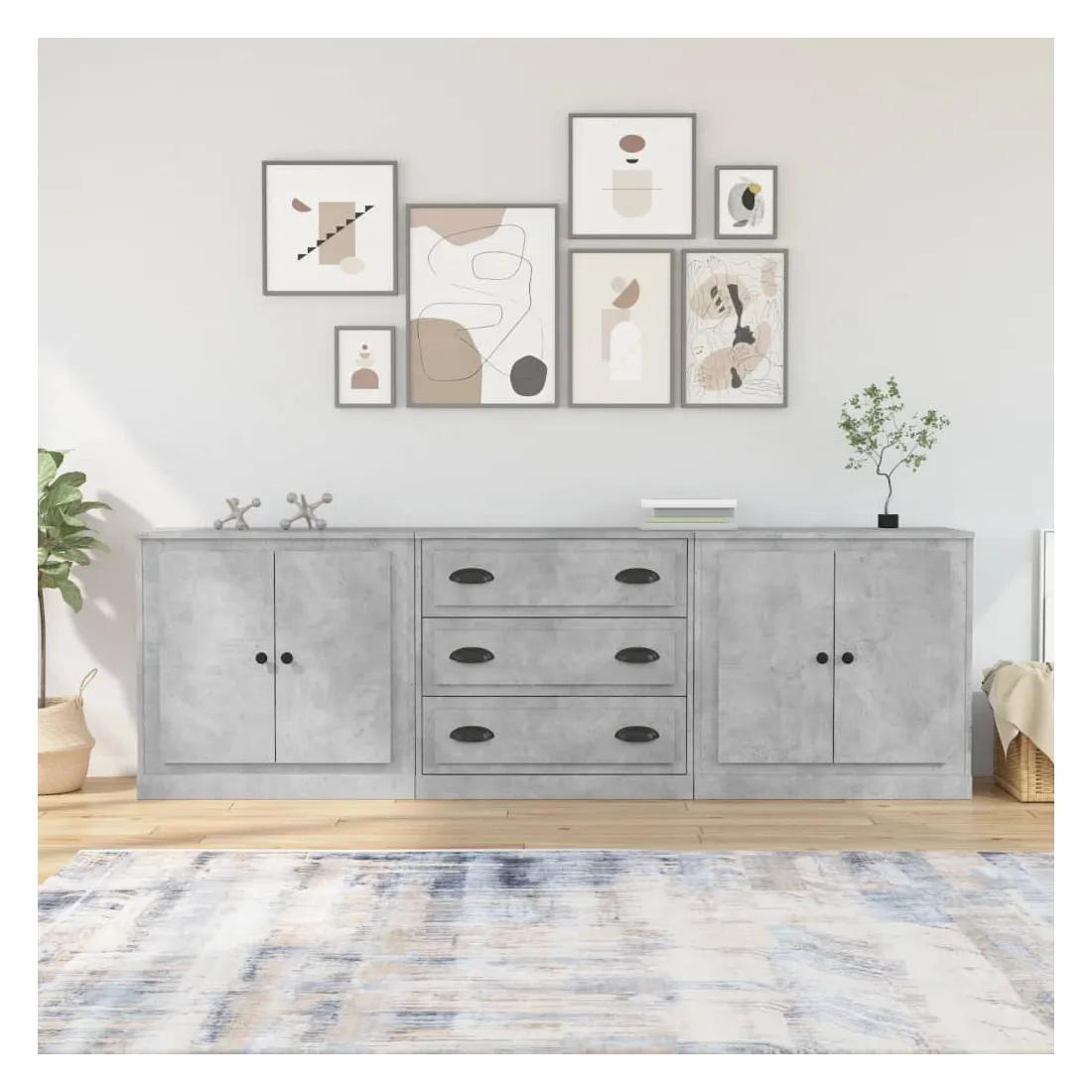 Ces buffets classiques, au look intemporel, sont conçus pour être un excellent supplément à votre maison. Matériau durable : le bois d'ingénierie est d'une qualité exceptionnelle avec une surface lisse et présente également résistance, stabilité et résistance à l'humidité.Grand espace de rangement : l'armoire offre un grand espace de rangement pour garder vos différents articles essentiels quotidiens bien organisés et facilement accessibles.Fonction d'affichage : vous pouvez également placer vos photos, décorations ou fleurs préférées sur l'armoire de rangement pour enrichir votre vie. Attention :Pour éviter qu'il ne soit renversé, ce produit doit être utilisé avec le dispositif de fixation au mur fourni