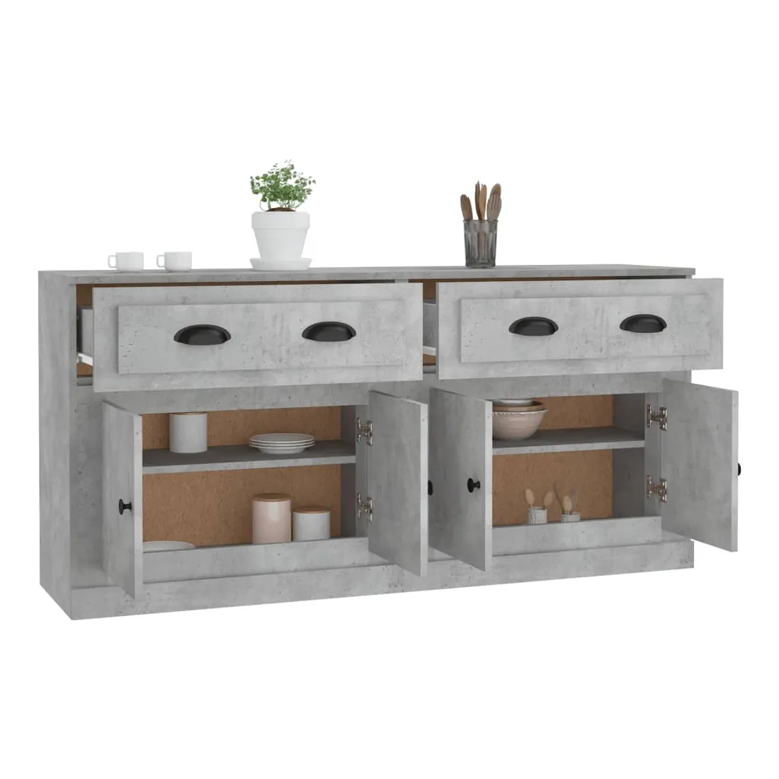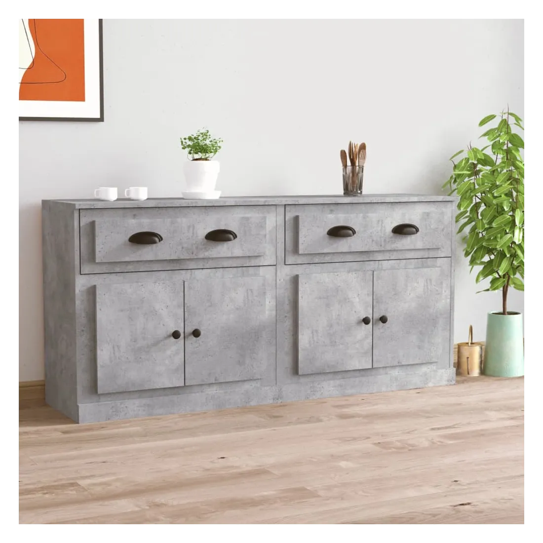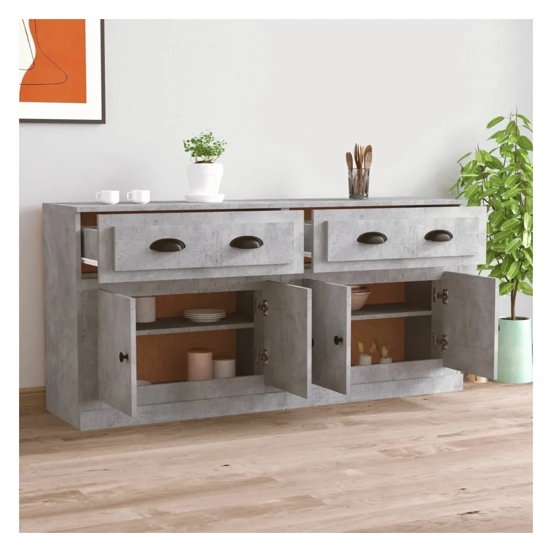 Ces buffets classiques, au look intemporel, sont conçus pour être un excellent supplément à votre maison. Matériau durable : le bois d'ingénierie est d'une qualité exceptionnelle avec une surface lisse et présente également résistance, stabilité et résistance à l'humidité.Grand espace de rangement : l'armoire offre un grand espace de rangement pour garder vos différents articles essentiels quotidiens bien organisés et facilement accessibles.Fonction d'affichage : vous pouvez également placer vos photos, décorations ou fleurs préférées sur l'armoire de rangement pour enrichir votre vie. Bon à savoir :Pour faciliter au maximum le montage, chaque produit est livré avec des instructions. Attention :Pour éviter qu'il ne soit renversé, ce produit doit être utilisé avec le dispositif de fixation au mur fourni