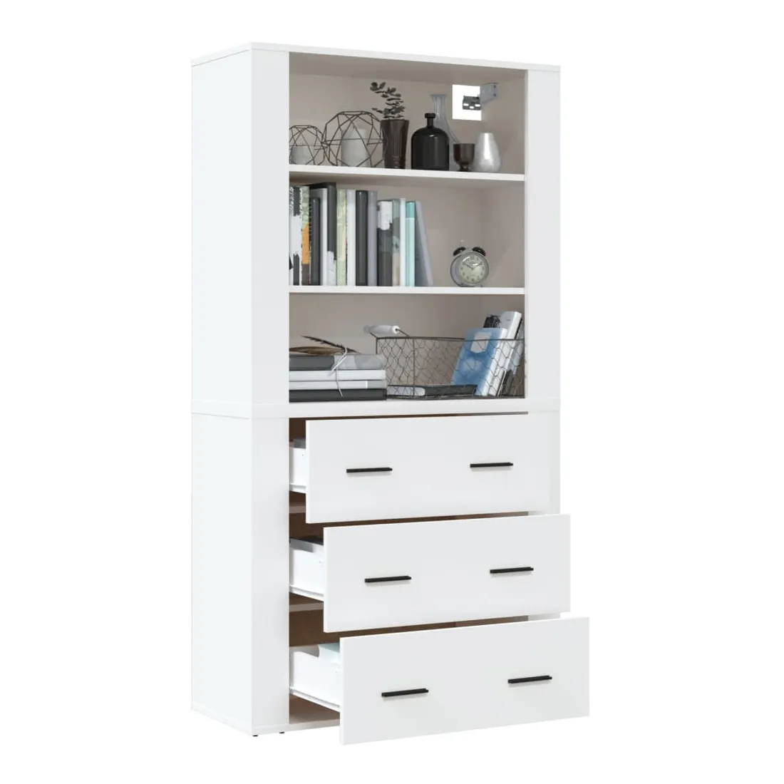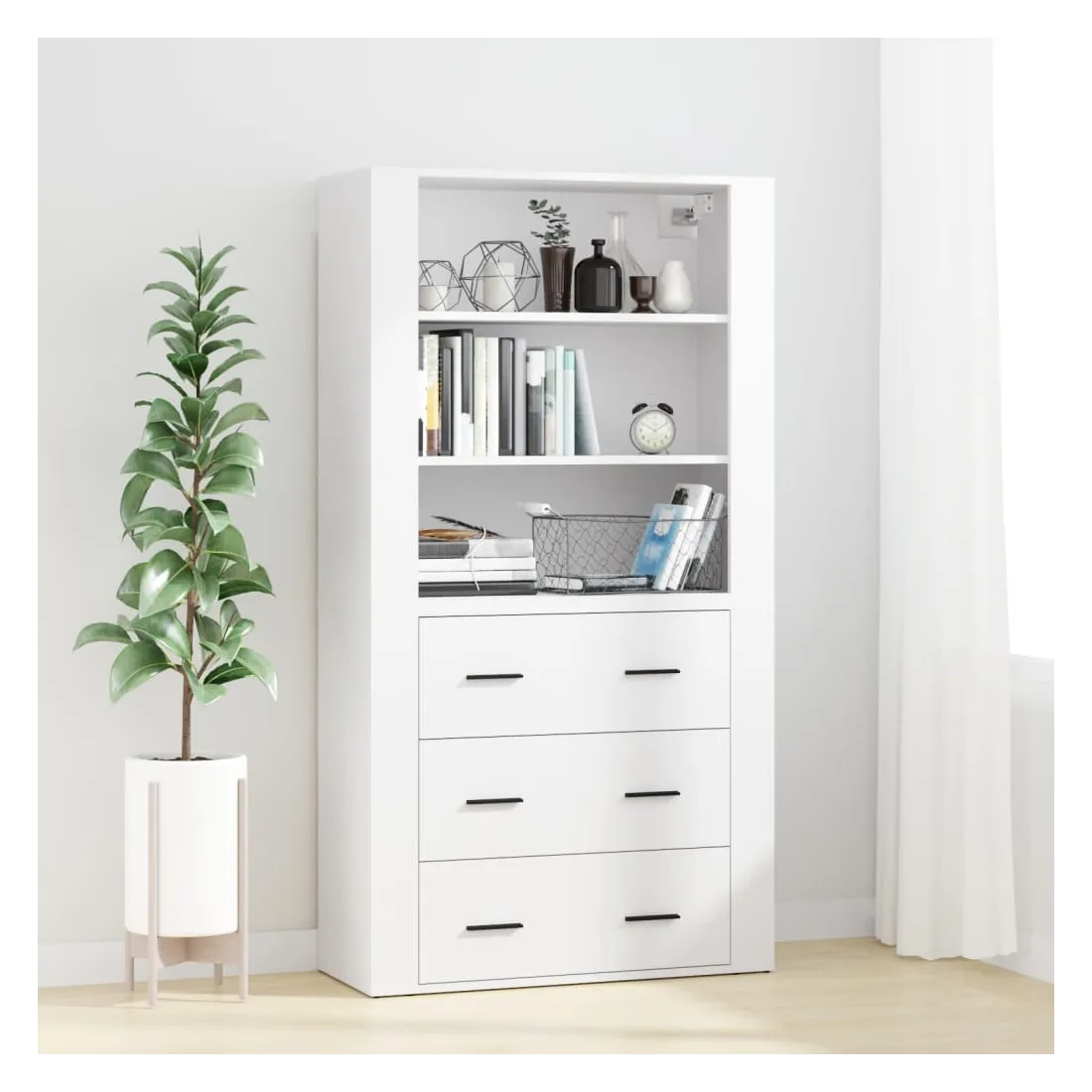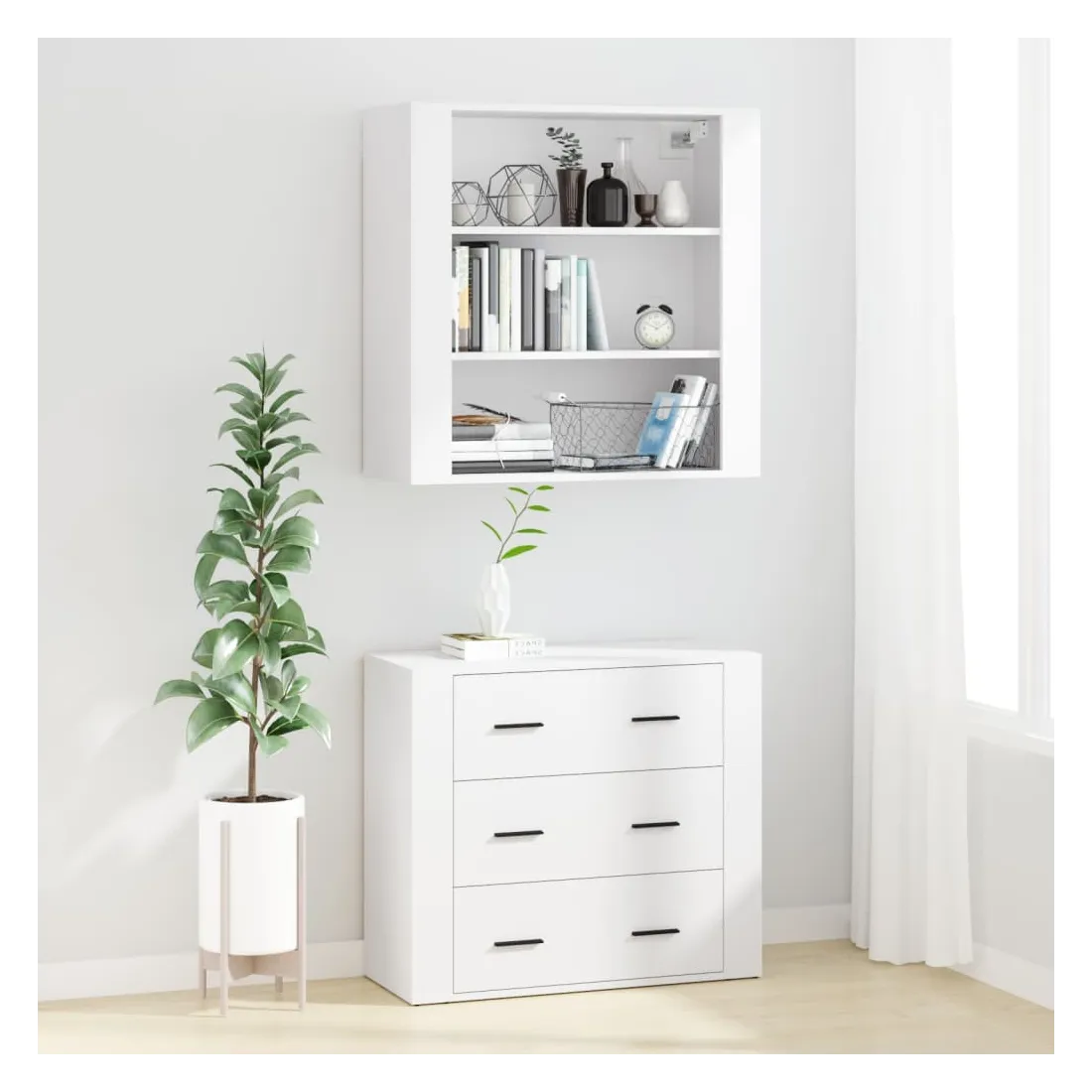 Cherchez-vous un buffet haut de gamme stylé ? Ce buffet haut ajoute un charme unique à votre intérieur existant ! Matériau durable : le bois d'ingénierie est d'une qualité exceptionnelle avec une surface lisse et présente également résistance, stabilité et résistance à l'humidité.Grand espace de rangement : le buffet offre un grand espace de rangement pour garder vos différents articles essentiels quotidiens bien organisés et facilement accessibles.Fonction murale : le meuble de rangement peut être fixé au mur sur le dessus du buffet pour créer un buffet haut, ce qui permet de gagner de l'espace au sol. Ainsi, vous pouvez maximiser votre espace de vie et garder la zone propre et bien rangée. Bon à savoir :Pour faciliter au maximum le montage, chaque produit est livré avec des instructions.Les vis et les chevilles pour l'intérieur du mur ne sont pas incluses. Nous vous conseillons de trouver et d'utiliser des vis et des chevilles adaptées spécifiquement à vos murs. Si vous n'êtes pas sûr, vous pouvez consulter un professionnel. Veuillez lire et suivre chaque étape des instructions. Attention :Pour éviter qu'il ne soit renversé, ce produit doit être utilisé avec le dispositif de fixation au mur fourni.