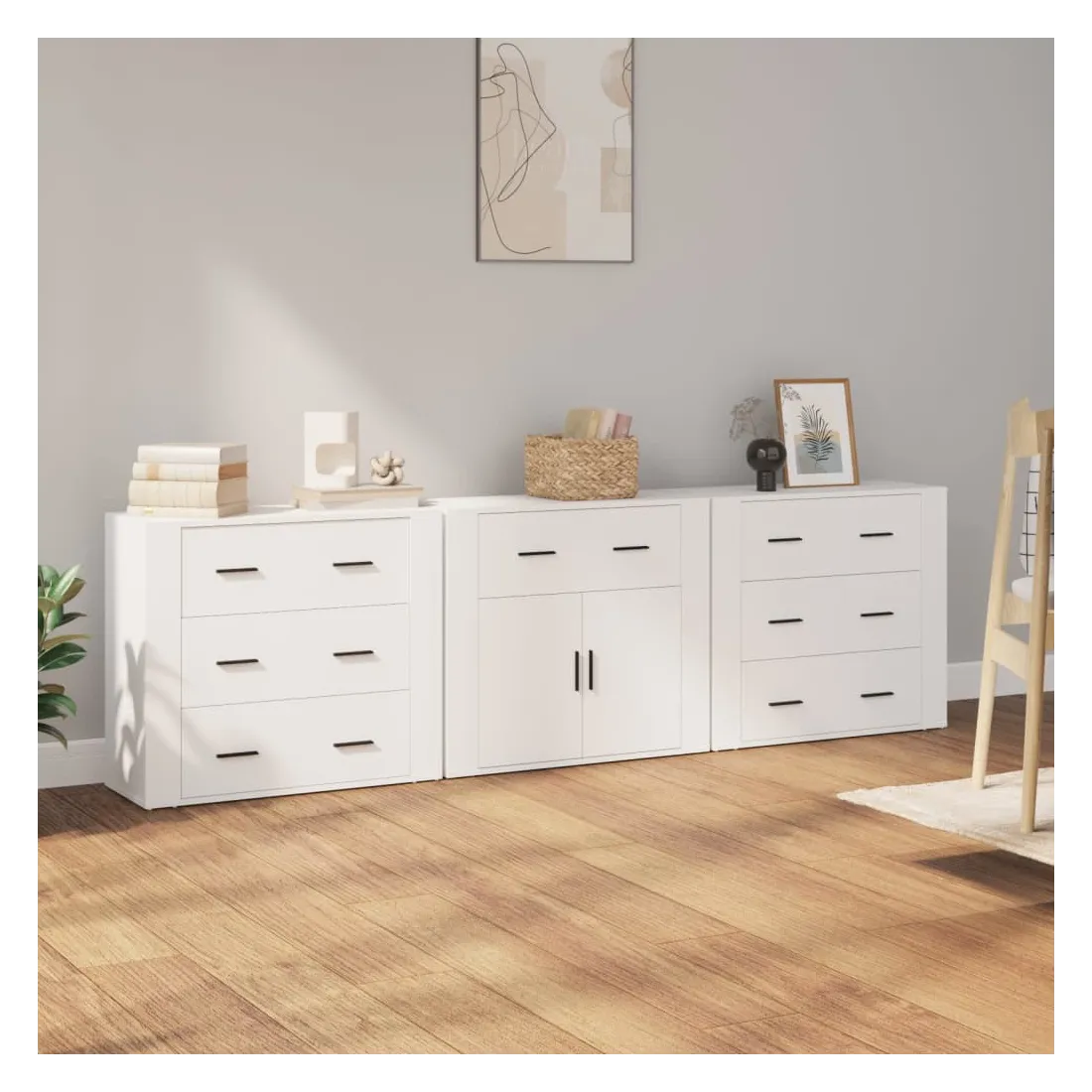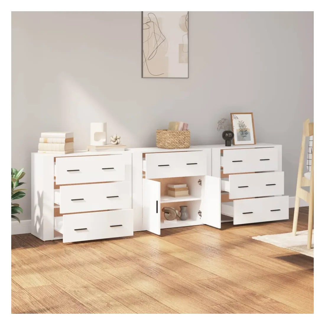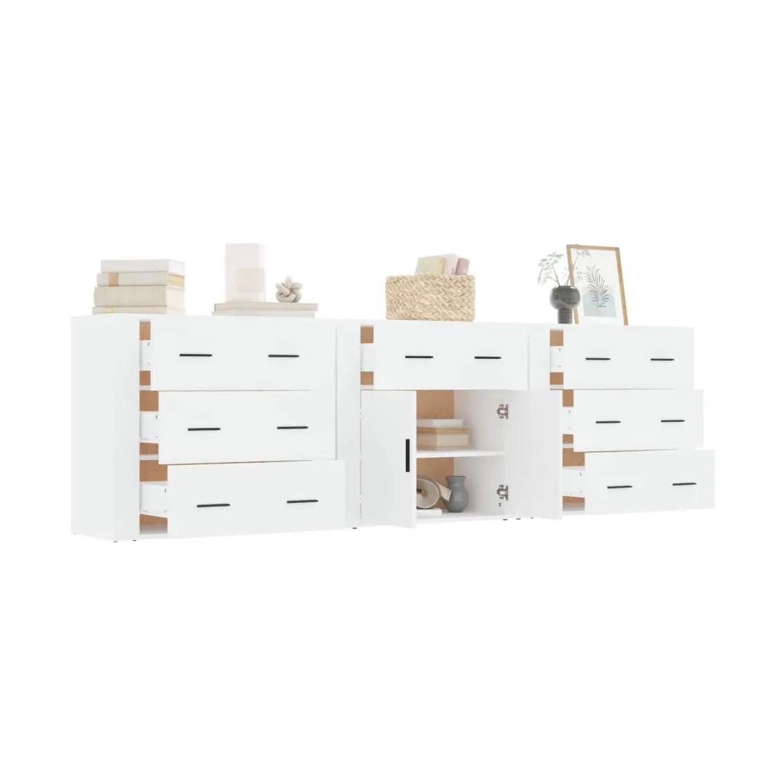 Ces buffets classiques, au look intemporel, sont conçus pour être un excellent supplément à votre maison. Matériau durable : le bois d'ingénierie est d'une qualité exceptionnelle avec une surface lisse et présente également résistance, stabilité et résistance à l'humidité.Grand espace de rangement : l'armoire offre un grand espace de rangement pour garder vos différents articles essentiels quotidiens bien organisés et facilement accessibles.Fonction d'affichage : vous pouvez également placer vos photos, décorations ou fleurs préférées sur l'armoire de rangement pour enrichir votre vie. Bon à savoir :Pour faciliter au maximum le montage, chaque produit est livré avec des instructions. Attention :Pour éviter qu'il ne soit renversé, ce produit doit être utilisé avec le dispositif de fixation au mur fourni.