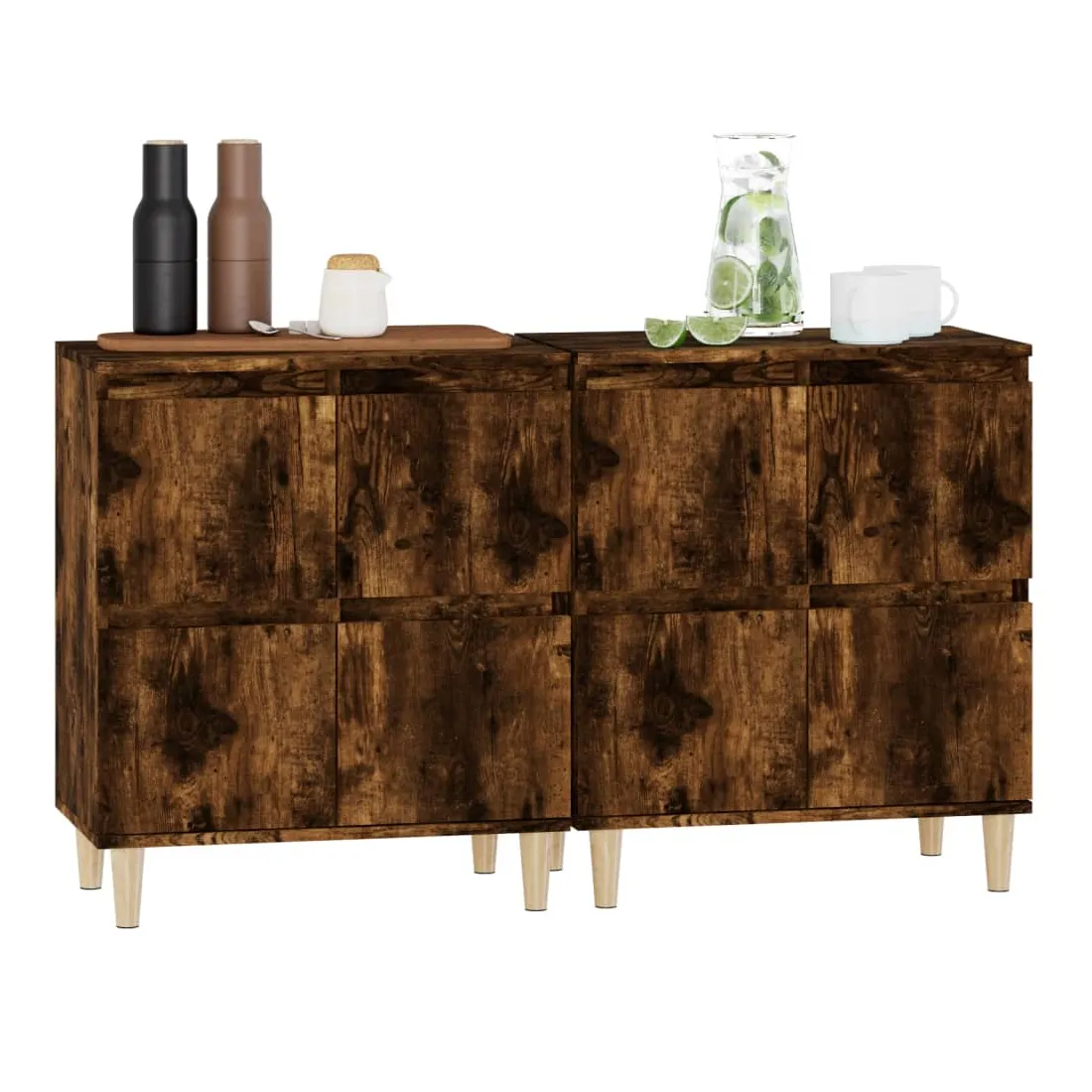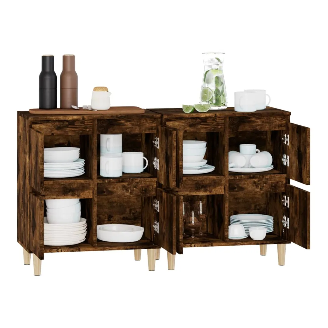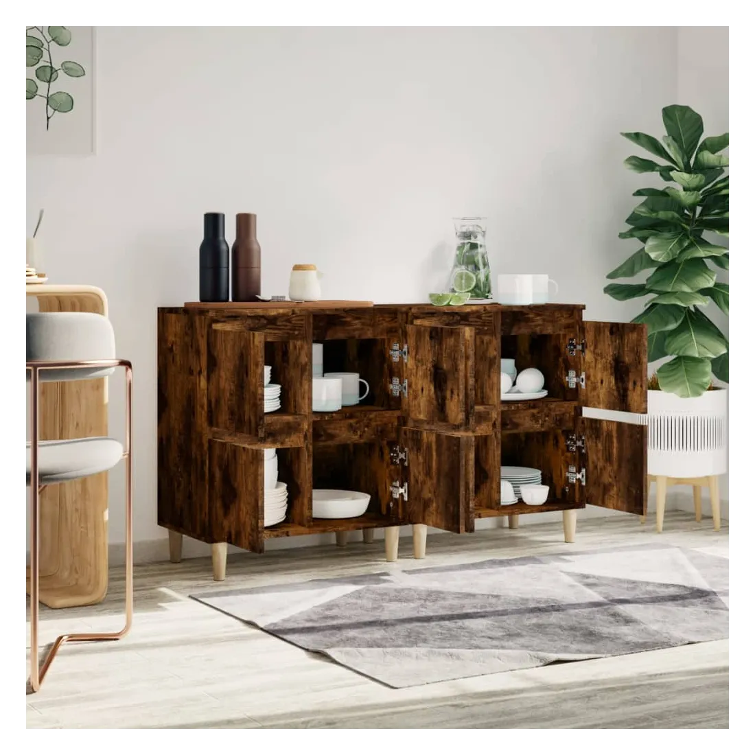Ces buffets classiques, au look intemporel, sont conçus pour être un excellent supplément à votre maison. Matériau durable : le bois d'ingénierie est d'une qualité exceptionnelle avec une surface lisse et présente également résistance, stabilité et résistance à l'humidité. Fabriquée en bois d'ingénierie, l'armoire est facile à nettoyer avec un chiffon humide.Grand espace de rangement : équipé de 4 compartiments, le meuble buffet offre un grand espace de rangement pour garder vos différents articles essentiels quotidiens bien organisés et facilement accessibles.Fonction d'affichage : le dessus du placard est idéal pour exposer vos objets décoratifs, albums photo ou petites plantes. Attention :Pour éviter qu'il ne soit renversé, ce produit doit être utilisé avec le dispositif de fixation au mur fourni.