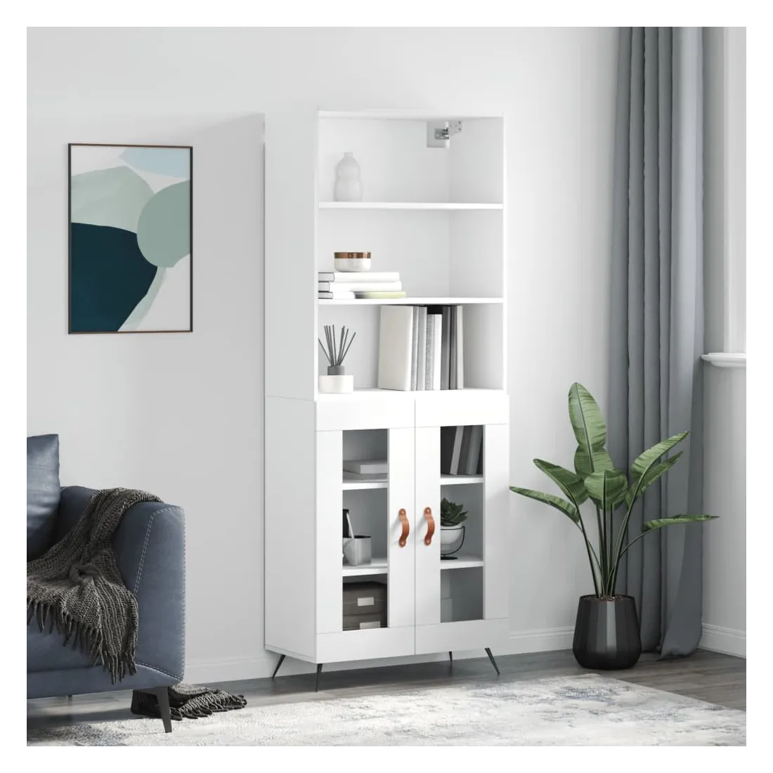 Cherchez-vous un buffet haut de gamme stylé ? Ce buffet haut ajoute un charme élégant à votre intérieur existant ! Matériau durable : le bois d'ingénierie est d'une qualité exceptionnelle avec une surface lisse et présente également résistance, stabilité et résistance à l'humidité.Grand espace de rangement : l'armoire offre un grand espace de rangement pour garder vos différents articles essentiels quotidiens bien organisés et facilement accessibles.Portes pratiques : gardez votre espace sans encombrement en cachant de petits articles essentiels derrière les portes de l'armoire de rangement.Pieds en métal : les pieds en métal ajoutent un style calme à votre intérieur tout en assurant la stabilité. Attention :Pour éviter qu'il ne soit renversé, ce produit doit être utilisé avec le dispositif de fixation au mur fourni. Bon à savoir :Les vis et les chevilles pour l'intérieur du mur ne sont pas incluses. Nous vous conseillons de trouver et d'utiliser des vis et des chevilles adaptées spécifiquement à vos murs. Si vous n'êtes pas sûr, vous pouvez consulter un professionnel. Veuillez lire et suivre chaque étape des instructions.