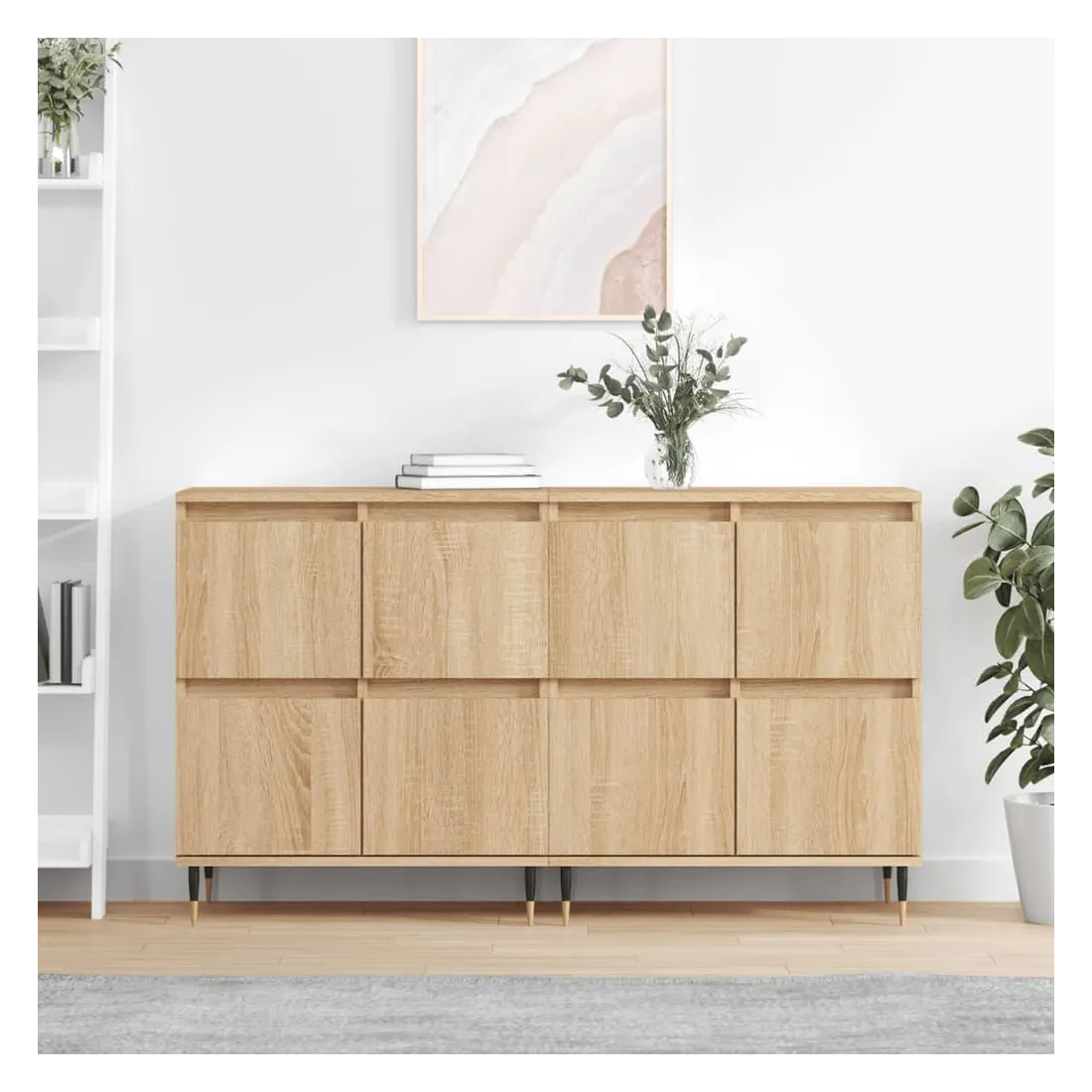 Ces buffets classiques, au look intemporel, sont conçus pour être un excellent supplément à votre maison. Matériau durable : le bois d'ingénierie est d'une qualité exceptionnelle avec une surface lisse et présente également résistance, stabilité et résistance à l'humidité.Grand espace de rangement : l'armoire offre un grand espace de rangement pour garder vos différents articles essentiels quotidiens bien organisés et facilement accessibles.Fonction d'affichage : vous pouvez également placer vos photos, décorations ou fleurs préférées sur l'armoire de rangement pour enrichir votre vie. Attention :Pour éviter qu'il ne soit renversé, ce produit doit être utilisé avec le dispositif de fixation au mur fourni.