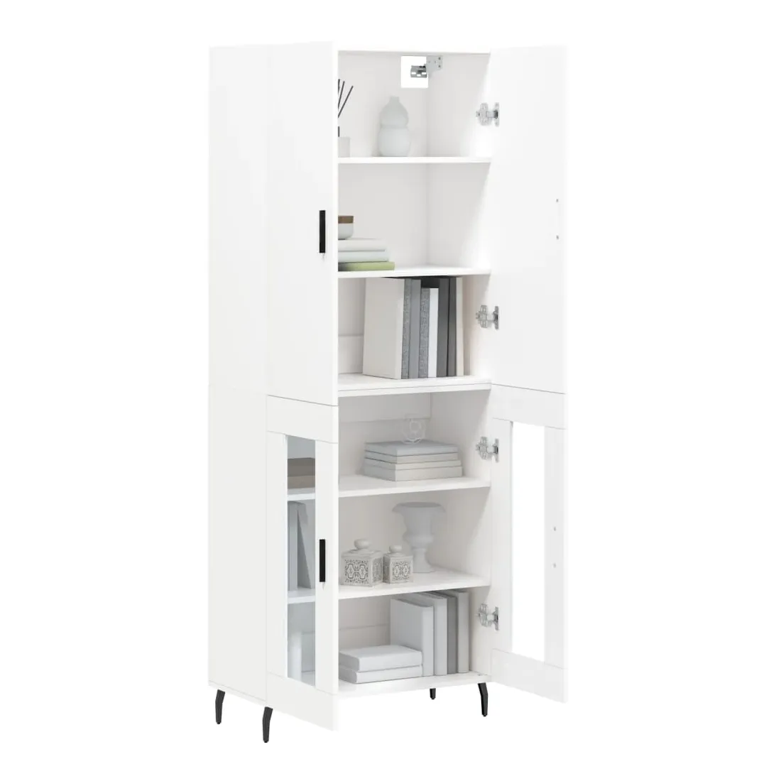 Cherchez-vous un buffet haut de gamme stylé ? Ce buffet haut ajoute un charme élégant à votre intérieur existant ! Matériau durable : le bois d'ingénierie est d'une qualité exceptionnelle avec une surface lisse et présente également résistance, stabilité et résistance à l'humidité.Grand espace de rangement : l'armoire latérale offre un grand espace de rangement pour garder vos différents articles essentiels quotidiens bien organisés et facilement accessibles.Design en verre : le design en verre met en valeur l'élégance de l'armoire latérale et vous permet d'exposer vos objets préférés.Porte pratique : gardez votre espace sans encombrement en cachant de petits articles essentiels derrière les portes de l'armoire de rangement.Pieds en métal : les pieds en métal ajoutent un style calme à votre intérieur tout en assurant la stabilité. Attention :Pour éviter qu'il ne soit renversé, ce produit doit être utilisé avec le dispositif de fixation au mur fourni. Bon à savoir :Les vis et les chevilles pour l'intérieur du mur ne sont pas incluses. Nous vous conseillons de trouver et d'utiliser des vis et des chevilles adaptées spécifiquement à vos murs. Si vous n'êtes pas sûr, vous pouvez consulter un professionnel. Veuillez lire et suivre chaque étape des instructions.