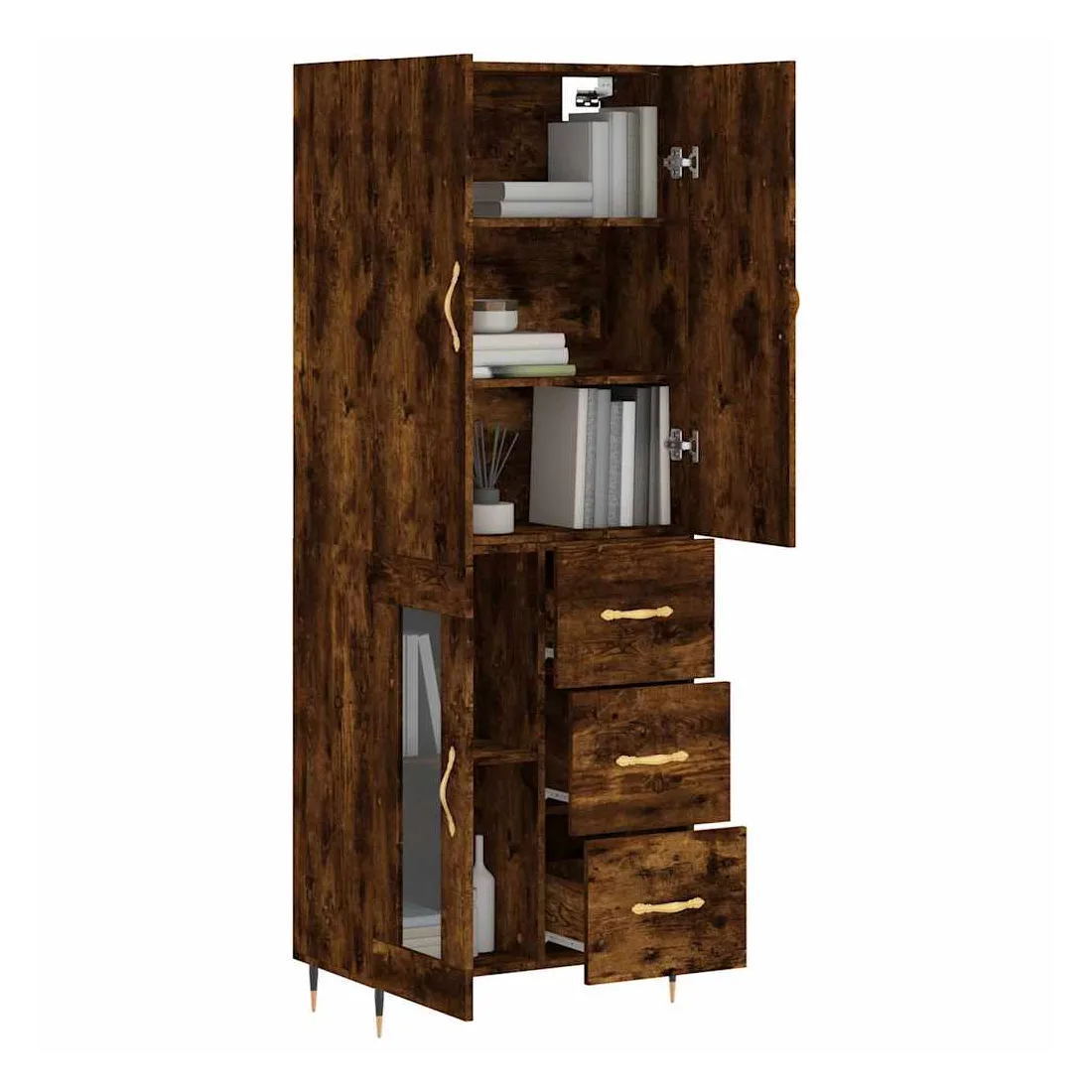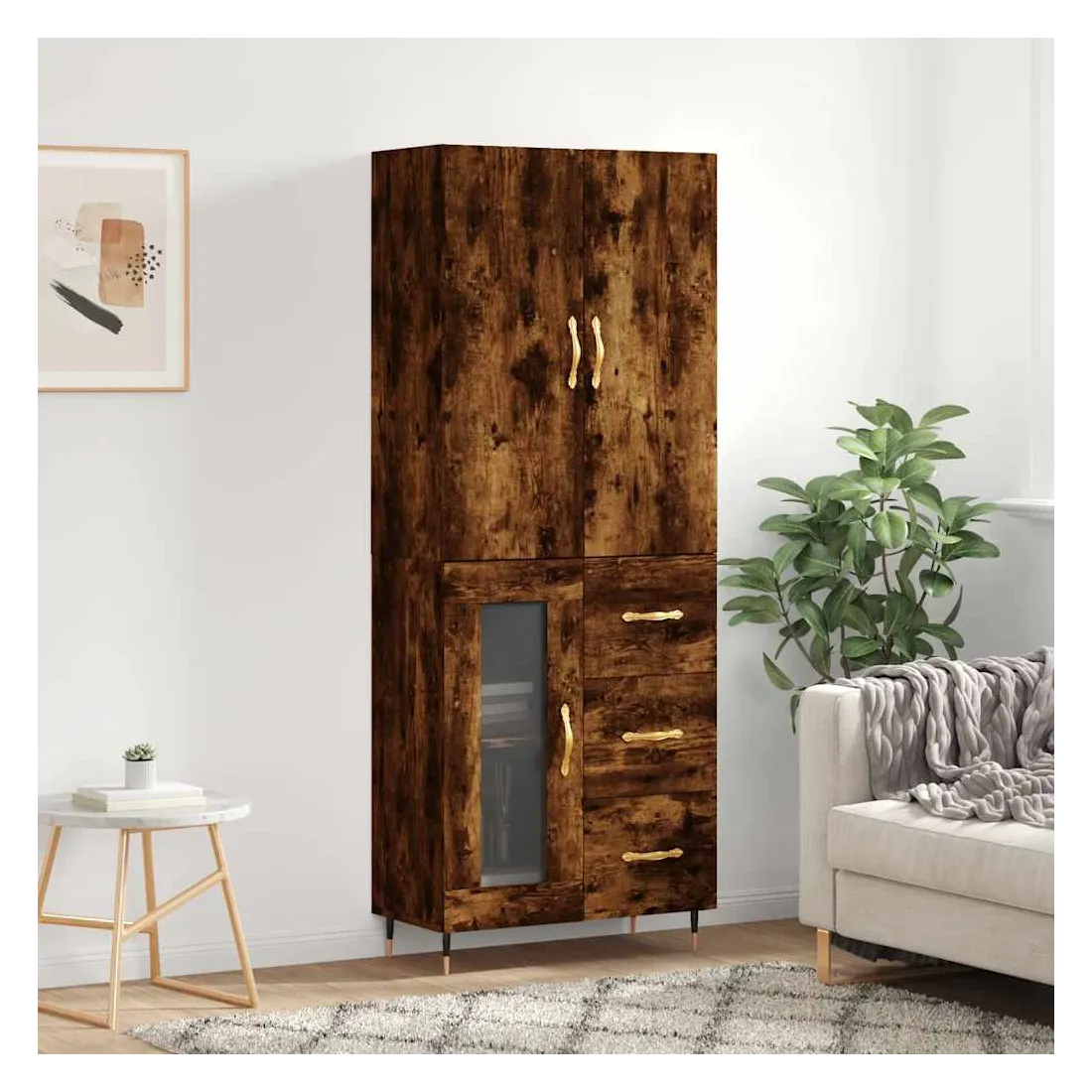 Buffet haut Chêne fumé 69,5x34x180 cm Bois d'ingénierie