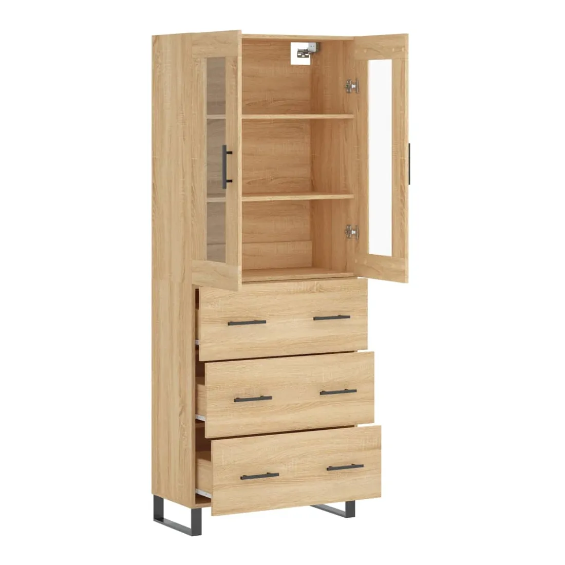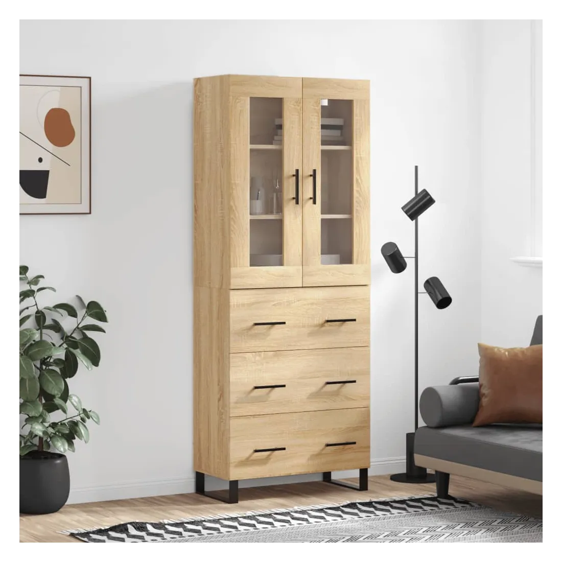 Cherchez-vous un buffet haut de gamme stylé ? Ce buffet haut ajoute un charme élégant à votre intérieur existant ! Matériau durable : le bois d'ingénierie est d'une qualité exceptionnelle avec une surface lisse et présente également résistance, stabilité et résistance à l'humidité.Grand espace de rangement : l'armoire offre un grand espace de rangement pour garder vos différents articles essentiels quotidiens bien organisés et facilement accessibles.Pieds en métal : les pieds en métal ajoutent un style calme à votre intérieur tout en assurant la stabilité. Attention :Pour éviter qu'il ne soit renversé, ce produit doit être utilisé avec le dispositif de fixation au mur fourni. Bon à savoir :Les vis et les chevilles pour l'intérieur du mur ne sont pas incluses. Nous vous conseillons de trouver et d'utiliser des vis et des chevilles adaptées spécifiquement à vos murs. Si vous n'êtes pas sûr, vous pouvez consulter un professionnel. Veuillez lire et suivre chaque étape des instructions.