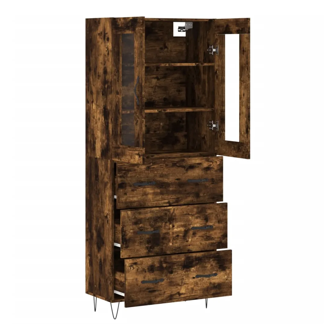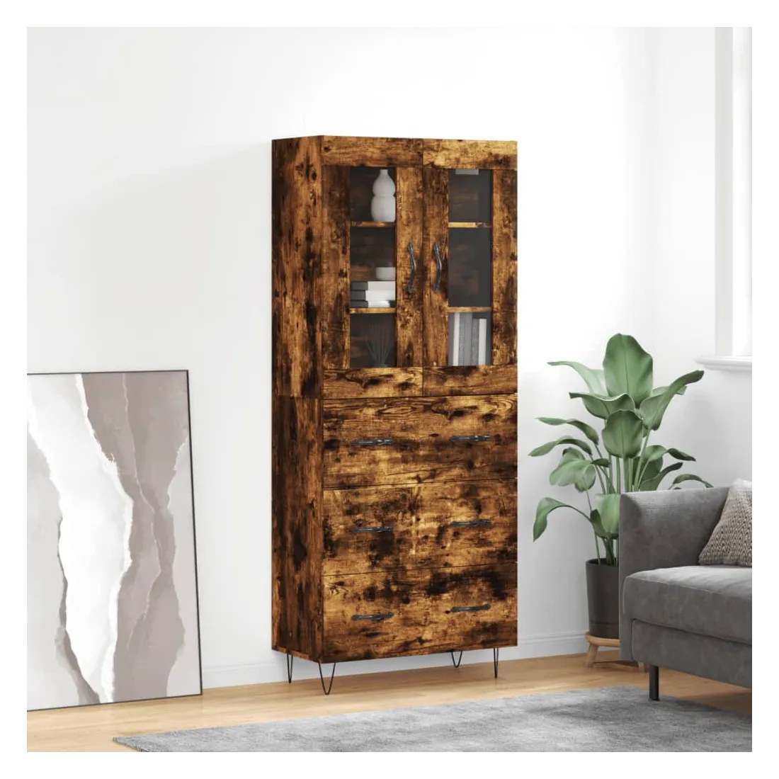 Buffet haut Chêne fumé 69,5x34x180 cm Bois d'ingénierie