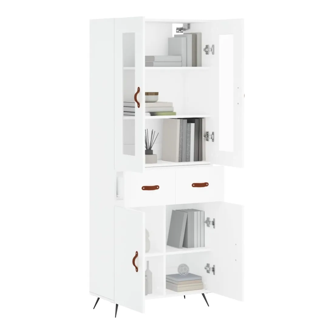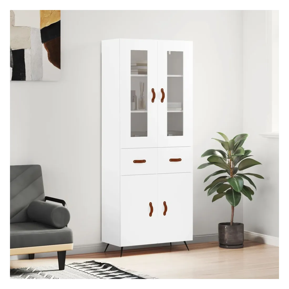 Cherchez-vous un buffet haut de gamme stylé ? Ce buffet haut ajoute un charme élégant à votre intérieur existant ! Matériau durable : le bois d'ingénierie est d'une qualité exceptionnelle avec une surface lisse et présente également résistance, stabilité et résistance à l'humidité.Grand espace de rangement : l'armoire offre un grand espace de rangement pour garder vos différents articles essentiels quotidiens bien organisés et facilement accessibles.Pieds en métal : les pieds en métal ajoutent un style calme à votre intérieur tout en assurant la stabilité. Attention :Pour éviter qu'il ne soit renversé, ce produit doit être utilisé avec le dispositif de fixation au mur fourni. Bon à savoir :Les vis et les chevilles pour l'intérieur du mur ne sont pas incluses. Nous vous conseillons de trouver et d'utiliser des vis et des chevilles adaptées spécifiquement à vos murs. Si vous n'êtes pas sûr, vous pouvez consulter un professionnel. Veuillez lire et suivre chaque étape des instructions.