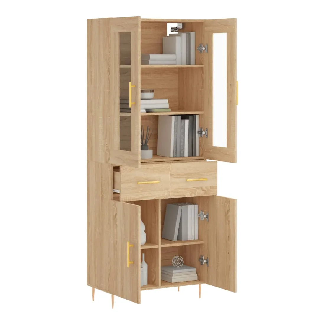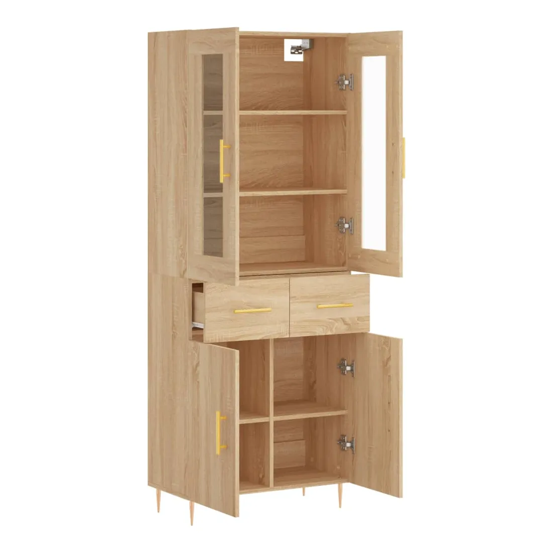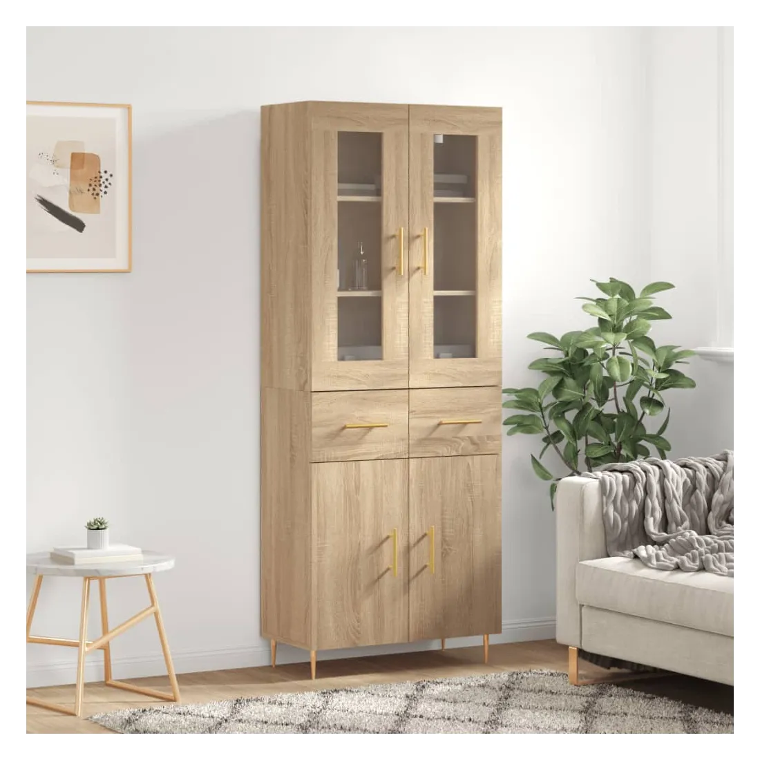 Cherchez-vous un buffet haut de gamme stylé ? Ce buffet haut ajoute un charme élégant à votre intérieur existant ! Matériau durable : le bois d'ingénierie est d'une qualité exceptionnelle avec une surface lisse et présente également résistance, stabilité et résistance à l'humidité.Grand espace de rangement : l'armoire offre un grand espace de rangement pour garder vos différents articles essentiels quotidiens bien organisés et facilement accessibles.Pieds en métal : les pieds en métal ajoutent un style calme à votre intérieur tout en assurant la stabilité. Attention :Pour éviter qu'il ne soit renversé, ce produit doit être utilisé avec le dispositif de fixation au mur fourni. Bon à savoir :Les vis et les chevilles pour l'intérieur du mur ne sont pas incluses. Nous vous conseillons de trouver et d'utiliser des vis et des chevilles adaptées spécifiquement à vos murs. Si vous n'êtes pas sûr, vous pouvez consulter un professionnel. Veuillez lire et suivre chaque étape des instructions.
