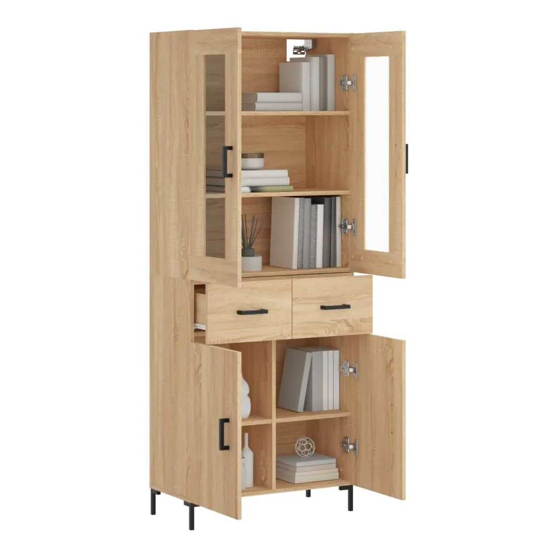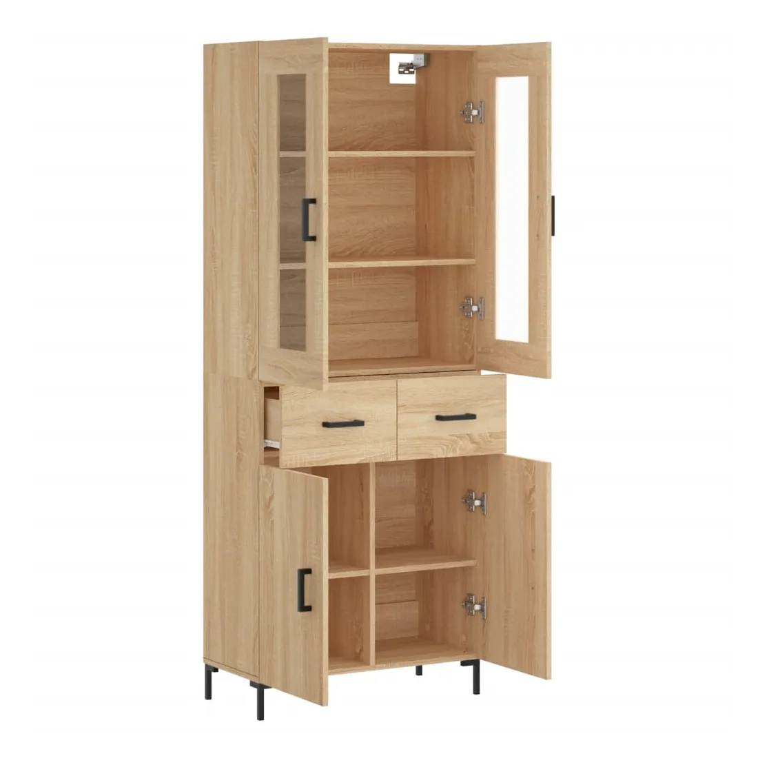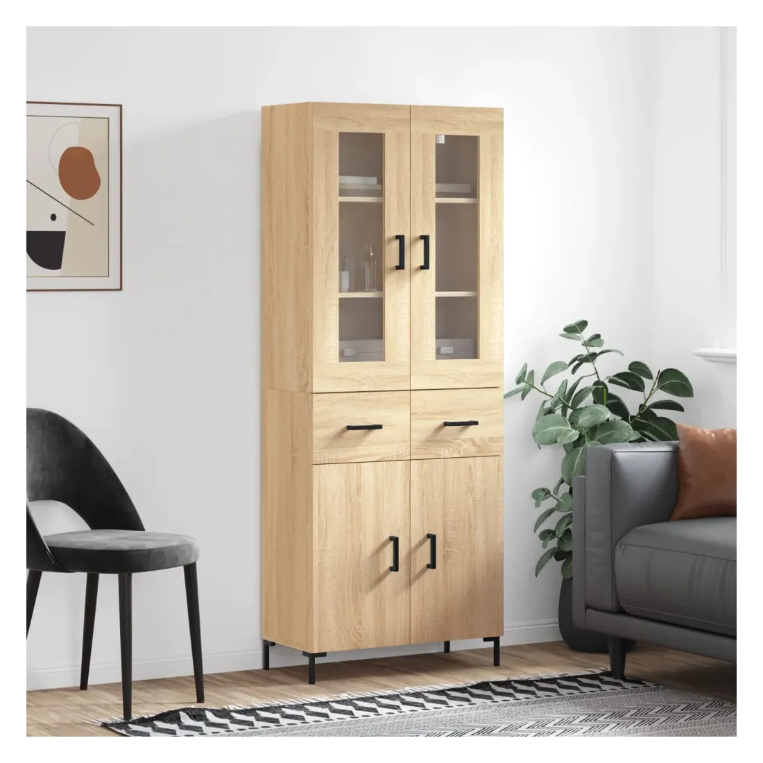 Cherchez-vous un buffet haut de gamme stylé ? Ce buffet haut ajoute un charme élégant à votre intérieur existant ! Matériau durable : le bois d'ingénierie est d'une qualité exceptionnelle avec une surface lisse et présente également résistance, stabilité et résistance à l'humidité.Grand espace de rangement : l'armoire offre un grand espace de rangement pour garder vos différents articles essentiels quotidiens bien organisés et facilement accessibles.Pieds en métal : les pieds en métal ajoutent un style calme à votre intérieur tout en assurant la stabilité. Attention :Pour éviter qu'il ne soit renversé, ce produit doit être utilisé avec le dispositif de fixation au mur fourni. Bon à savoir :Les vis et les chevilles pour l'intérieur du mur ne sont pas incluses. Nous vous conseillons de trouver et d'utiliser des vis et des chevilles adaptées spécifiquement à vos murs. Si vous n'êtes pas sûr, vous pouvez consulter un professionnel. Veuillez lire et suivre chaque étape des instructions.