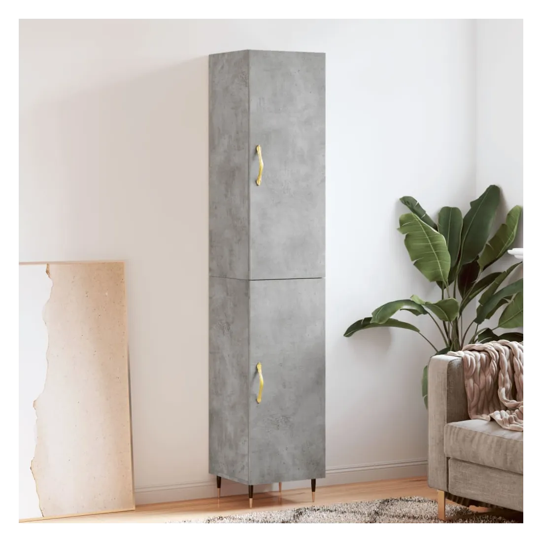 Buffet haut Gris béton 34,5x34x180 cm Bois d'ingénierie
