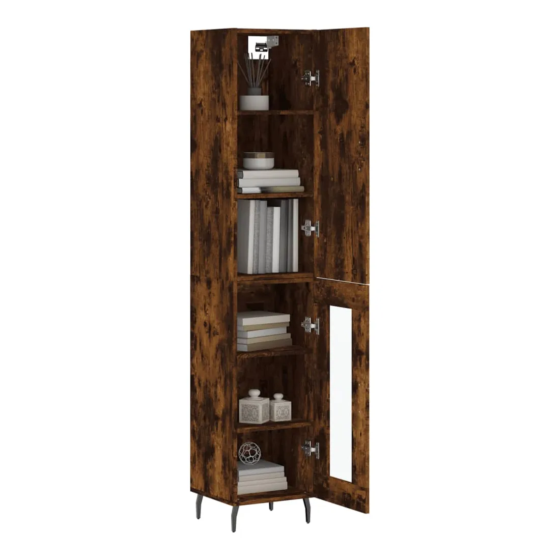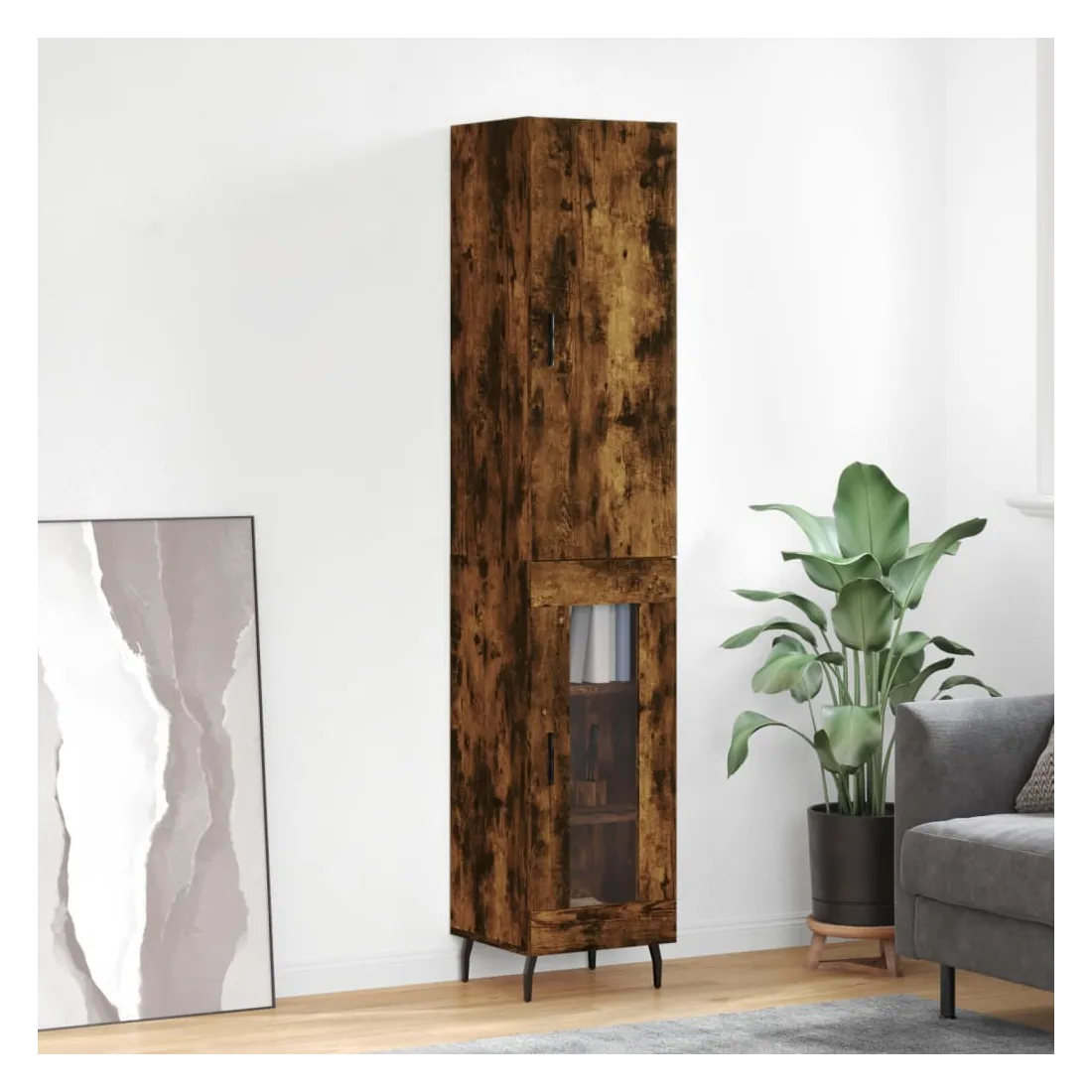 Buffet haut Chêne fumé 34,5x34x180 cm Bois d'ingénierie
