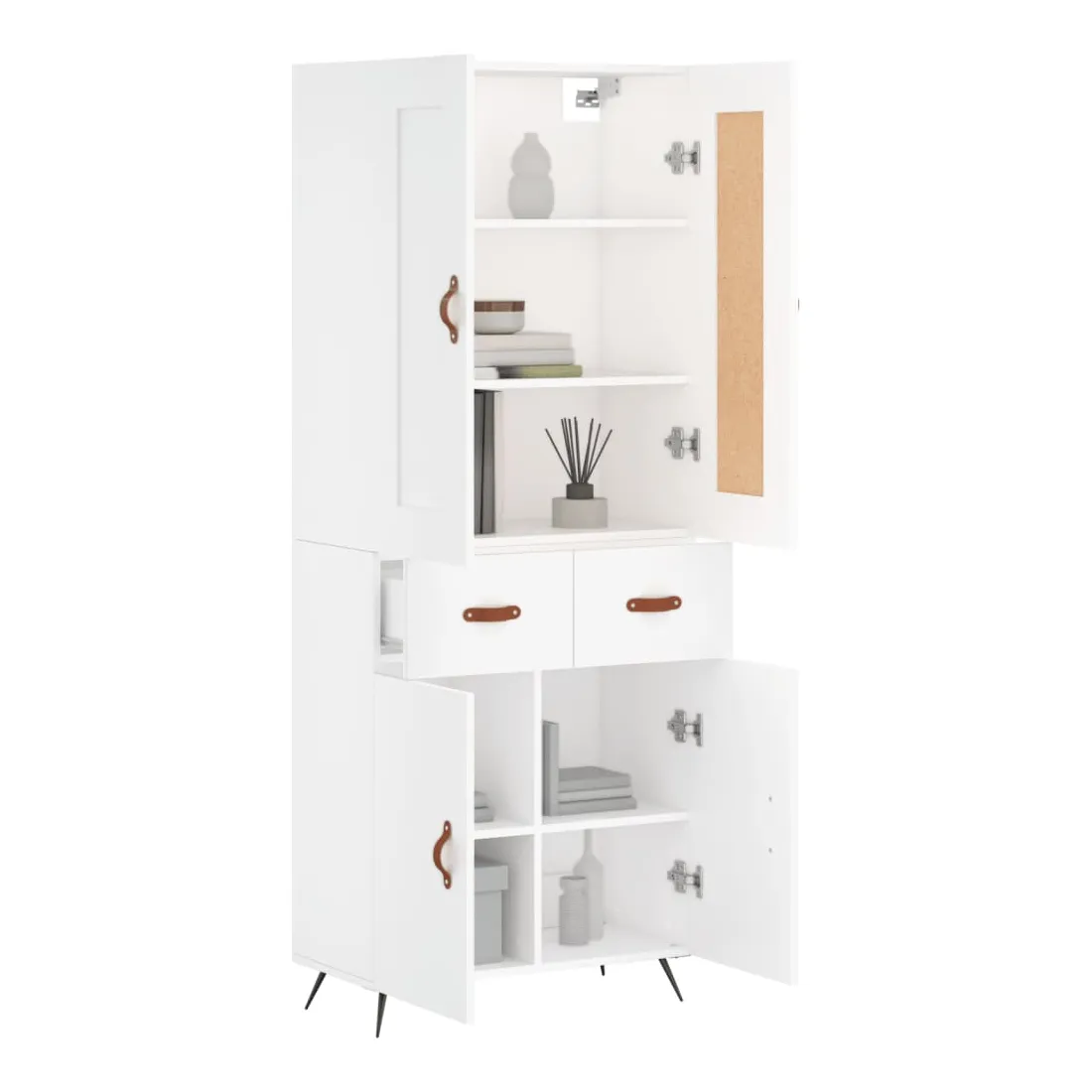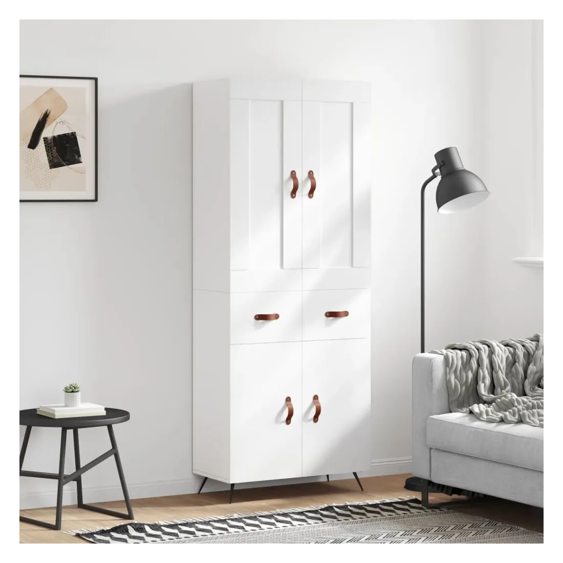 Cherchez-vous un buffet haut de gamme stylé ? Ce buffet haut ajoute un charme élégant à votre intérieur existant ! Matériau durable : le bois d'ingénierie est d'une qualité exceptionnelle avec une surface lisse et présente également résistance, stabilité et résistance à l'humidité.Grand espace de rangement : l'armoire offre un grand espace de rangement pour garder vos différents articles essentiels quotidiens bien organisés et facilement accessibles.Portes pratiques : gardez votre espace sans encombrement en cachant de petits articles essentiels derrière les portes de l'armoire de rangement.Pieds en métal : les pieds en métal ajoutent un style calme à votre intérieur tout en assurant la stabilité. Attention :Pour éviter qu'il ne soit renversé, ce produit doit être utilisé avec le dispositif de fixation au mur fourni. Bon à savoir :Les vis et les chevilles pour l'intérieur du mur ne sont pas incluses. Nous vous conseillons de trouver et d'utiliser des vis et des chevilles adaptées spécifiquement à vos murs. Si vous n'êtes pas sûr, vous pouvez consulter un professionnel. Veuillez lire et suivre chaque étape des instructions.
