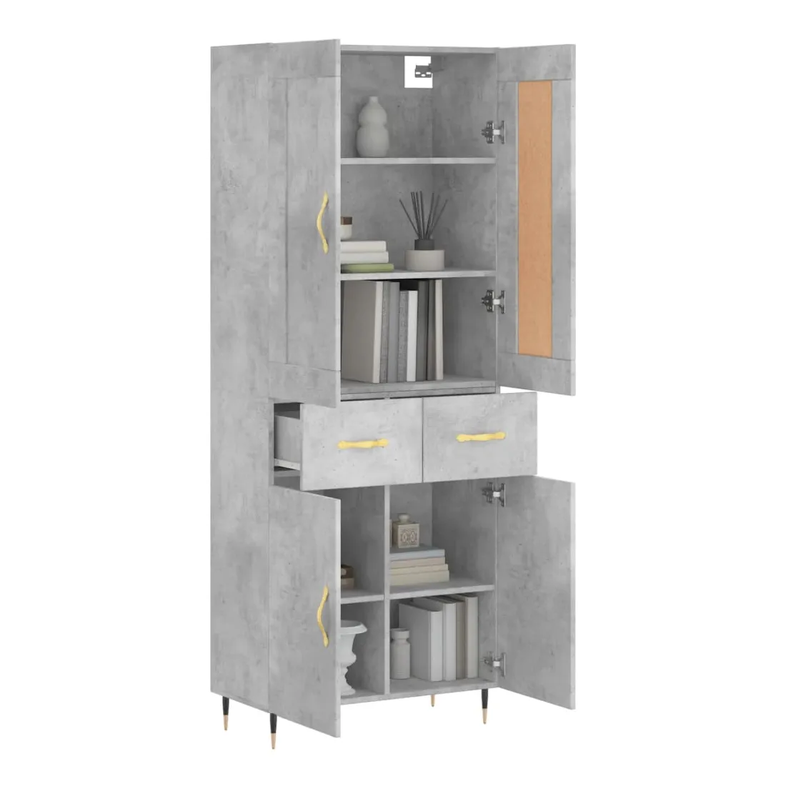 Cherchez-vous un buffet haut de gamme stylé ? Ce buffet haut ajoute un charme élégant à votre intérieur existant ! Matériau durable : le bois d'ingénierie est d'une qualité exceptionnelle avec une surface lisse et présente également résistance, stabilité et résistance à l'humidité.Grand espace de rangement : l'armoire offre un grand espace de rangement pour garder vos différents articles essentiels quotidiens bien organisés et facilement accessibles.Portes pratiques : gardez votre espace sans encombrement en cachant de petits articles essentiels derrière les portes de l'armoire de rangement.Pieds en métal : les pieds en métal ajoutent un style calme à votre intérieur tout en assurant la stabilité. Attention :Pour éviter qu'il ne soit renversé, ce produit doit être utilisé avec le dispositif de fixation au mur fourni. Bon à savoir :Les vis et les chevilles pour l'intérieur du mur ne sont pas incluses. Nous vous conseillons de trouver et d'utiliser des vis et des chevilles adaptées spécifiquement à vos murs. Si vous n'êtes pas sûr, vous pouvez consulter un professionnel. Veuillez lire et suivre chaque étape des instructions.