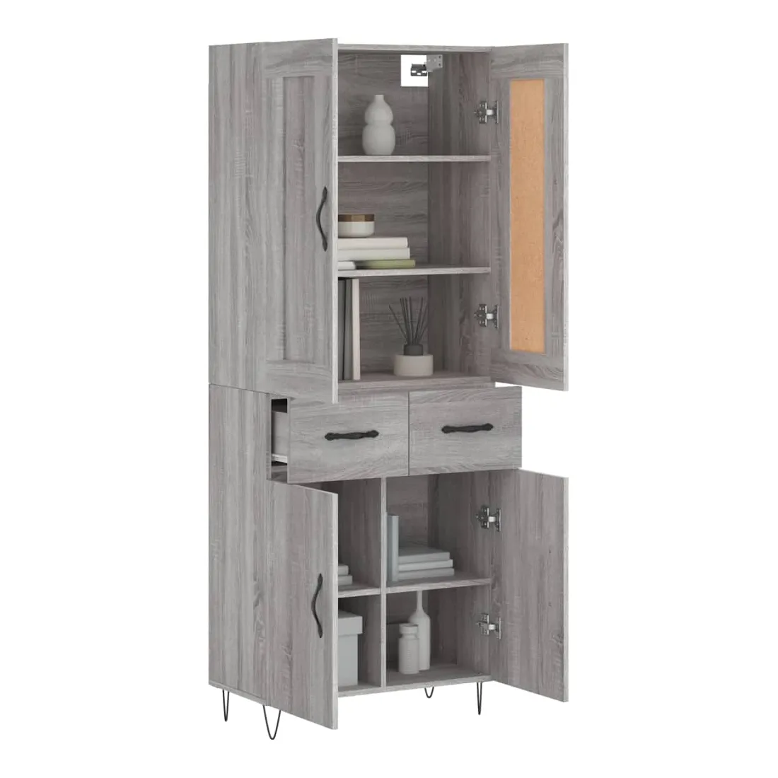 vidaXLCherchez-vous un buffet haut de gamme stylé ? Ce buffet haut ajoute un charme élégant à votre intérieur existant ! Matériau durable : le bois d'ingénierie est d'une qualité exceptionnelle avec une surface lisse et présente également résistance, stabilité et résistance à l'humidité.Grand espace de rangement : l'armoire offre un grand espace de rangement pour garder vos différents articles essentiels quotidiens bien organisés et facilement accessibles.Portes pratiques : gardez votre espace sans encombrement en cachant de petits articles essentiels derrière les portes de l'armoire de rangement.Pieds en métal : les pieds en métal ajoutent un style calme à votre intérieur tout en assurant la stabilité. Attention :Pour éviter qu'il ne soit renversé, ce produit doit être utilisé avec le dispositif de fixation au mur fourni. Bon à savoir :Les vis et les chevilles pour l'intérieur du mur ne sont pas incluses. Nous vous conseillons de trouver et d'utiliser des vis et des chevilles adaptées spécifiquement à vos murs. Si vous n'êtes pas sûr, vous pouvez consulter un professionnel. Veuillez lire et suivre chaque étape des instructions.