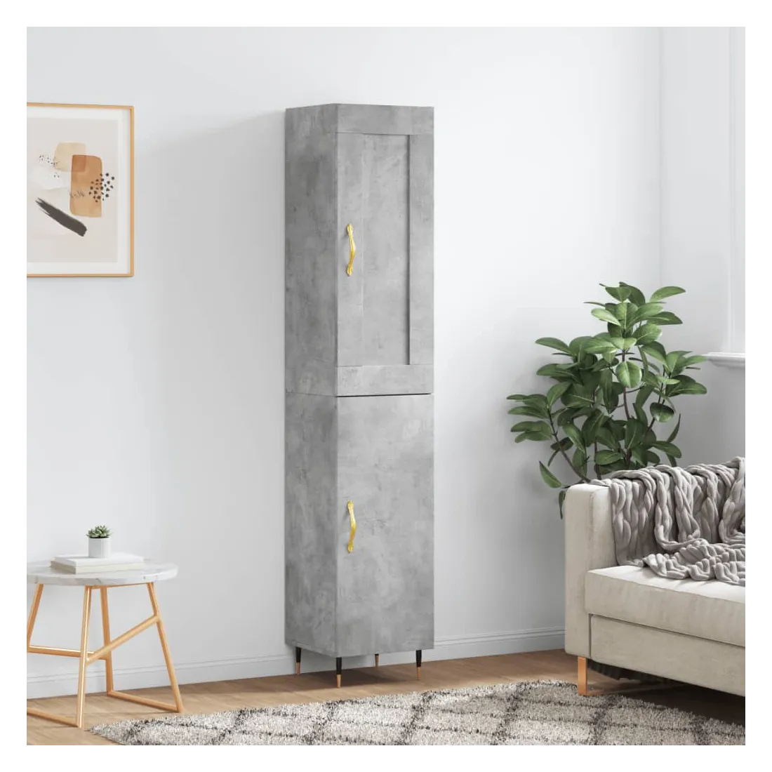 Buffet haut Gris béton 34,5x34x180 cm Bois d'ingénierie