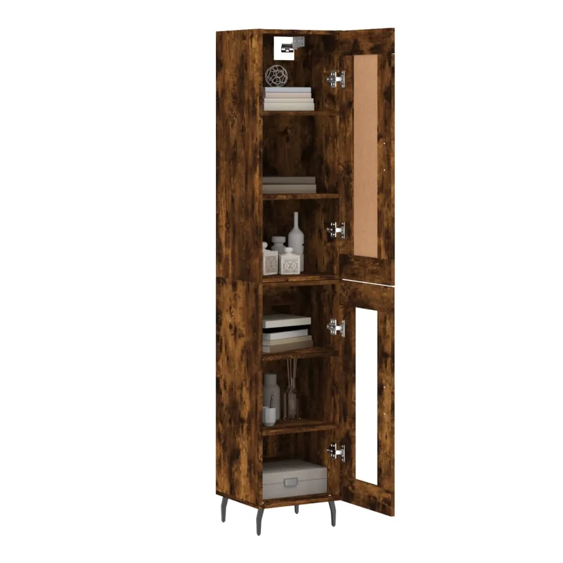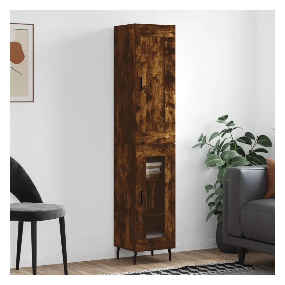 Buffet haut Chêne fumé 34,5x34x180 cm Bois d'ingénierie