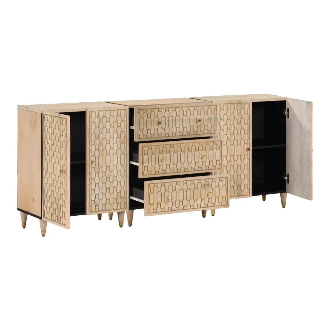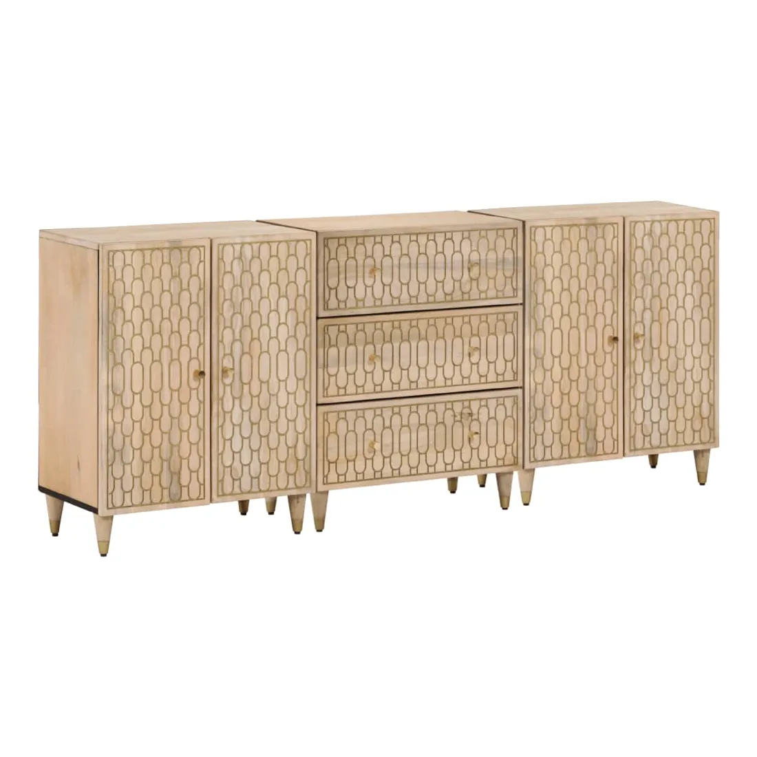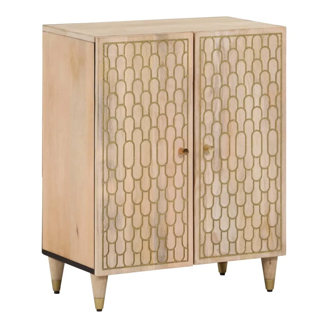 Ces armoires latérales, au look intemporel, sont conçues pour être un excellent supplément à votre maison. Bois de manguier massif : le bois de manguier massif est un bois dur tropical solide qui fait des meubles robustes. Ses beaux grains de bois rendent chaque meuble légèrement différent l'un de l'autre. Fabriquée en bois de manguier massif, le meuble est durable et stable.Grand espace de rangement : l'armoire offre un grand espace de rangement pour garder vos différents objets essentiels du quotidien bien organisés et à portée de main.Fonction d'affichage : le dessus de l'armoire de rangement est idéal pour exposer vos objets décoratifs, albums photo ou petites plantes.Style rétro : l'organisateur de maison avec motifs floraux sculptés à la main apporte le luxe d'un style rétro à votre intérieur étant le point central de votre pièce. Bon à savoir :Chaque article est unique, avec des variations de couleurs et de grains. La livraison est aléatoire, ce qui garantit l'exclusivité et l'individualité de votre produit. Attention :Pour éviter qu'il ne bascule, ce produit doit être utilisé avec le dispositif de fixation murale fourni.