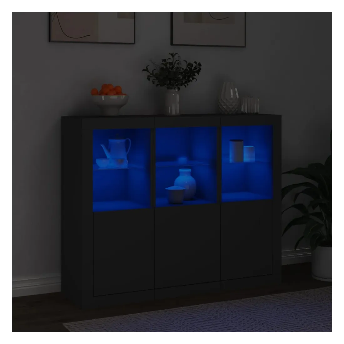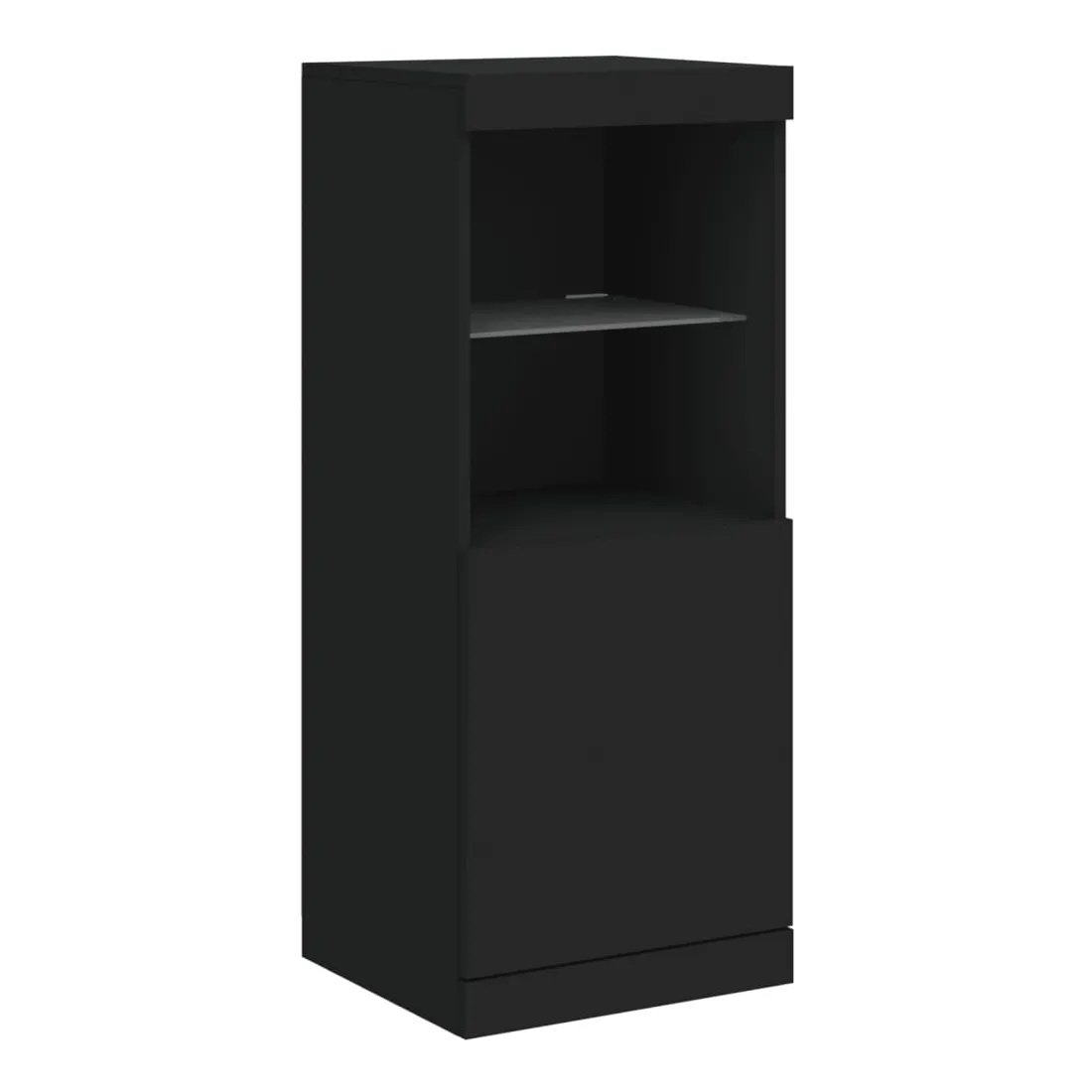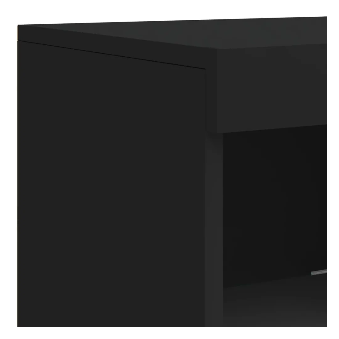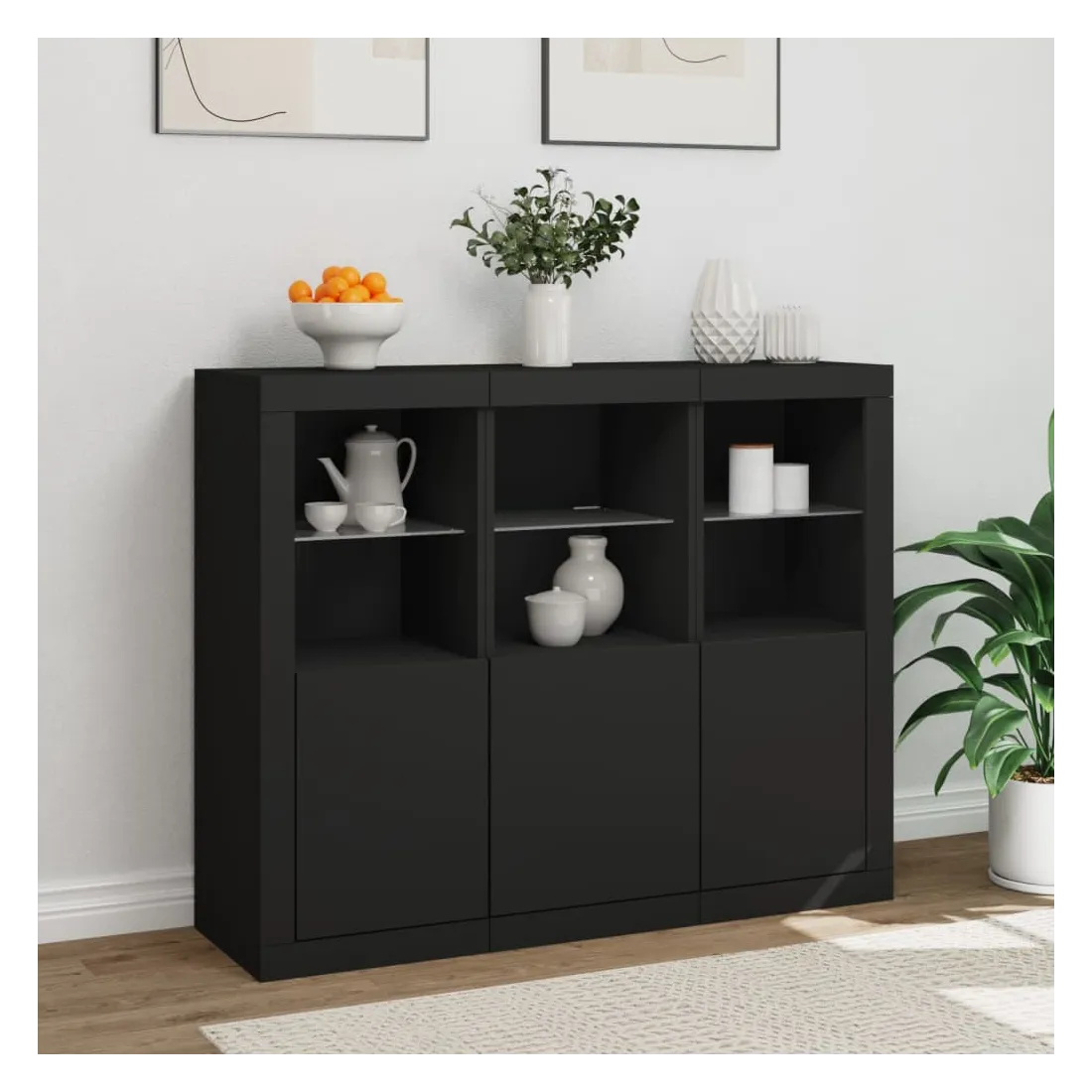 Décorez votre pièce avec ces buffets modernes à éclairage LED qui s'harmonisent facilement avec les meubles de tout style de votre maison. Matériau durable : le bois d'ingénierie est d'une qualité exceptionnelle avec une surface lisse et présente également résistance, stabilité et résistance à l'humidité.Grand espace de rangement : ces buffets offrent un grand espace de rangement pour garder vos magazines, livres, télécommandes et autres petits objets bien organisés et à portée de main.Fonction d'affichage : le dessus de ces buffets est idéal pour afficher des objets décoratifs, des cadres photo ou des plantes en pot.Lumières LED réglables : ces armoires de rangement sont équipées de lumières LED RVB, qui ont différents menus pour changer la couleur de la lumière et l'ajuster automatiquement, décorant votre maison de manière colorée et belle. Attention :Pour éviter qu'il ne soit renversé, ce produit doit être utilisé avec le dispositif de fixation au mur fourni.Bon à savoir :Ce produit est doté d'un connecteur USB qui nécessite une source d'alimentation USB de 5V certifiée (non incluse).