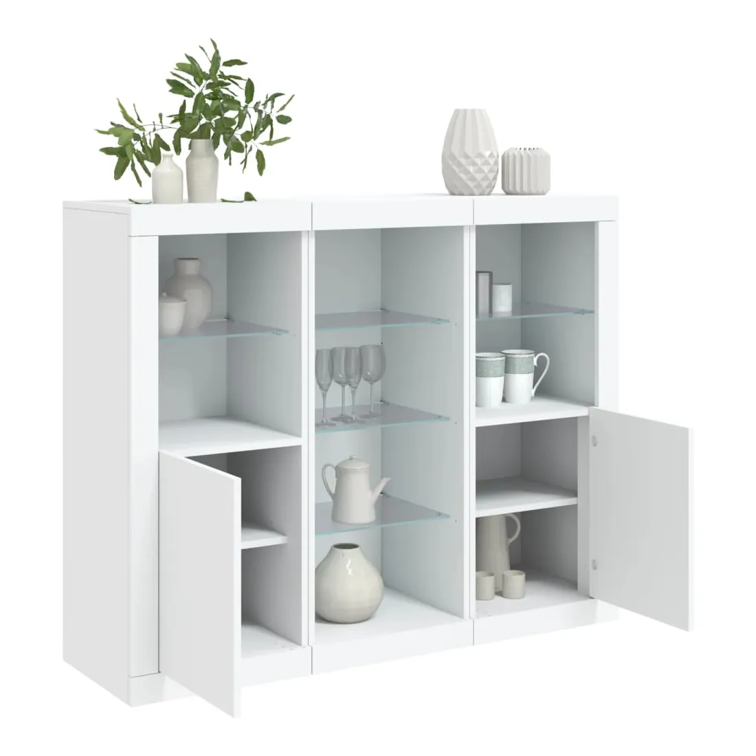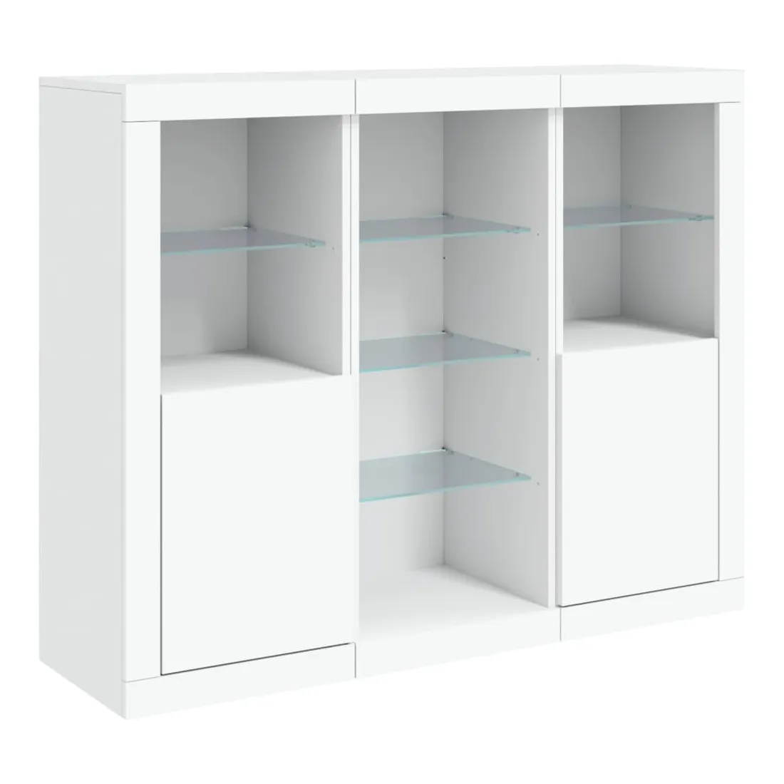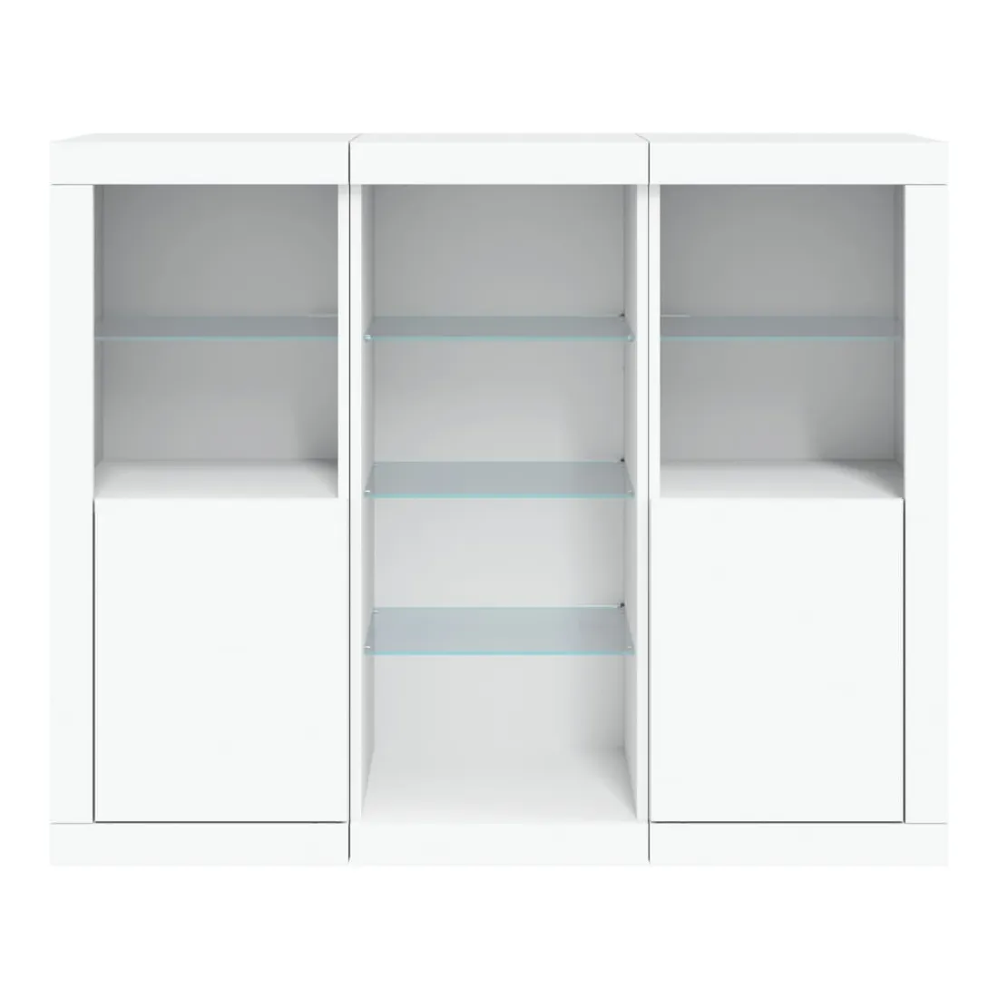 Décorez votre pièce avec ces buffets modernes à éclairage LED qui s'harmonisent facilement avec les meubles de tout style de votre maison. Matériau durable : le bois d'ingénierie est d'une qualité exceptionnelle avec une surface lisse et présente également résistance, stabilité et résistance à l'humidité.Grand espace de rangement : ces buffets offrent un grand espace de rangement pour garder vos magazines, livres, télécommandes et autres petits objets bien organisés et à portée de main.Fonction d'affichage : le dessus de ces buffets est idéal pour afficher des objets décoratifs, des cadres photo ou des plantes en pot.Lumières LED réglables : ces armoires de rangement sont équipées de lumières LED RVB, qui ont différents menus pour changer la couleur de la lumière et l'ajuster automatiquement, décorant votre maison de manière colorée et belle. Attention :Pour éviter qu'il ne soit renversé, ce produit doit être utilisé avec le dispositif de fixation au mur fourni.Bon à savoir :Ce produit est doté d'un connecteur USB qui nécessite une source d'alimentation USB de 5V certifiée (non incluse).