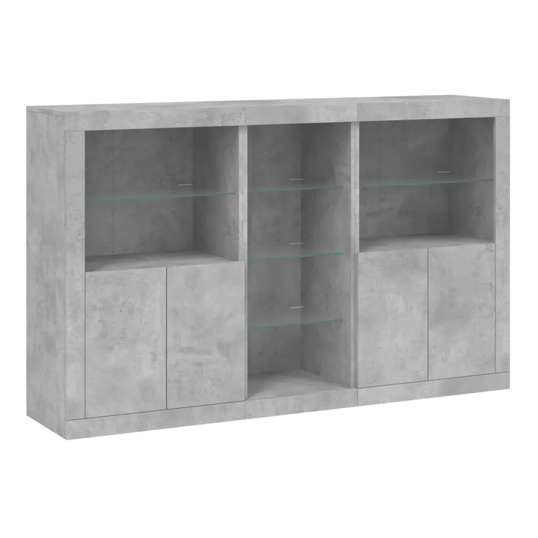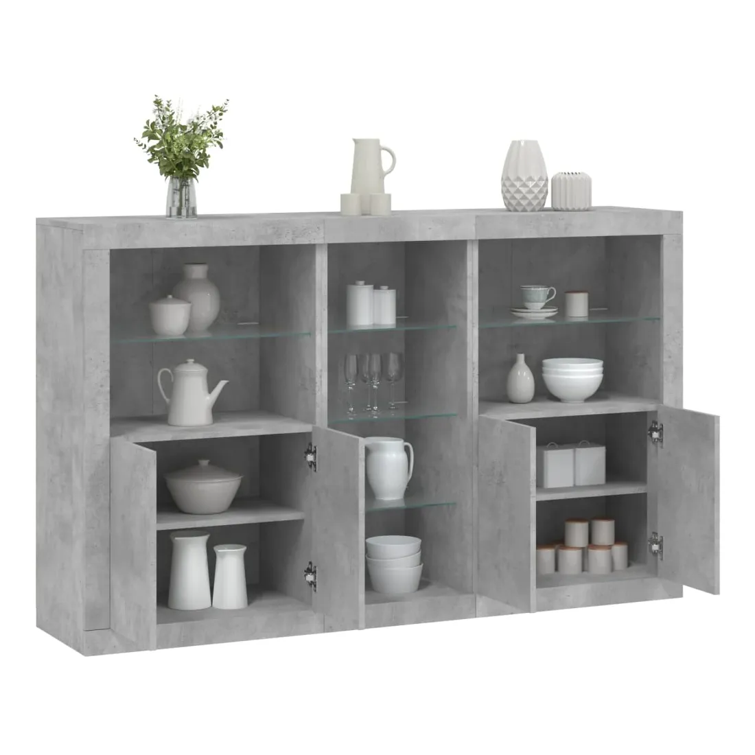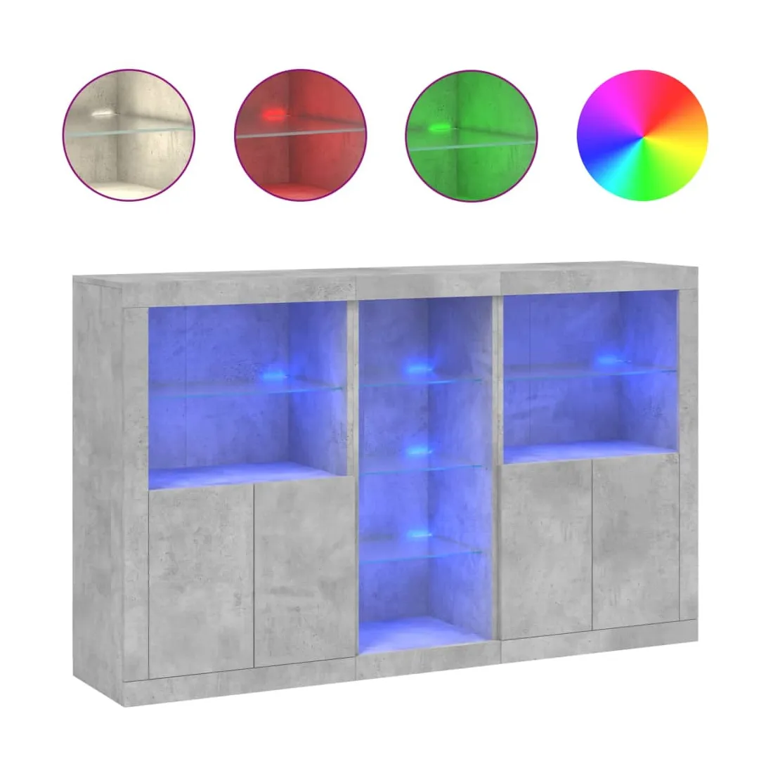 Décorez votre pièce avec ce buffet moderne avec éclairage LED, il s'harmonise facilement avec les meubles de tout style de votre maison. Matériau durable : le bois d'ingénierie est d'une qualité exceptionnelle avec une surface lisse et présente également résistance, stabilité et résistance à l'humidité.Lumières LED RVB : le buffet est équipé de lumières LED RVB vibrantes. Avec divers menus personnalisables, vous pouvez changer sans effort la couleur des lumières et même les régler automatiquement. Ces lumières LED renforcent non seulement l'aspect contemporain du buffet, mais aussi son attrait pour la mode.Grand espace de rangement : l'armoire de rangement offre beaucoup d'espace pour garder vos objets du quotidien bien rangés et facilement accessibles.Fonction d'exposition : la partie supérieure robuste de l'armoire d'entrée est idéale pour exposer des objets décoratifs, des cadres photo ou des plantes en pot.Porte pratiques : gardez vos essentiels à l'abri de la poussière en les cachant derrière les portes de l'armoire latérale. Bon à savoir :Ce produit est doté d'un connecteur USB qui nécessite une source d'alimentation USB de 5V certifiée (non incluse). Attention :Pour éviter qu'il ne soit renversé, ce produit doit être utilisé avec le dispositif de fixation au mur fourni.