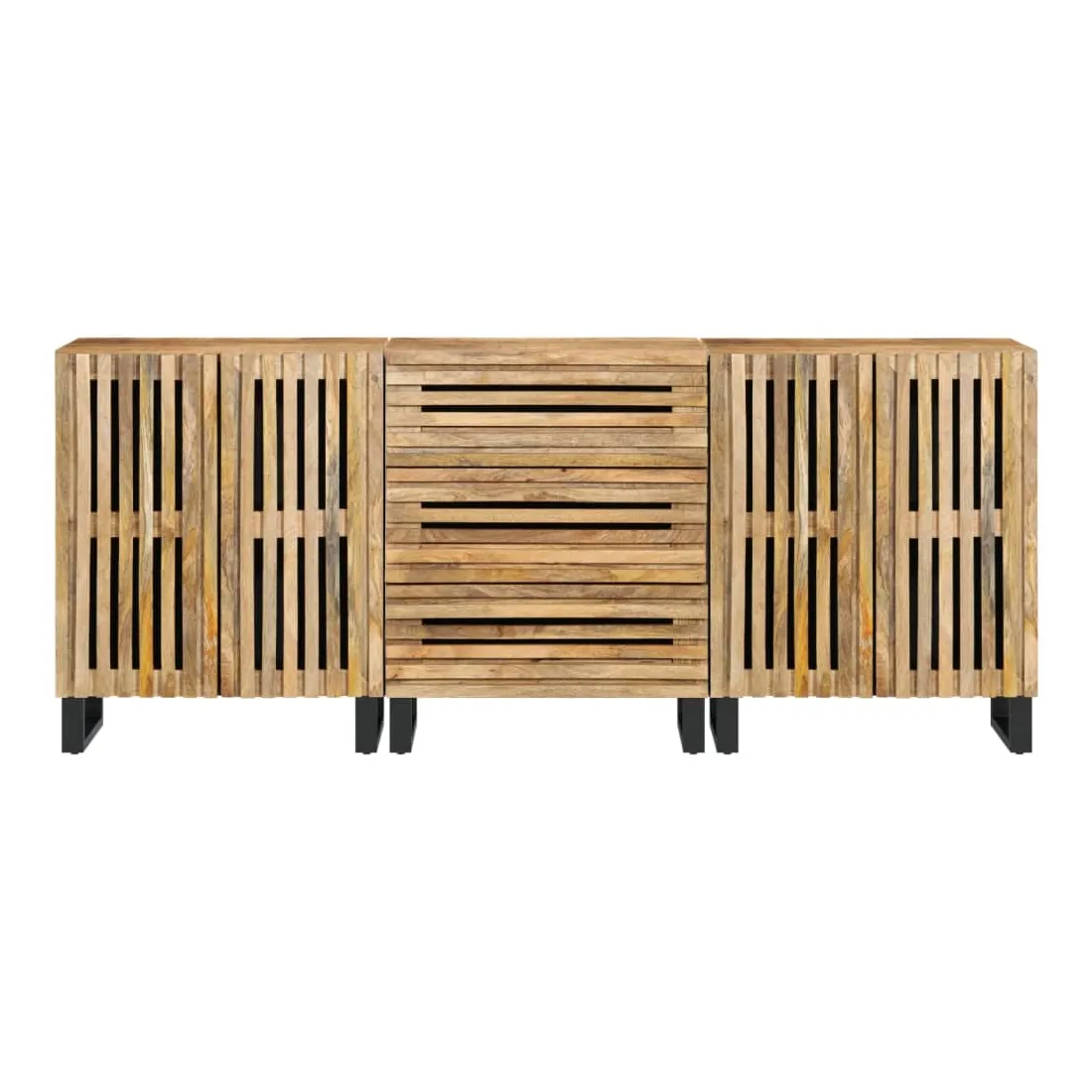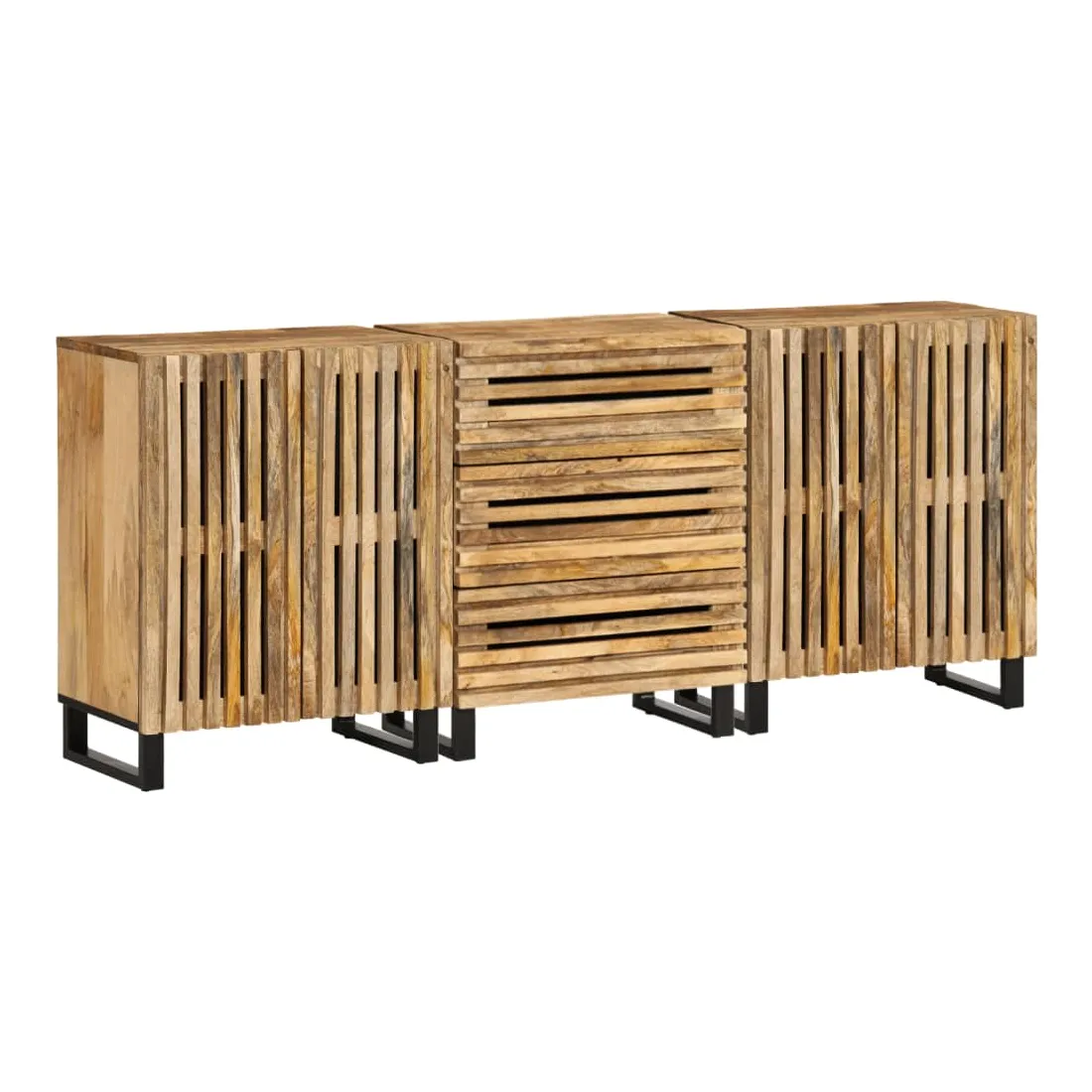 Ces buffets robustes de style industriel constituent un supplément intemporel à votre salon ou à votre chambre à coucher. Cadre robuste et stable : l'acier est solide, stable et durable, ce qui en fait un choix idéal pour un large éventail d'applications, de la fabrication de meubles à la construction.Matériau durable : le bois de manguier massif est un bois dur tropical solide qui fait des meubles robustes. Ses beaux grains de bois rendent chaque meuble légèrement différent l'un de l'autre.Grand espace de rangement : le buffet offre un grand espace de rangement pour garder vos différents articles essentiels quotidiens bien organisés et facilement accessibles.Facile à nettoyer : l'armoire est facile à nettoyer à l'aide d'un chiffon humide et nécessite peu d'entretien. Attention :Pour éviter qu'il ne bascule, ce produit doit être utilisé avec le dispositif de fixation murale fourni. Bon à savoir :Chaque article est unique, avec des variations de couleurs et de grains. La livraison est aléatoire, ce qui garantit l'exclusivité et l'individualité de votre produit.