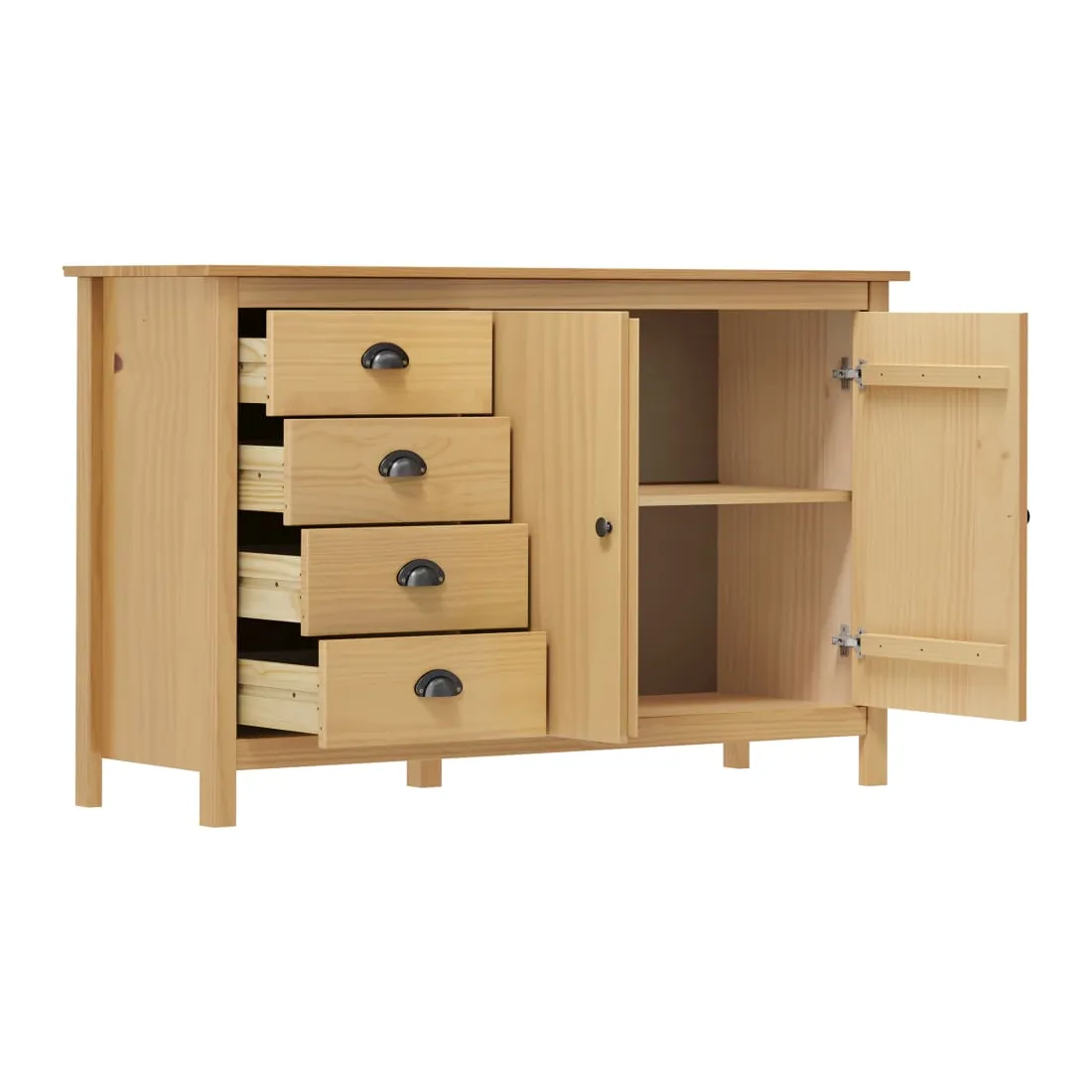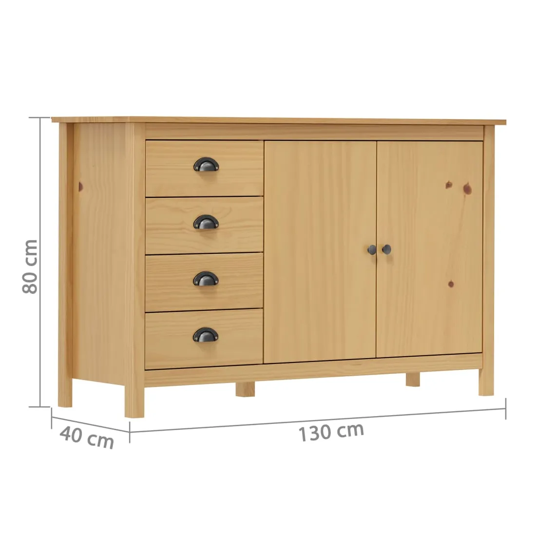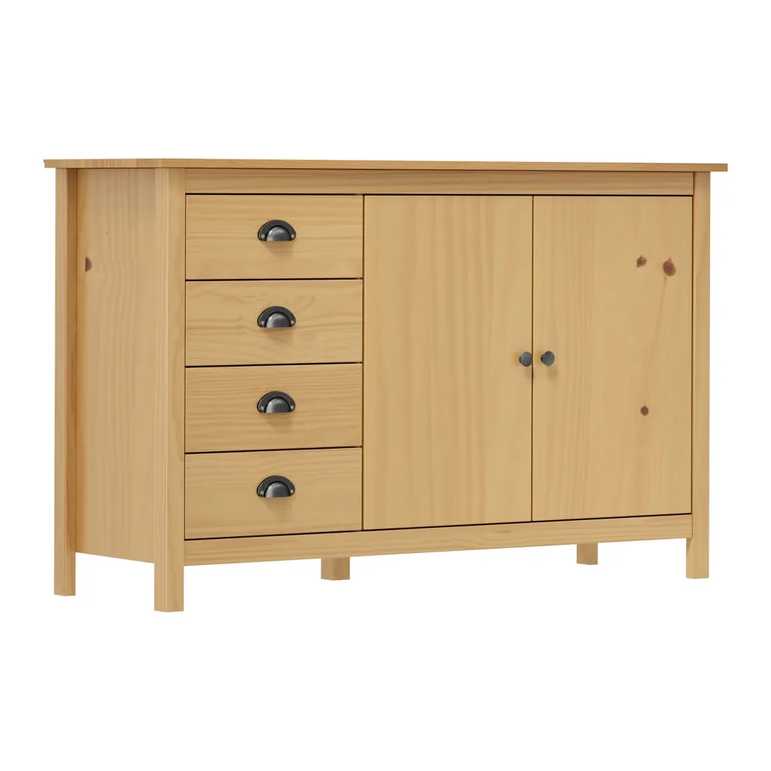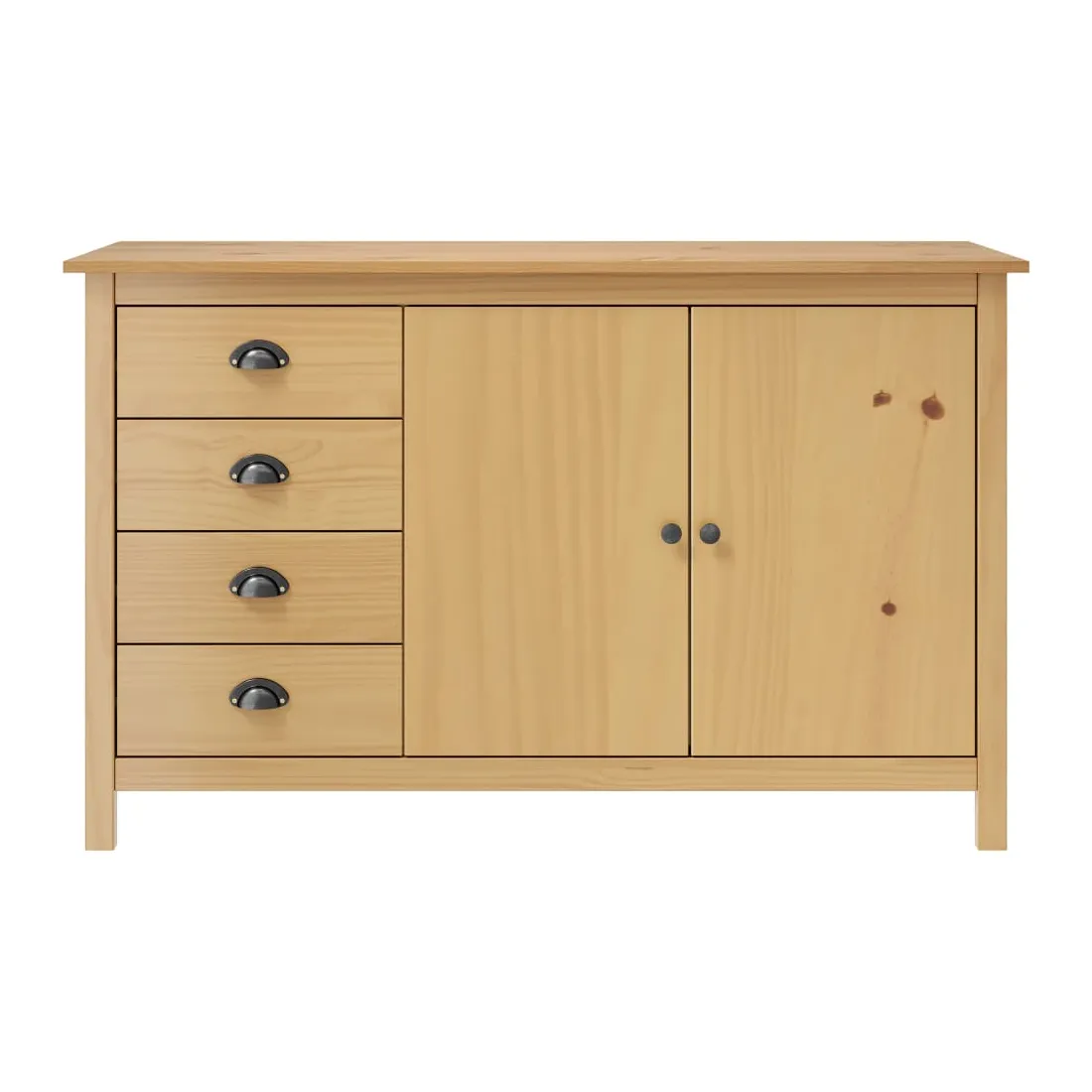 Gardez tout organisé dans votre intérieur avec notre élégant buffet en bois. Cette armoire latérale est en bois de pin massif, ce qui la rend stable et robuste. Grâce à ses 2 portes et ses 4 tiroirs spacieux avec poignées, l’armoire à tiroirs offre beaucoup d’espace de rangement pour garder toutes sortes d’articles dans l’ordre et à portée de main.