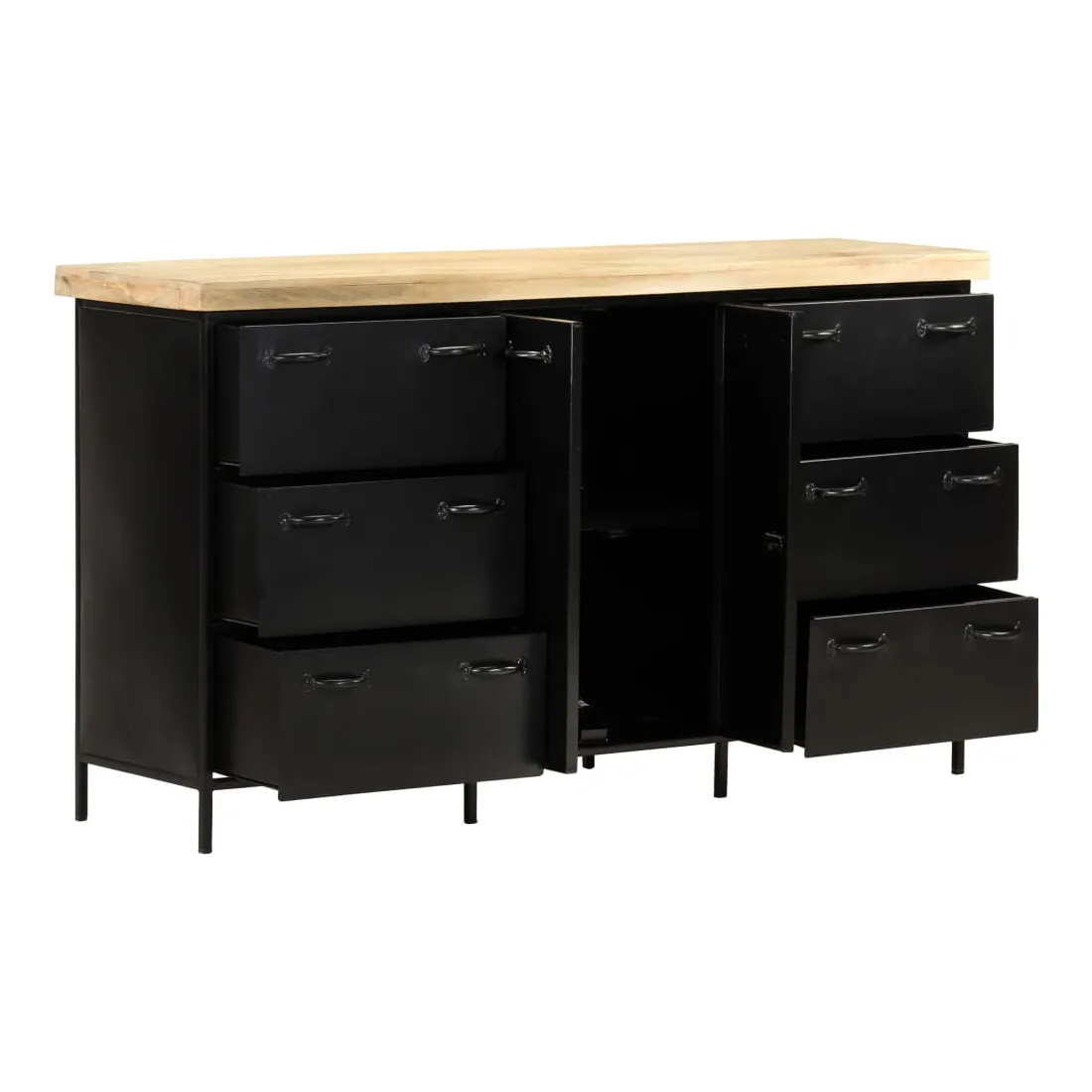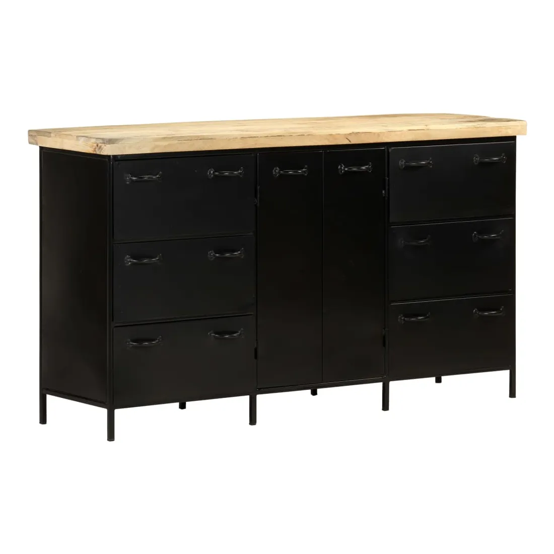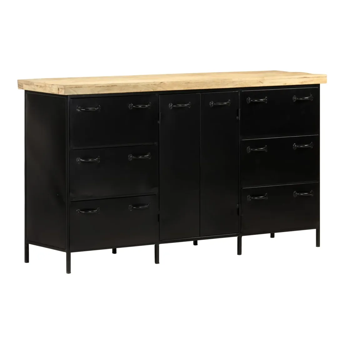 vidaXLSi vous recherchez une touche simple de charme rustique et industriel à ajouter à votre décoration intérieure, ce buffet en bois sera parfait. L'armoire latérale est faite de bois de manguier brut, un bois dur tropical avec la force de soutenir le poids. Il résiste également à l’usure du temps, ce qui le rend stable et durable. Le cadre en acier enduit de poudre ajoute également une stabilité supplémentaire. Cette armoire comprend 6 tiroirs et 2 portes offrant un vaste espace de rangement. De plus, le dessus en bois robuste est idéal pour exposer des objets décoratifs tels que des cadres photo, des plantes en pot, des vases, etc. Remarque importante : les couleurs et les grains peuvent varier d'une pièce à l'autre, rendant chaque pièce unique. La livraison est aléatoire, ce qui garantit l'exclusivité et l'individualité de votre produit.