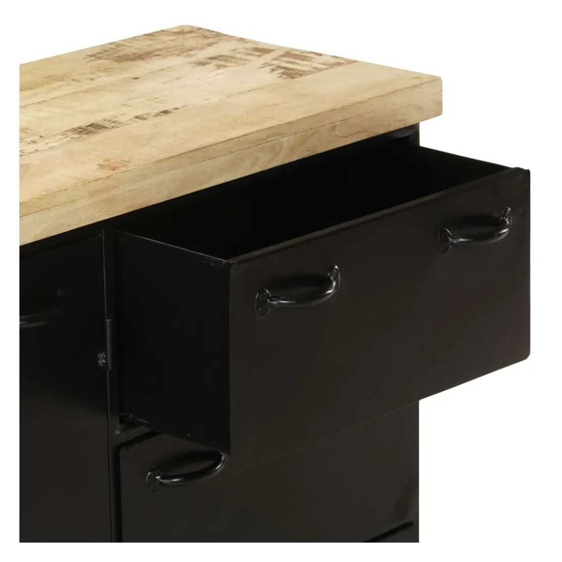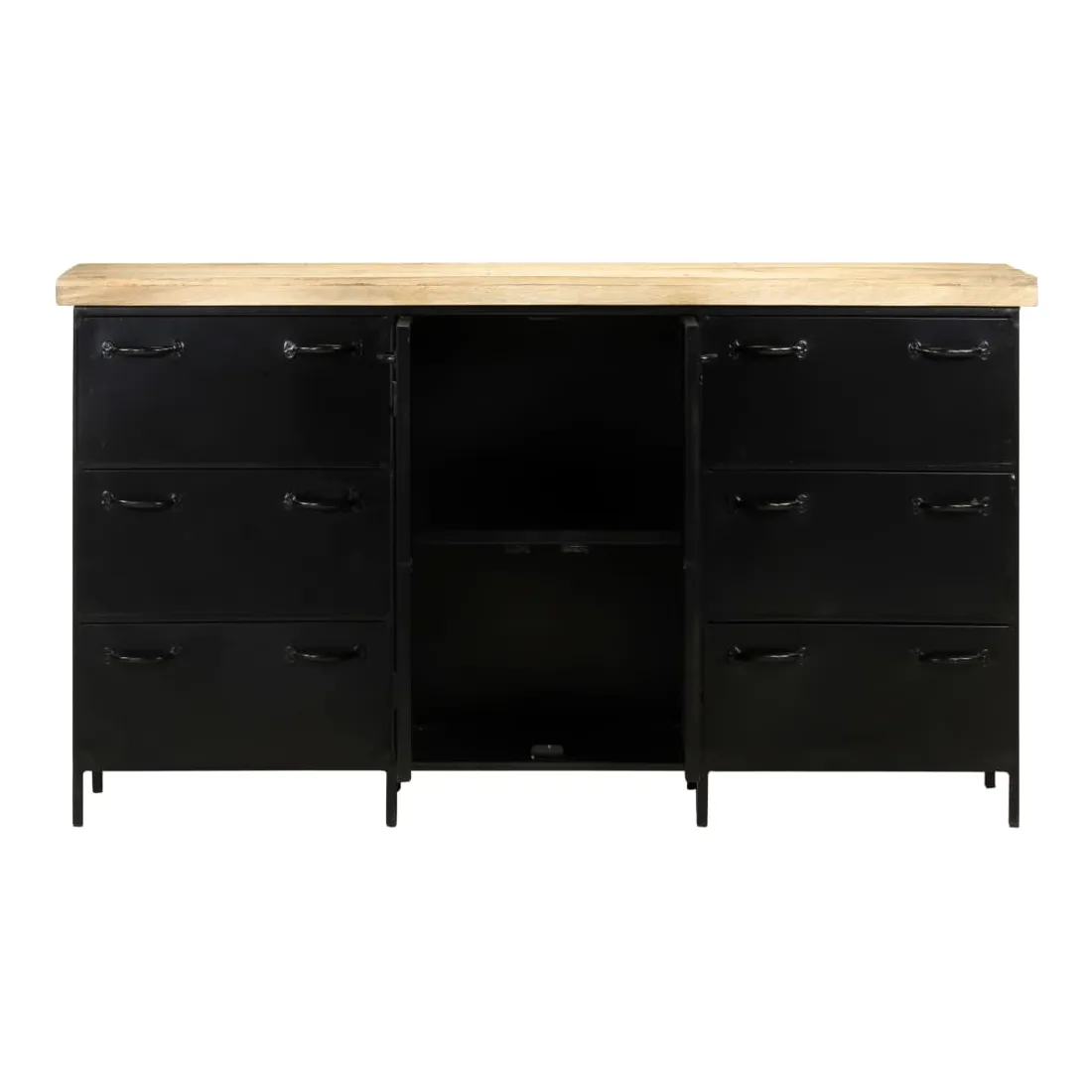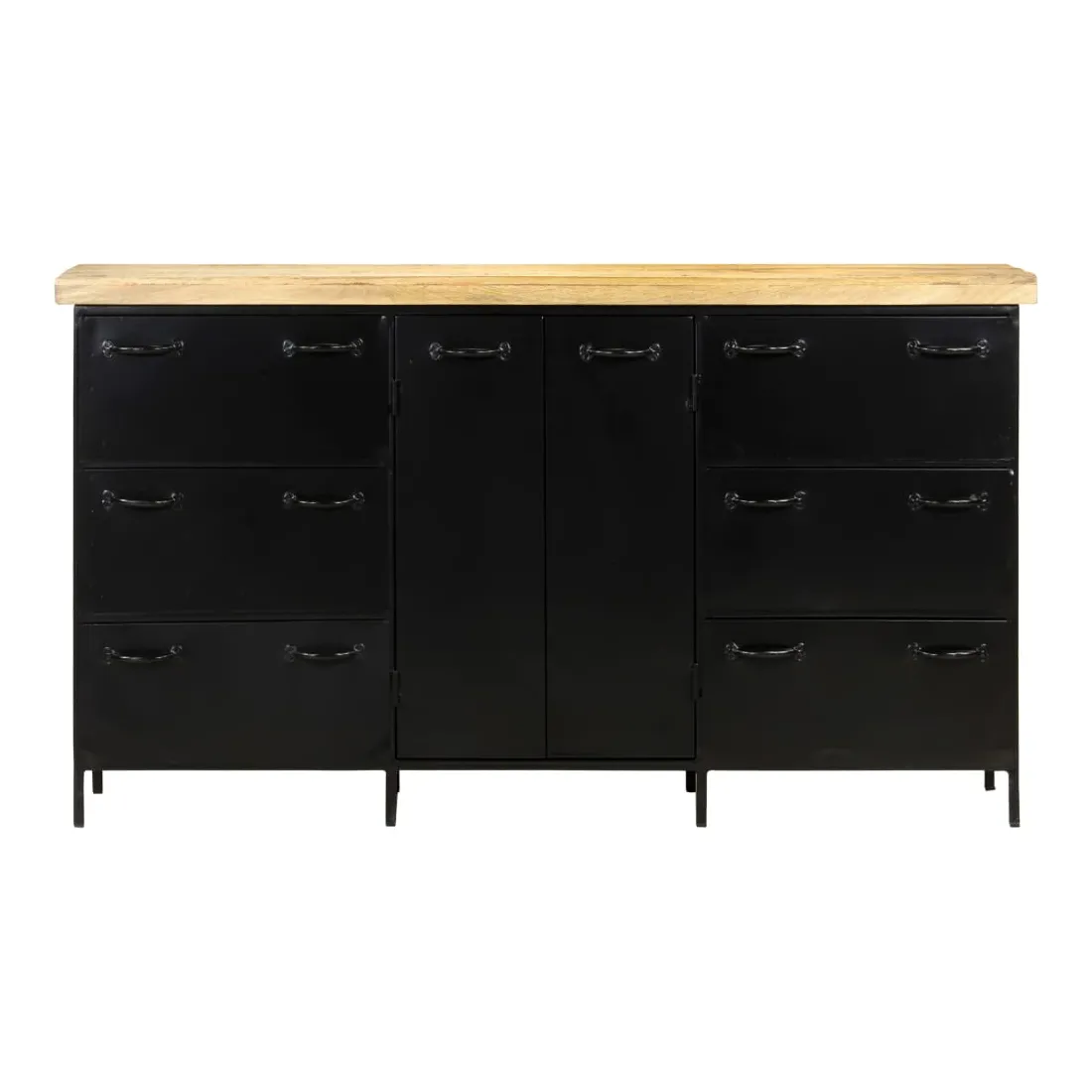 vidaXLSi vous recherchez une touche simple de charme rustique et industriel à ajouter à votre décoration intérieure, ce buffet en bois sera parfait. L'armoire latérale est faite de bois de manguier brut, un bois dur tropical avec la force de soutenir le poids. Il résiste également à l’usure du temps, ce qui le rend stable et durable. Le cadre en acier enduit de poudre ajoute également une stabilité supplémentaire. Cette armoire comprend 6 tiroirs et 2 portes offrant un vaste espace de rangement. De plus, le dessus en bois robuste est idéal pour exposer des objets décoratifs tels que des cadres photo, des plantes en pot, des vases, etc. Remarque importante : les couleurs et les grains peuvent varier d'une pièce à l'autre, rendant chaque pièce unique. La livraison est aléatoire, ce qui garantit l'exclusivité et l'individualité de votre produit.
