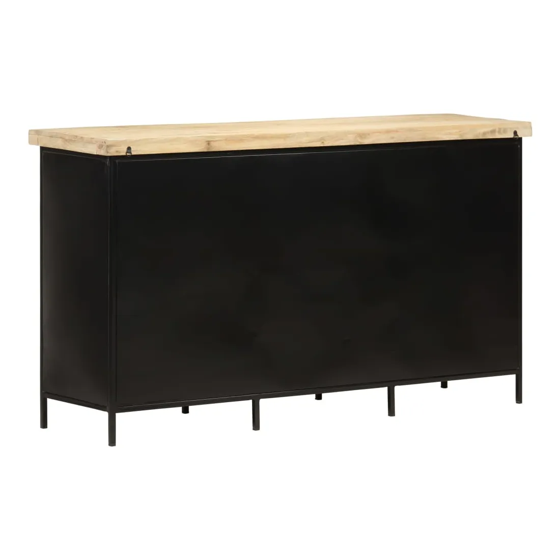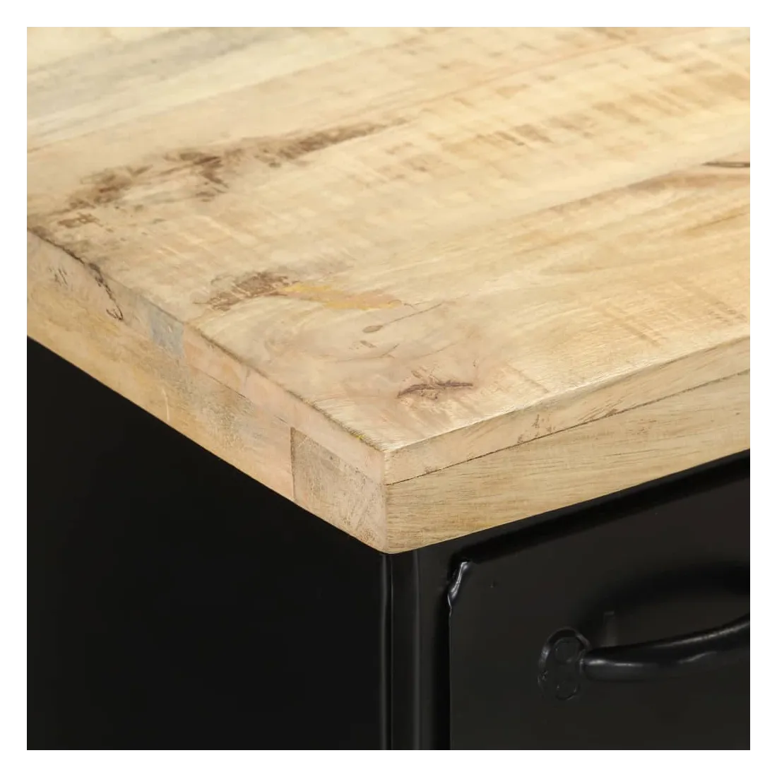 - Matériau : bois de manguier brut avec finition naturelle, acier enduit de poudre