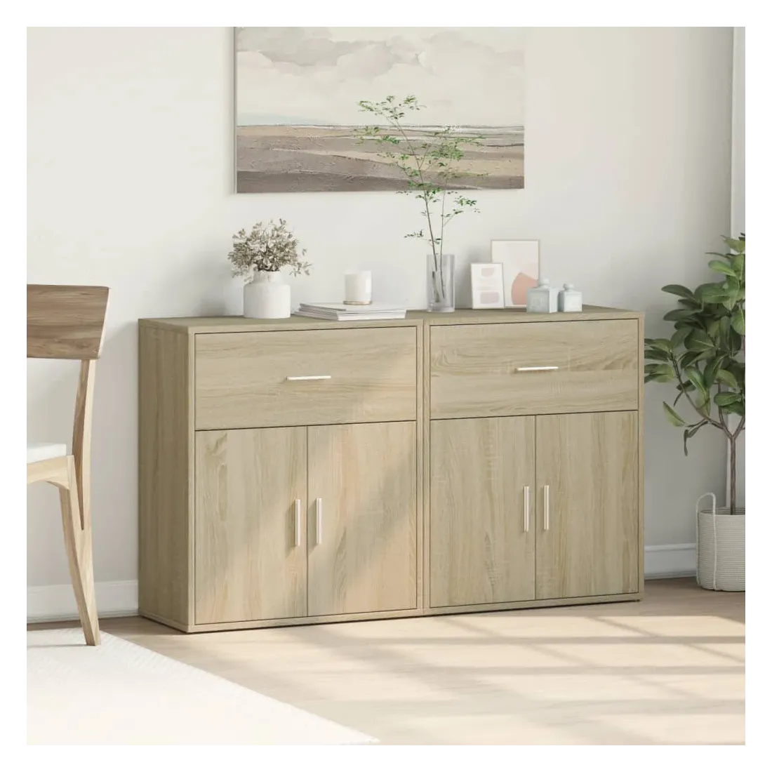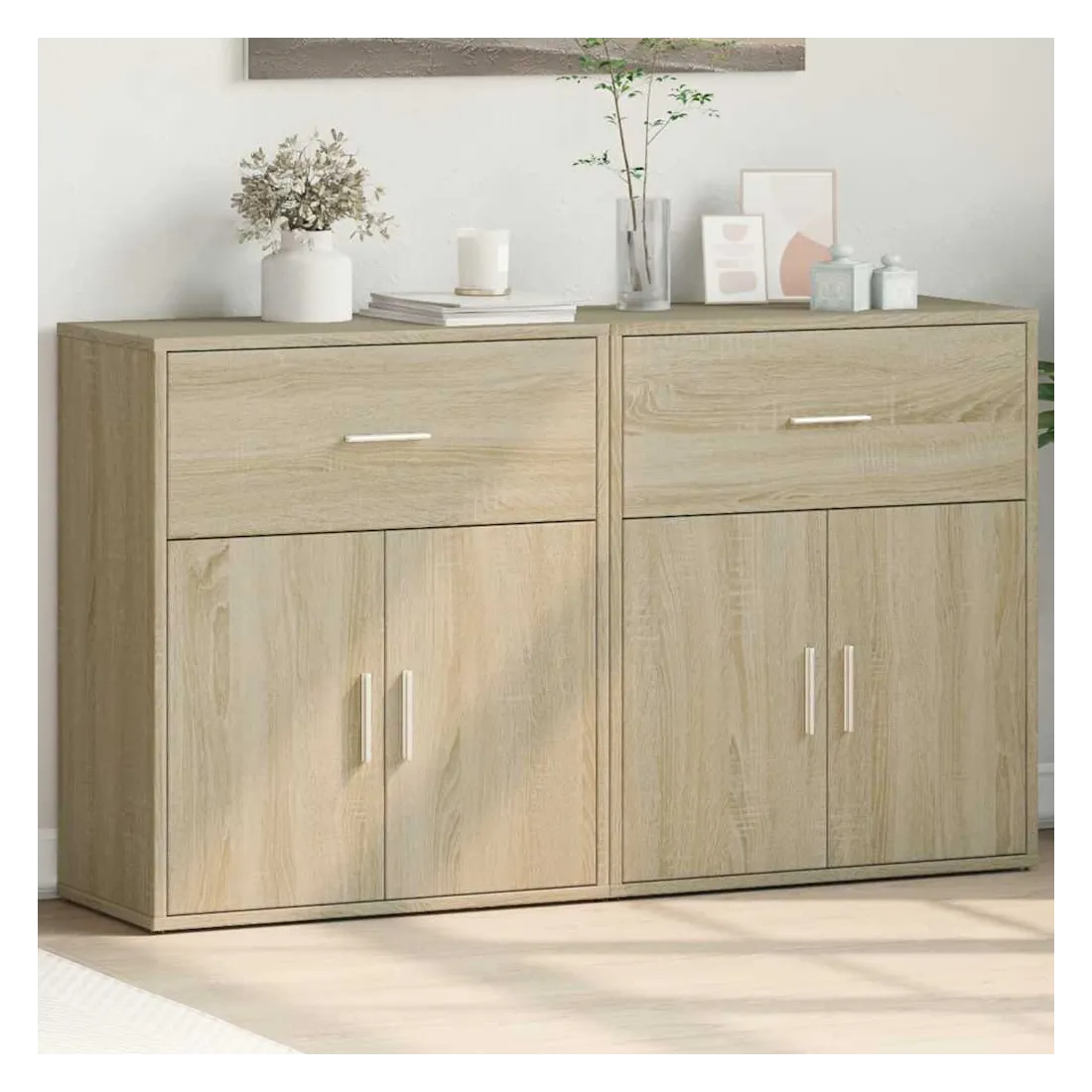 Ces buffets robustes sont conçus pour être un point de mire de votre pièce avec un design tendance mais pratique. Matériau durable : le bois d'ingénierie est d'une qualité exceptionnelle avec une surface lisse et présente également résistance, stabilité et résistance à l'humidité. Fabriquée en bois d'ingénierie, le meuble de rangement est facile à nettoyer avec un chiffon humide.Grand espace de rangement : ce buffet offre un espace de rangement pratique pour garder vos magazines, livres, télécommandes et autres petits objets bien organisés et à portée de main.Large application : le dessus de ce buffet offre plus d'espace pour placer des objets, adapté aux téléphones portables, livres, lampes, etc. Attention :Pour éviter qu'il ne bascule, ce produit doit être utilisé avec le dispositif de fixation murale (non fourni).