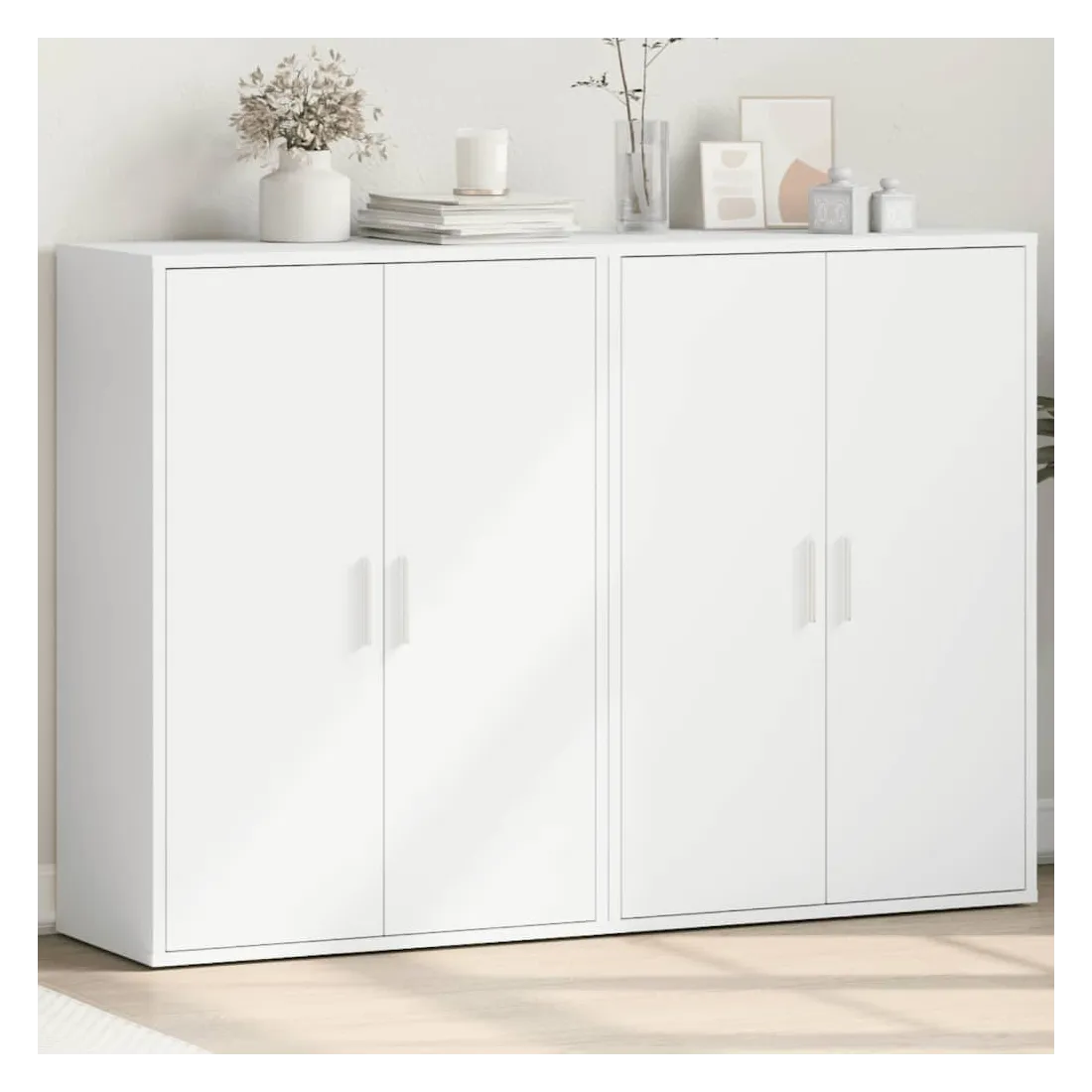 Ces buffets robustes sont conçus pour être un point de mire de votre pièce avec un design tendance mais pratique. Matériau durable : le bois d'ingénierie est d'une qualité exceptionnelle avec une surface lisse et présente également résistance, stabilité et résistance à l'humidité. Fabriquée en bois d'ingénierie, le meuble de rangement est facile à nettoyer avec un chiffon humide.Grand espace de rangement : ce buffet offre un espace de rangement pratique pour garder vos magazines, livres, télécommandes et autres petits objets bien organisés et à portée de main.Large application : le dessus de ce buffet offre plus d'espace pour placer des objets, adapté aux téléphones portables, livres, lampes, etc. Attention :Pour éviter qu'il ne bascule, ce produit doit être utilisé avec le dispositif de fixation murale (non fourni).