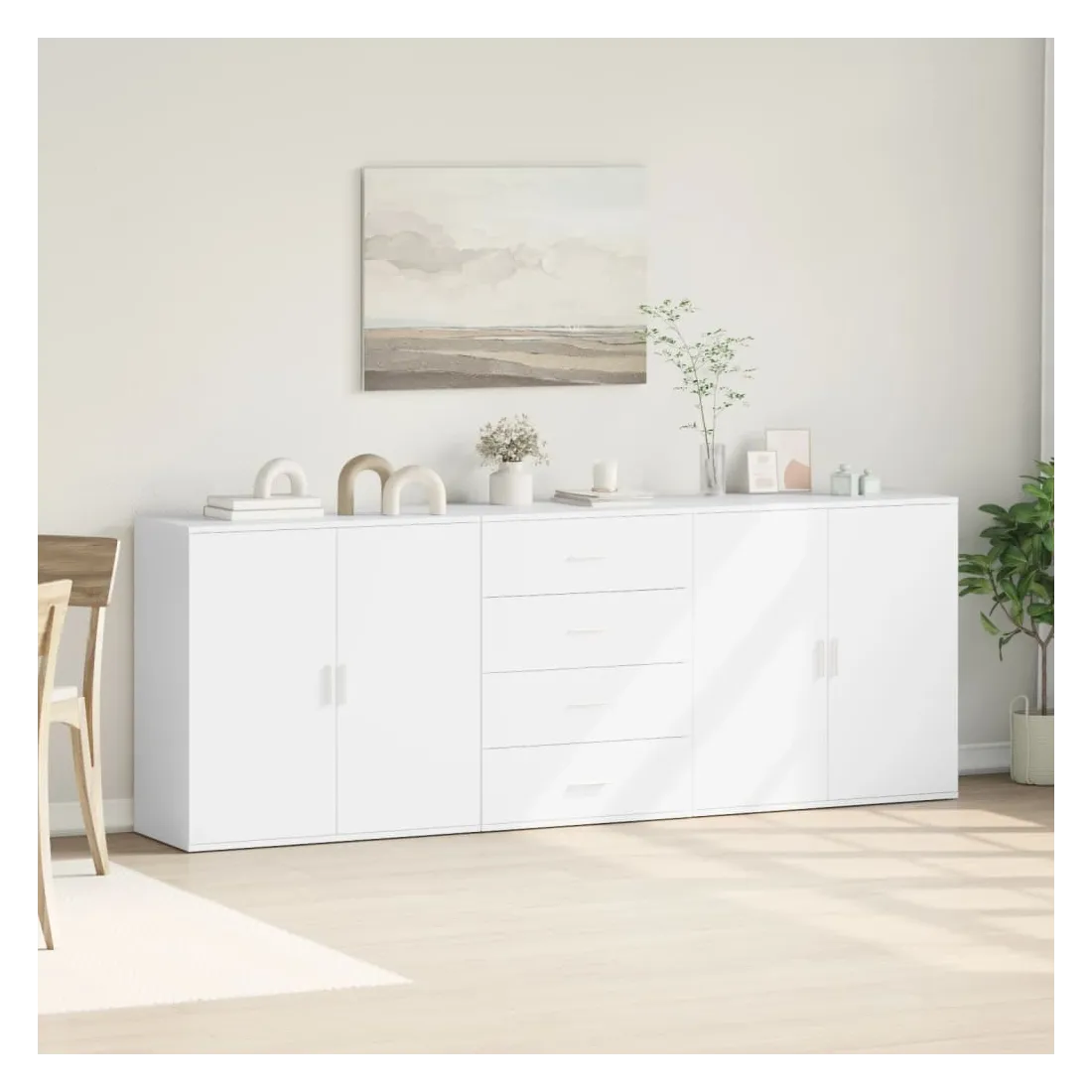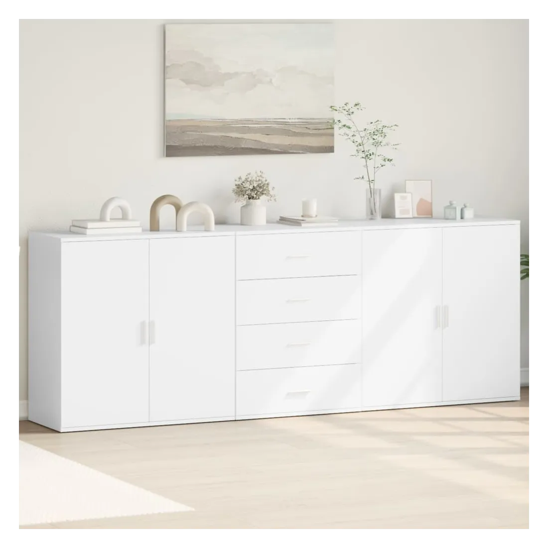 Ces buffets robustes sont conçus pour être un point de mire de votre pièce avec un design tendance mais pratique. Matériau durable : le bois d'ingénierie est d'une qualité exceptionnelle avec une surface lisse et présente également résistance, stabilité et résistance à l'humidité. Fabriquée en bois d'ingénierie, le meuble de rangement est facile à nettoyer avec un chiffon humide.Grand espace de rangement : ce buffet offre un espace de rangement pratique pour garder vos magazines, livres, télécommandes et autres petits objets bien organisés et à portée de main.Large application : le dessus de ce buffet offre plus d'espace pour placer des objets, adapté aux téléphones portables, livres, lampes, etc. Attention :Pour éviter qu'il ne bascule, ce produit doit être utilisé avec le dispositif de fixation murale (non fourni).