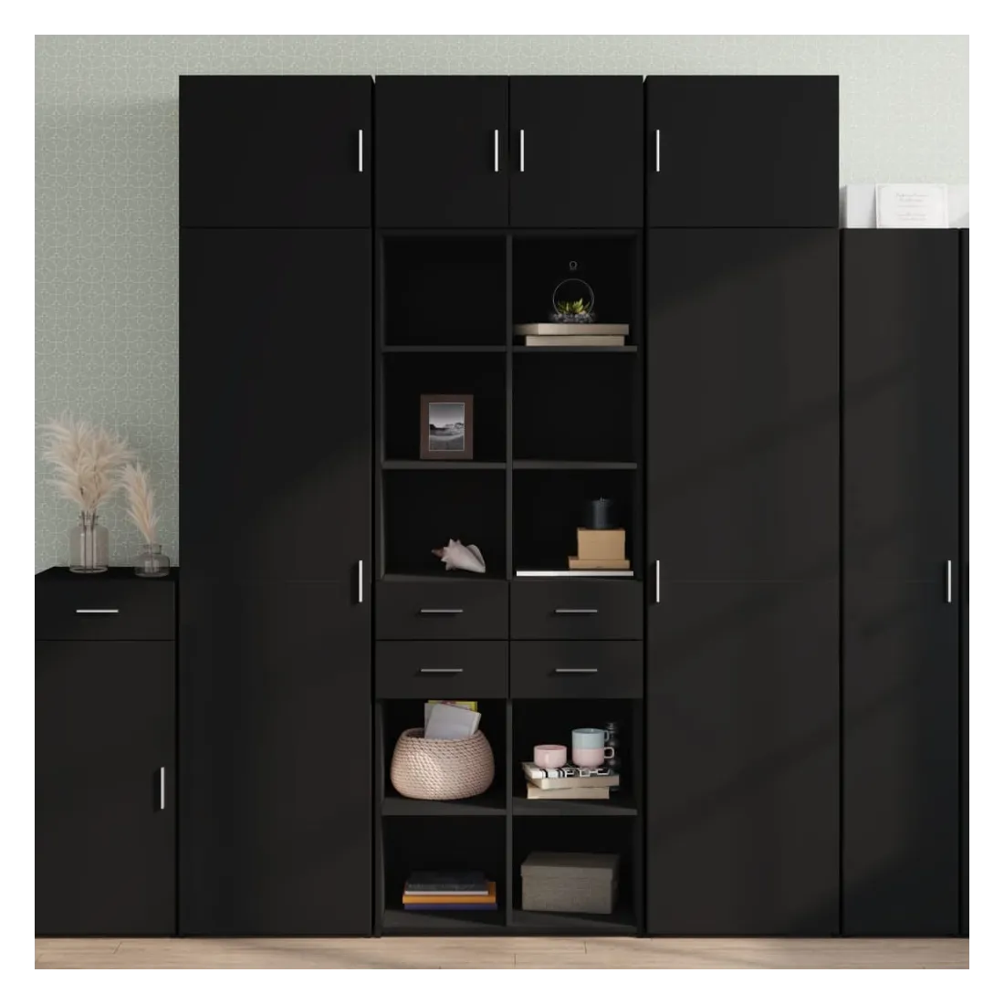 Vous cherchez un buffet haut de gamme stylé ? Ce buffet haut bien conçu ajoute un charme élégant à votre intérieur existant ! Matériau durable : le bois d'ingénierie est d'une qualité exceptionnelle avec une surface lisse et se caractérise également par sa solidité, sa stabilité et sa résistance à l'humidité.Grand espace de rangement : ce meuble haut offre un grand espace de rangement pour garder vos différents essentiels du quotidien bien organisés et à portée de main.Surface facile à nettoyer : l'armoire de rangement est facile à nettoyer avec un chiffon humide.Modèle intemporel : ce buffet chic présente des lignes épurées et simples, ainsi qu'un look minimaliste qui ajoute un style moderne intemporel à votre décor intérieur actuel.Attention :Pour éviter qu'il ne bascule, ce produit doit être utilisé avec le dispositif de fixation murale fourni. Bon à savoir :Les vis et les chevilles pour l'intérieur du mur ne sont pas incluses. Nous vous conseillons de trouver et d'utiliser des vis et des chevilles adaptées spécifiquement à vos murs. Si vous n'êtes pas sûr, vous pouvez consulter un professionnel. Veuillez lire et suivre chaque étape des instructions.