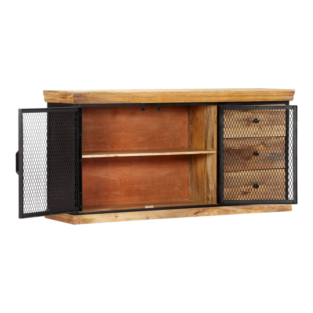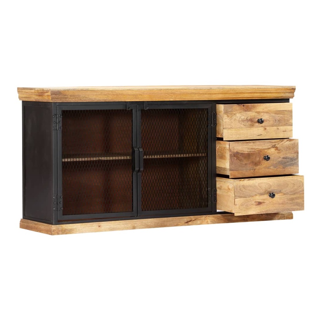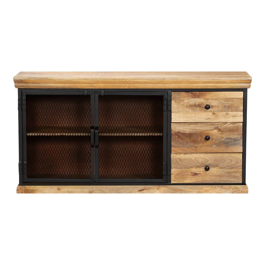 Ce buffet dégage un charme vintage qui ajoutera une pièce vraiment accrocheuse à votre décoration intérieure. Fabriqué en bois de manguier solide, ce meuble est extrêmement stable et durable. Le bois de manguier est un bois dur dense et robuste qui présente des belles stries et des contours bruns ou dorés à la surface. Chaque étape du processus est réalisée avec le plus grand soin, que ce soit le polissage, la peinture ou le laquage. De plus, notre armoire en bois comprend 3 tiroirs et 2 compartiments, offrant un grand espace pour ranger vos appareils multimédia, vos livres et divers autres objets. Le meuble TV est facile à assembler. Remarque importante : les grains de bois varient d'une pièce à l'autre, rendant chaque pièce unique. La livraison est aléatoire, ce qui garantit l'exclus
