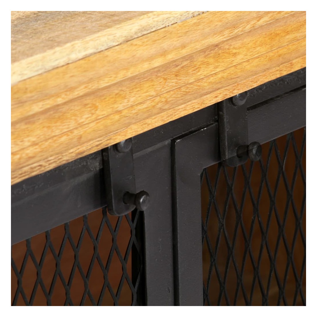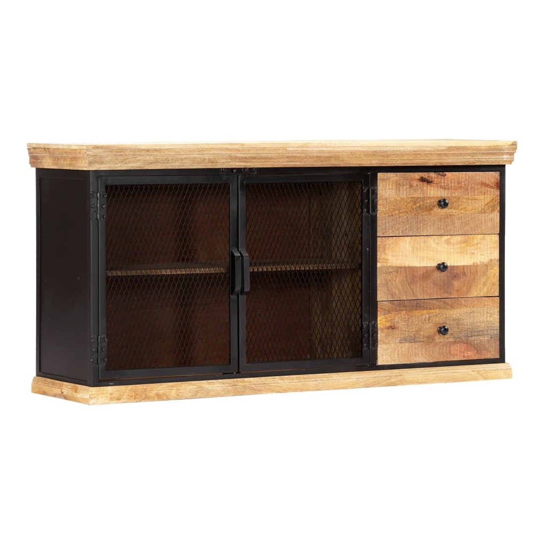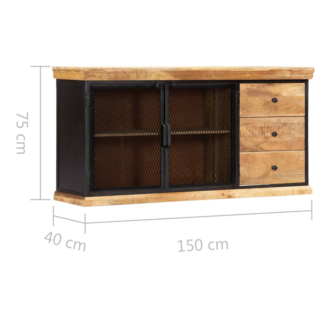 Ce buffet dégage un charme vintage qui ajoutera une pièce vraiment accrocheuse à votre décoration intérieure. Fabriqué en bois de manguier solide, ce meuble est extrêmement stable et durable. Le bois de manguier est un bois dur dense et robuste qui présente des belles stries et des contours bruns ou dorés à la surface. Chaque étape du processus est réalisée avec le plus grand soin, que ce soit le polissage, la peinture ou le laquage. De plus, notre armoire en bois comprend 3 tiroirs et 2 compartiments, offrant un grand espace pour ranger vos appareils multimédia, vos livres et divers autres objets. Le meuble TV est facile à assembler. Remarque importante : les grains de bois varient d'une pièce à l'autre, rendant chaque pièce unique. La livraison est aléatoire, ce qui garantit l'exclus