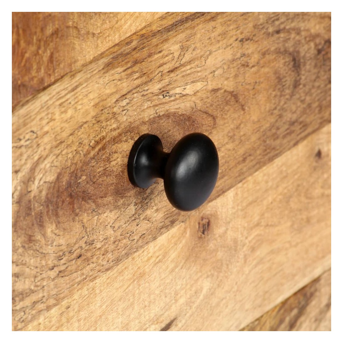 Ce buffet dégage un charme vintage qui ajoutera une pièce vraiment accrocheuse à votre décoration intérieure. Fabriqué en bois de manguier solide, ce meuble est extrêmement stable et durable. Le bois de manguier est un bois dur dense et robuste qui présente des belles stries et des contours bruns ou dorés à la surface. Chaque étape du processus est réalisée avec le plus grand soin, que ce soit le polissage, la peinture ou le laquage. De plus, notre armoire en bois comprend 3 tiroirs et 2 compartiments, offrant un grand espace pour ranger vos appareils multimédia, vos livres et divers autres objets. Le meuble TV est facile à assembler. Remarque importante : les grains de bois varient d'une pièce à l'autre, rendant chaque pièce unique. La livraison est aléatoire, ce qui garantit l'exclusivité et l'individualité de votre produit.