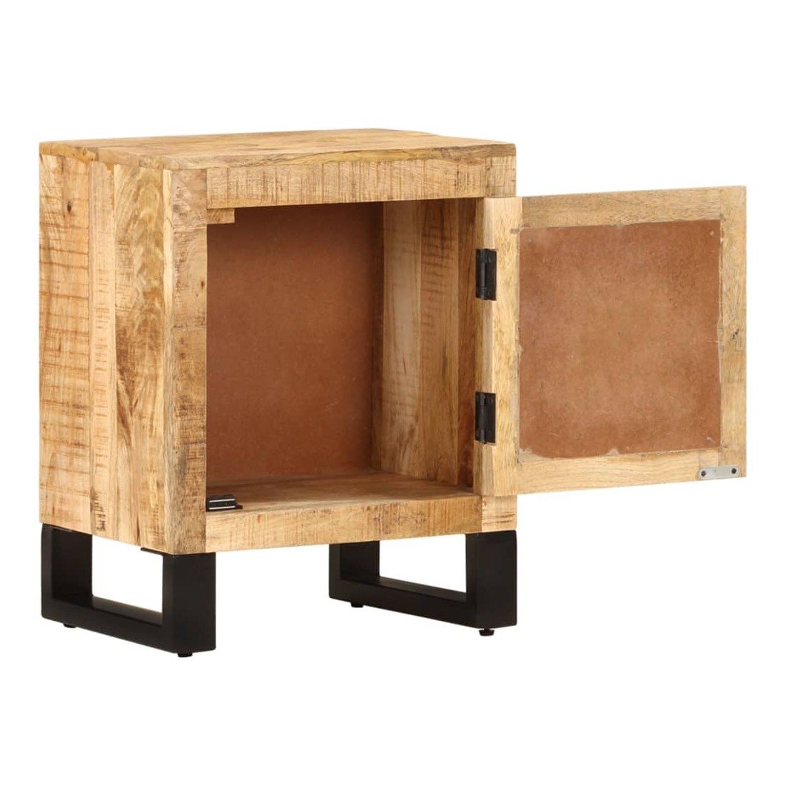 La table de chevet, avec espace de rangement, ajoutera une touche intemporelle à votre décoration intérieure. La table de chevet est fabriquée en bois de manguier massif brut et est très stable et durable. Le bois de manguier est un bois dur dense et robuste qui présente des belles stries et des contours bruns ou dorés à la surface. Son plateau robuste est idéal pour placer des objets décoratifs tels que des vases ou des plantes en pot. Le meuble offre un grand espace de rangement pour garder vos divers articles bien rangés. Et les pieds en acier galvanisé ajoutent à la robustesse et à la durabilité. Le produit est facile à assembler. Remarque importante : les couleurs et les grains de bois peuvent varier d'une pièce à l'autre, ce qui rend chaque pièce unique et légèrement différente l