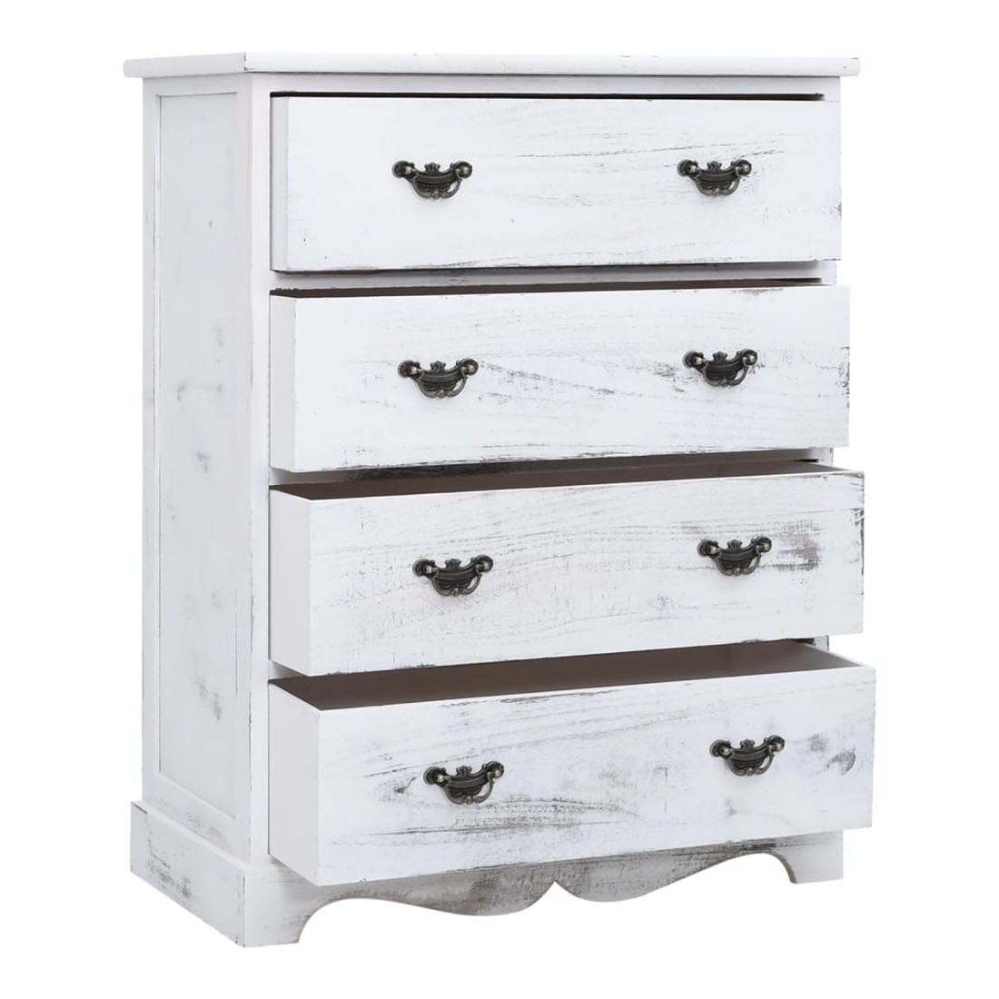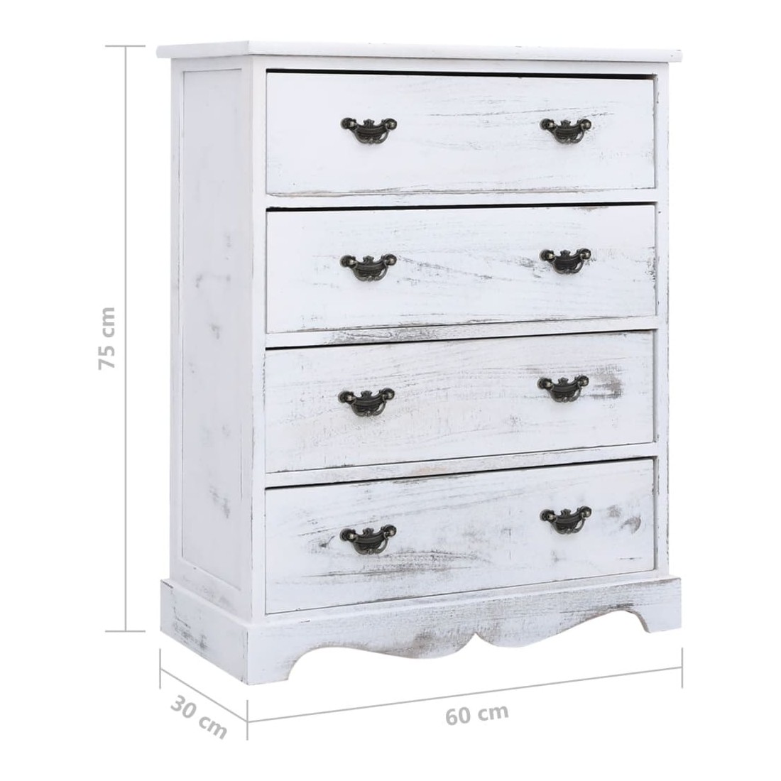 Avec son look antique et son utilité pratique, ce meuble à tiroirs en bois deviendra le complément idéal dans votre maison existante. Faite de paulownia de qualité, de bois de peuplier et de panneaux de MDF, cette armoire est extrêmement robuste et durable. Elle se compose de 4 tiroirs pour fournir un grand espace de rangement pour vos divers objets, tels que des clés, des bloc-notes, des livres, des magazines ou d’autres bibelots et d'objets de première nécessité. Améliorez votre décoration intérieure avec notre armoire à tiroirs moderne !