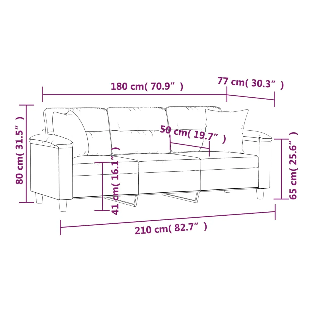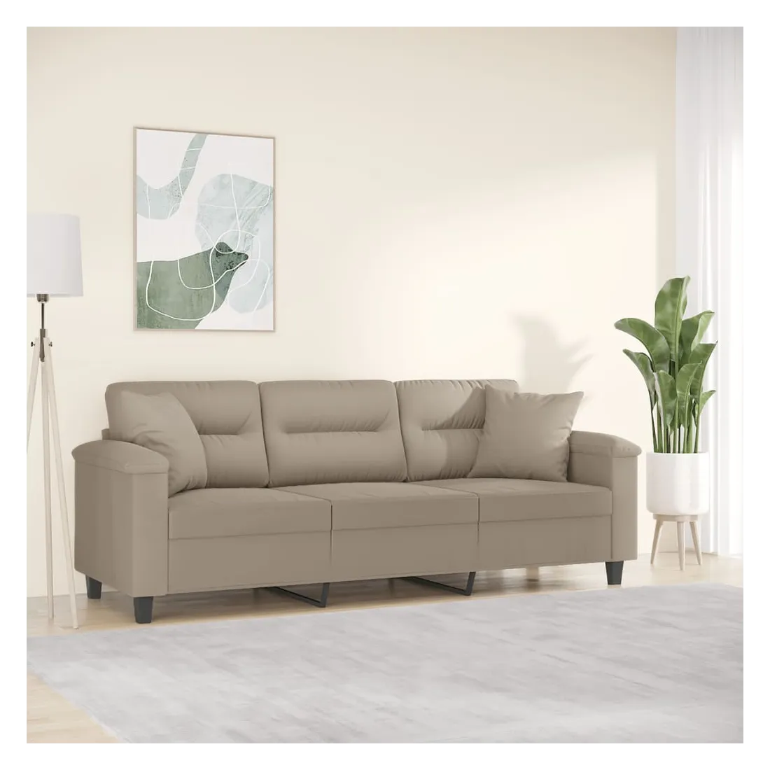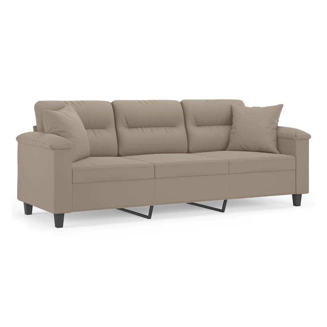 Ce canapé 3 places, qui se démarque par son design moderne et ses coussins décoratifs, sera un excellent endroit pour discuter, regarder la télévision ou simplement vous détendre. Microfibre résistant : le microfibre est un tissu synthétique composé de fibres ultra-fines, particulièrement résistantes aux taches. Le tissu en microfibre est un excellent choix pour le rembourrage des meubles en raison de sa durabilité et de son nettoyage facile.Cadre robuste et stable : le cadre en métal du canapé de salon assure robustesse et stabilité.Oreillers décoratifs avec inserts : ces oreillers décoratifs sont livrés avec des inserts en coton PP, vous n'avez donc pas besoin d'acheter des rembourrages.Expérience d'assise confortable : le canapé est très confortable avec les sièges, les accoudoirs et les oreillers de dossier bien rembourrés. En outre, les oreillers décoratifs peuvent ajouter un confort supplémentaire lorsque vous êtes assis ou allongé.