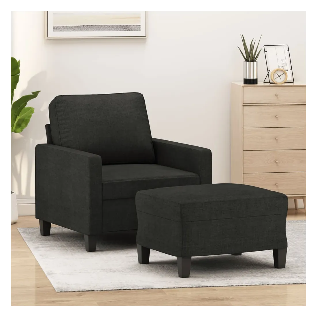 Ce fauteuil avec repose-pied est un excellent endroit pour discuter, lire, regarder la télévision ou simplement vous détendre. Il est destiné à être un point central de votre maison. Tissu durable : le tissu présente un aspect simple et épuré tout en restant respirant et durable.Structure robuste et stable : la structure en contreplaqué et en métal du canapé avec repose-pieds assure robustesse et stabilité.Expérience d'assise confortable : le fauteuil est très confortable avec le siège, les accoudoirs et le coussin de dossier bien rembourrés.Repose-pied polyvalent : ce repose-pied convient pour reposer vos pieds lorsque vous êtes allongé dans un canapé ou un fauteuil inclinable, ou pour vous offrir un siège supplémentaire dans votre pièce. De plus, le design simple et la taille compacte le rendent idéal pour presque tous vos espaces de vie.Design accrocheur : doté d'un design simple mais moderne, ce canapé avec repose-pied est destiné à attirer l'attention dans votre pièce.