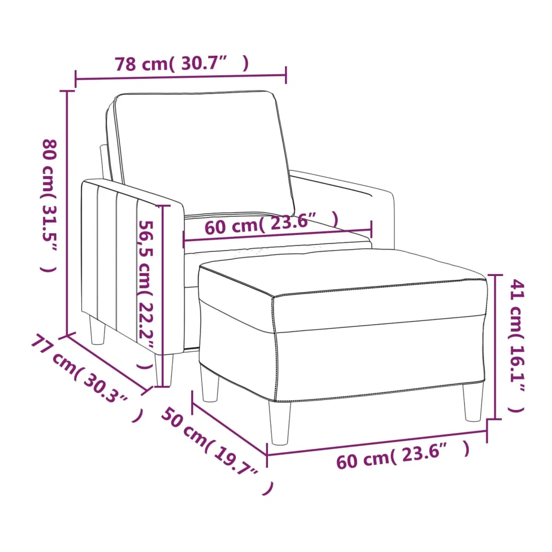 Ce fauteuil avec repose-pied est un excellent endroit pour discuter, lire, regarder la télévision ou simplement vous détendre. Il est destiné à être un point central de votre maison. Velours durable : le velours est un tissu doux et confortable, agréable au toucher.Structure robuste et stable : la structure en contreplaqué et en métal du canapé avec repose-pieds assure robustesse et stabilité.Expérience d'assise confortable : le fauteuil est très confortable avec le siège, les accoudoirs et le coussin de dossier bien rembourrés.Repose-pied polyvalent : ce repose-pied convient pour reposer vos pieds lorsque vous êtes allongé dans un canapé ou un fauteuil inclinable, ou pour vous offrir un siège supplémentaire dans votre pièce. De plus, le design simple et la taille compacte le rendent idéal pour presque tous vos espaces de vie.Design accrocheur : doté d'un design simple mais moderne, ce canapé avec repose-pied est destiné à attirer l'attention dans votre pièce.