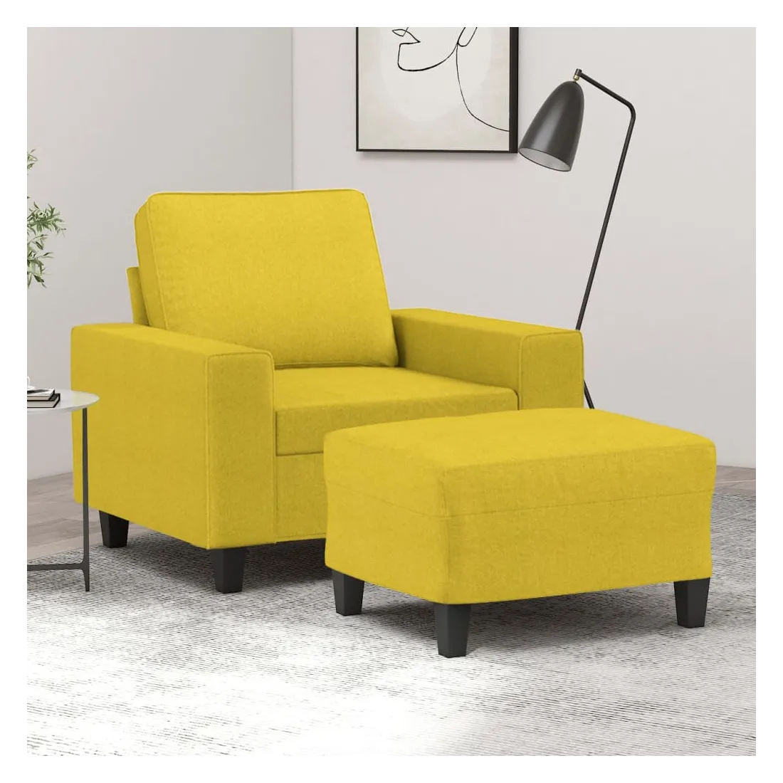Ce fauteuil avec repose-pied est un excellent endroit pour discuter, lire, regarder la télévision ou simplement vous détendre. Il est destiné à être un point central de votre maison. Tissu durable : le tissu présente un aspect simple et épuré tout en restant respirant et durable.Structure robuste et stable : la structure en contreplaqué et en métal du canapé avec repose-pieds assure robustesse et stabilité.Expérience d'assise confortable : le fauteuil est très confortable avec le siège, les accoudoirs et le coussin de dossier bien rembourrés.Repose-pied polyvalent : ce repose-pied convient pour reposer vos pieds lorsque vous êtes allongé dans un canapé ou un fauteuil inclinable, ou pour vous offrir un siège supplémentaire dans votre pièce. De plus, le design simple et la taille compacte le rendent idéal pour presque tous vos espaces de vie.Design accrocheur : doté d'un design simple mais moderne, ce canapé avec repose-pied est destiné à attirer l'attention dans votre pièce.
